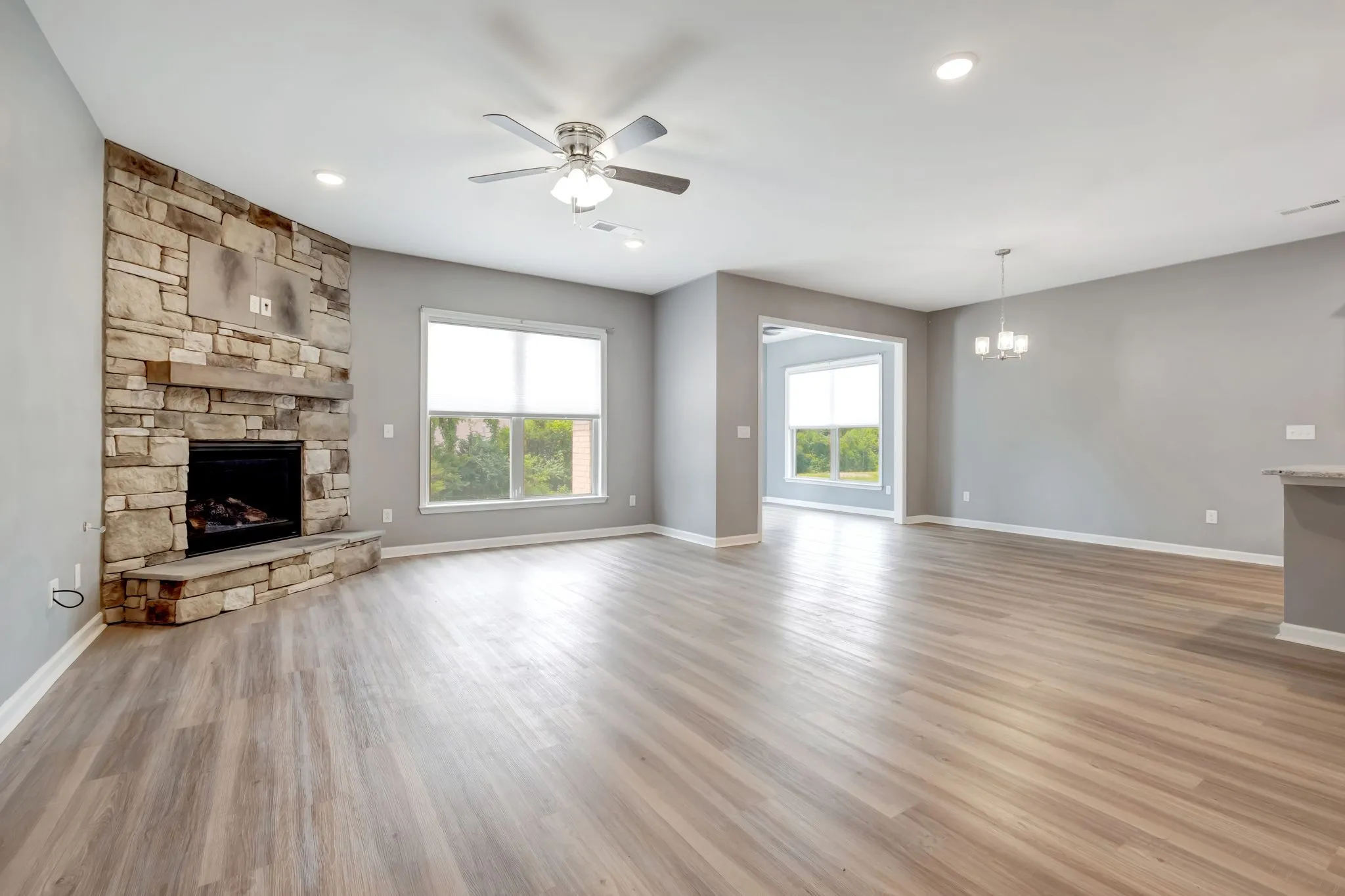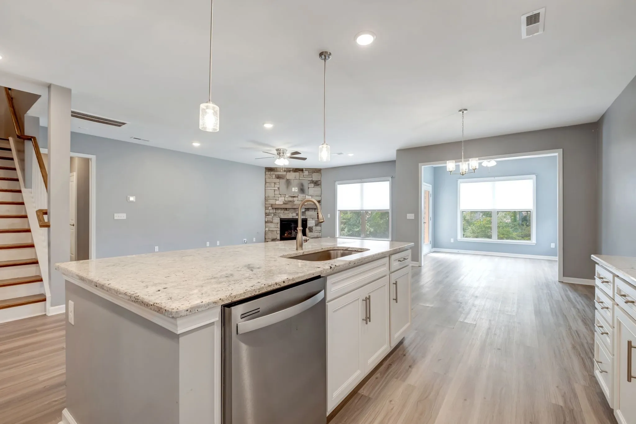 Offering luxury living and neighborhood charm, this home features spacious great room with fireplace, kitchen with huge island, plenty of cabinets and countertop workspace, formal dining room, bedroom with bath on the first floor and sunroom. Upstairs are 4 bedrooms and 3 baths plus loft space. The primary is located on the second floor and separate bath and walk-in closet. Oversized garages allows for extra storage space. Community pool, playground, and clubhouse.