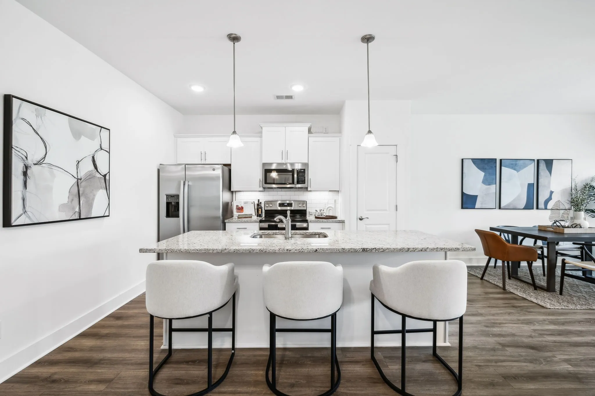 Welcome to your new home in the highly sought-after Simmons Ridge Community in Franklin. This move-in ready end-unit townhome features 3 bedrooms and 2.5 baths, offering an open-concept layout that seamlessly integrates the kitchen, dining, and living areas. The modern kitchen boasts ample prep and seating space with a large island, granite countertops, and stainless steel appliances. Upstairs, the expansive primary bedroom offers an en-suite bathroom with double vanities, providing a private retreat. Enjoy the nice covered porch, perfect for relaxation and entertainment. Additional features include an attached one-car garage, driveway parking, and ample guest parking. Simmons Ridge offers fantastic community amenities, including a pool with a clubhouse, walking trails, and a playground. Don’t miss the opportunity to make this beautiful townhome your own!