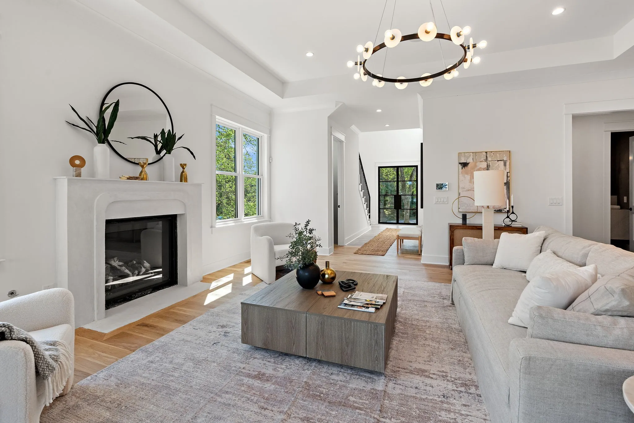 Experience contemporary living at its finest in this stunning home by Cobalt Ventures. Nestled in the heart of Green Hills, enjoy walkable access to upscale dining and shopping. Each room has been elegantly crafted by Mekenna Brooke Designs. This home features two main-level bedrooms, including an Owner’s Suite and en-suite, along with in-law quarters with a separate entrance, this home offers both luxury and privacy. Upstairs, discover three additional bedrooms and a bonus room, perfect for guests. Entertain effortlessly in the open-concept layout and screened porch with fireplace. The gourmet kitchen boasts Wolf/Sub Zero appliances. Additional highlights include hardwood flooring and craftsman trim throughout, The lower level also includes a spacious media room and wet bar, and a 3 car garage. An elevator shaft is framed in and ready to be install if the buyer wishes to do so.