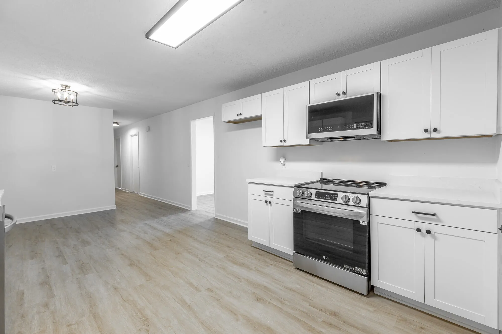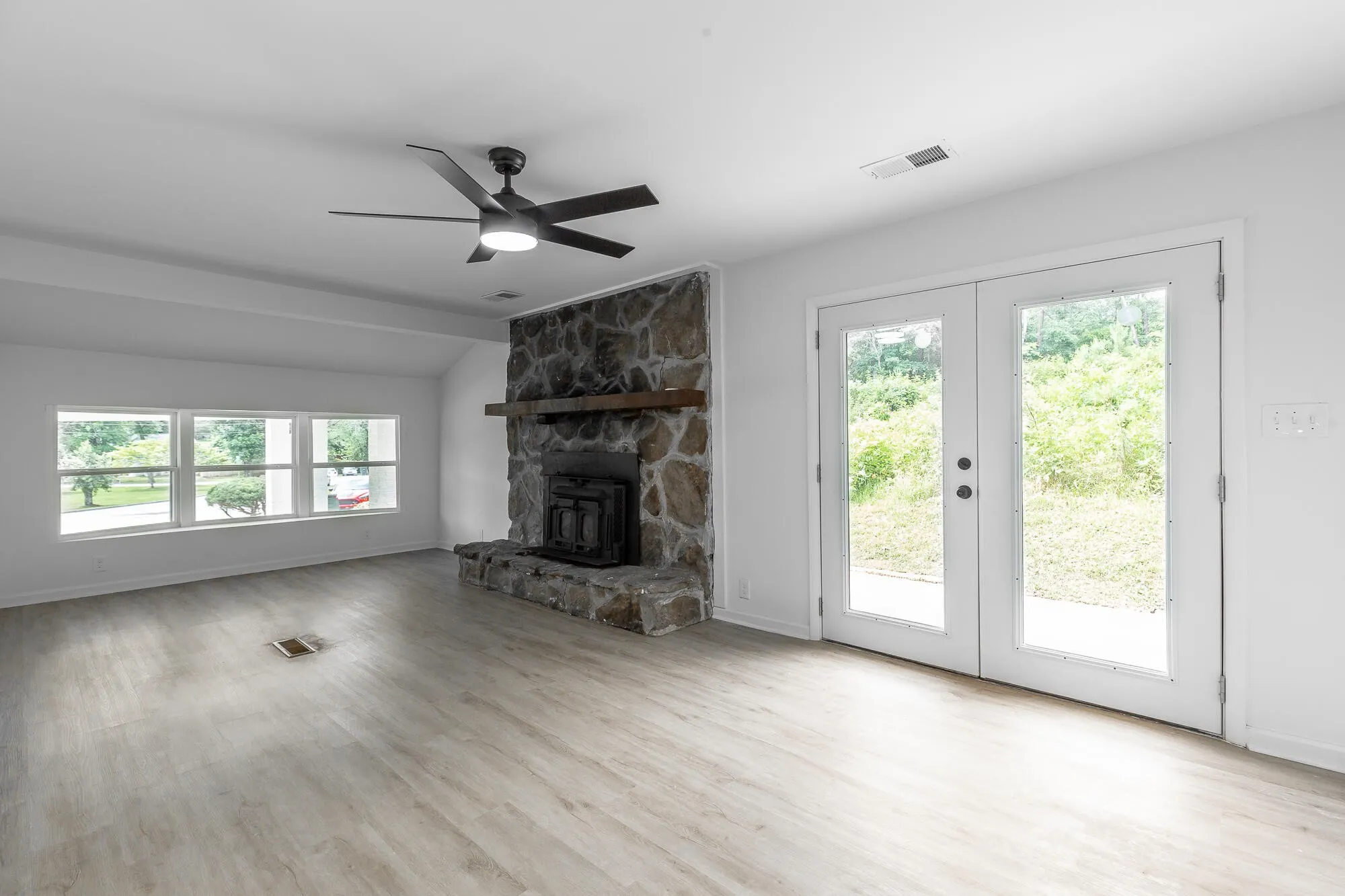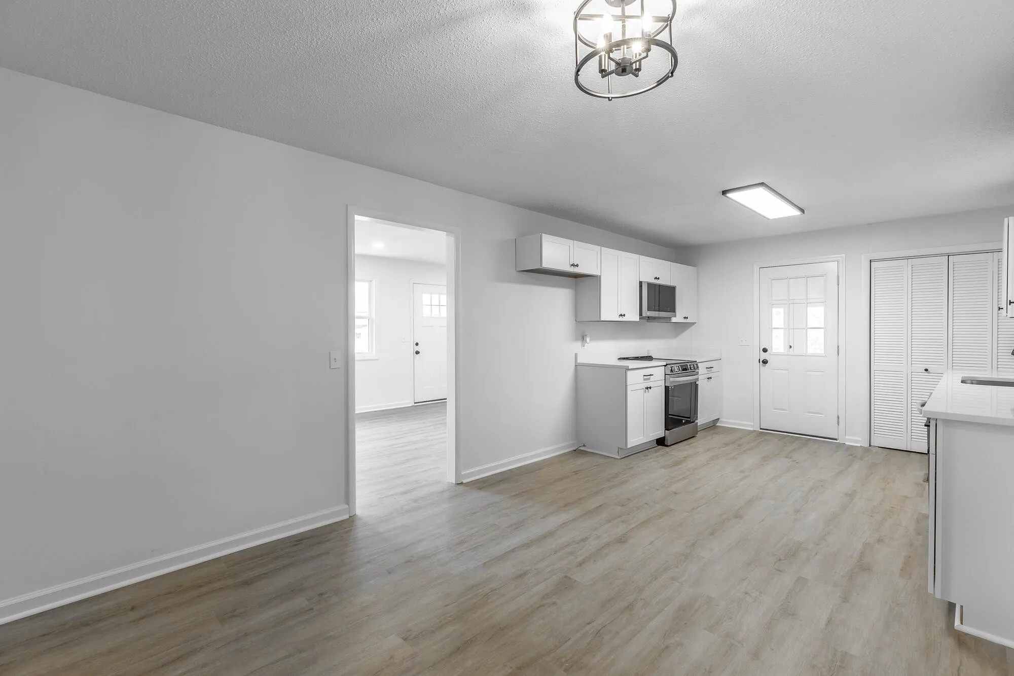 This stunning, fully renovated home boasts 3 bedrooms and 1.5 baths, with a versatile flex room that can serve as a potential 4th bedroom, office, or bonus space. The attractive curb appeal features a charming white painted brick exterior and a large front carport. The expansive, level yard includes a landscaped seating area, perfect for relaxation, while the paved side patio is ideal for grilling and outdoor entertaining. Inside, the bright and airy front living room impresses with a triple window and recessed can lighting. The open-concept kitchen and dining area showcase quartz countertops, stainless steel appliances, and luxury LVP flooring, creating a seamless flow for entertaining and everyday living. A cozy den with a stone fireplace offers a warm and inviting space to unwind. This home has been upgraded with new HVAC, windows, plumbing, and electrical systems. Both the interior and exterior have been freshly painted, and the bathrooms are fully renovated with stylish new fixtures. Every detail has been thoughtfully updated, making this home completely turnkey and ready for you to move in and enjoy. Don’t miss the chance to make this gorgeous property your own!