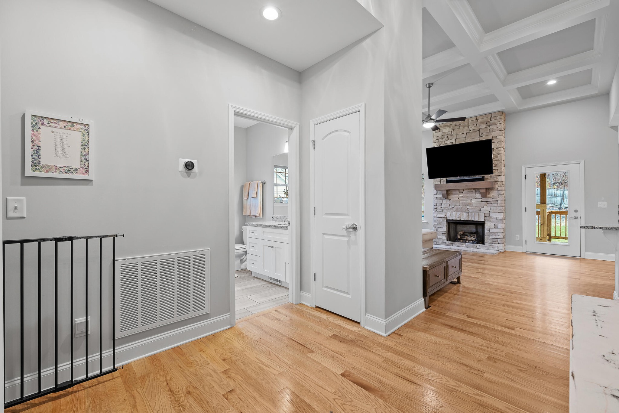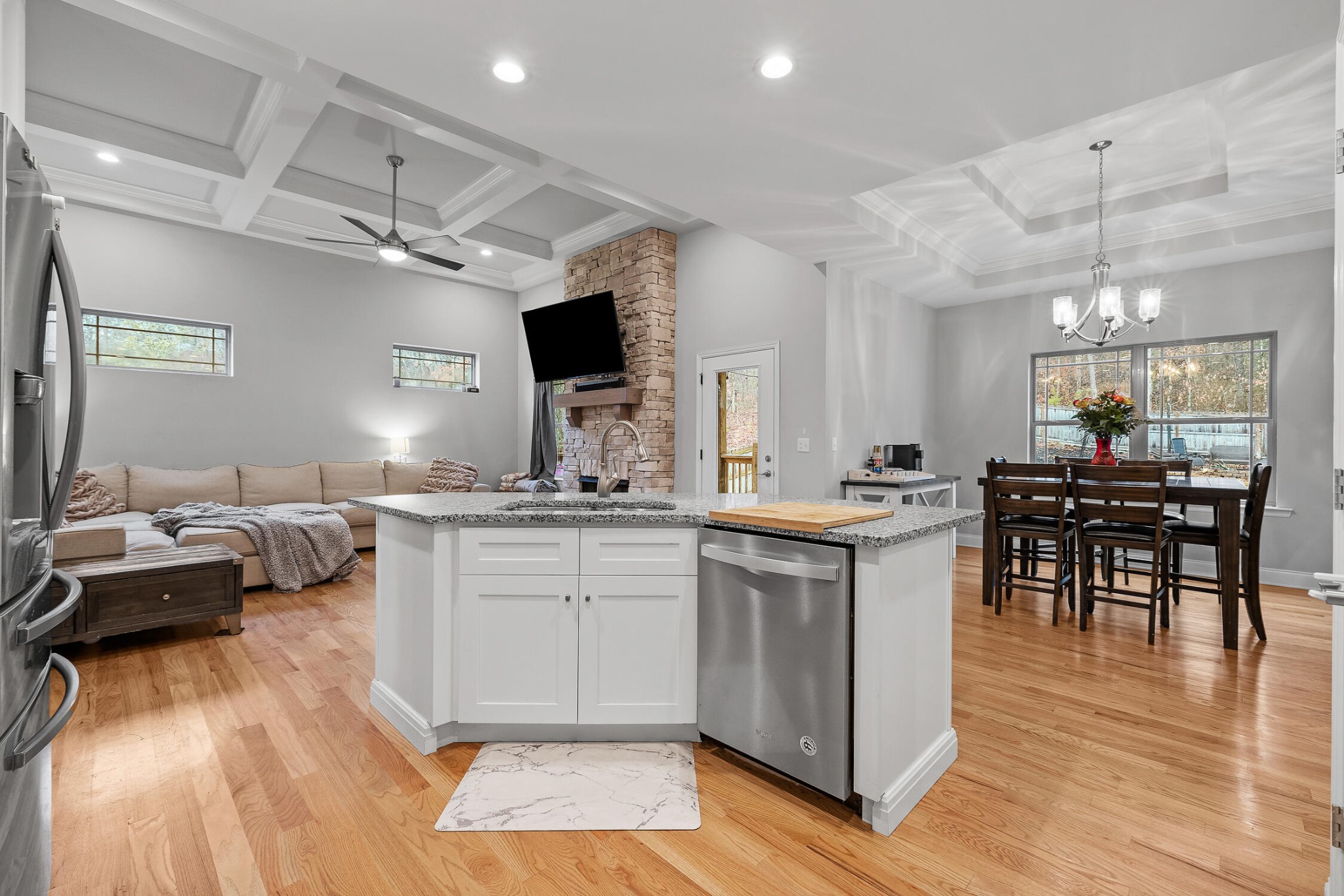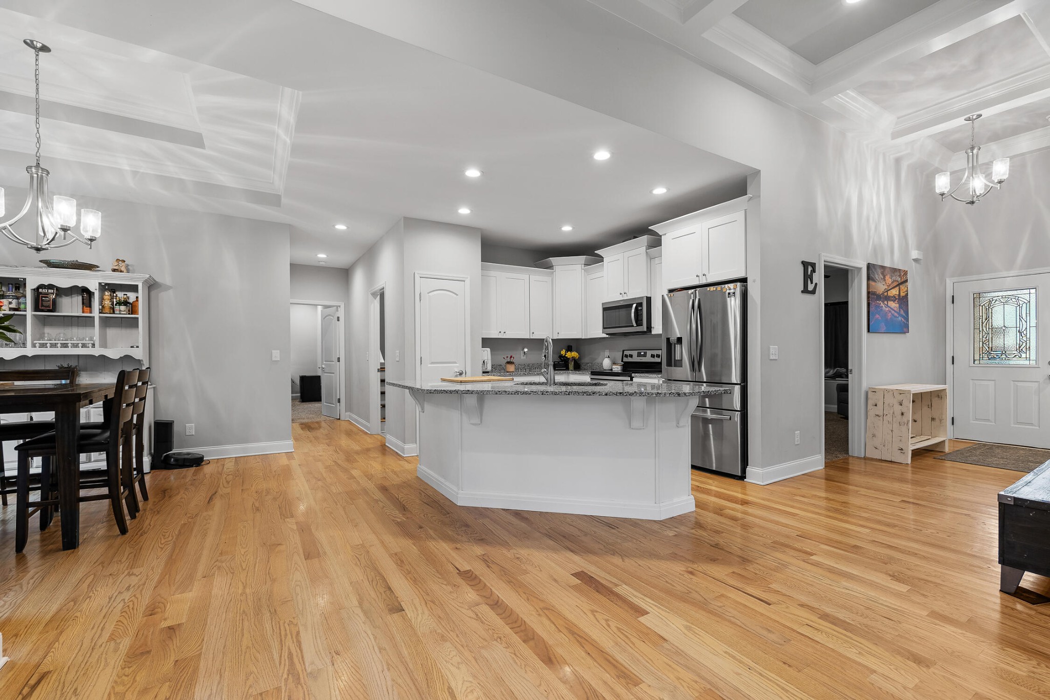 Conveniently located in the scenic Eagle’s Landing neighborhood, this stunning home boasts five spacious bedrooms and three elegantly appointed bathrooms, and offers ample space for both relaxation and entertainment. Upon entering, you’re greeted by a breathtaking open-concept living room and kitchen, adorned with exquisite coffered ceilings and modern finishes that exude sophistication and charm. The kitchen features granite countertops, sleek cabinetry, and top-of-the-line appliances, making it a chef’s dream. The expansive fenced-in backyard provides a private oasis for outdoor gatherings or serene moments of tranquility. Upstairs, a massive bonus room offers endless possibilities for recreation or relaxation, ensuring there’s always space for leisure activities or family fun. From its impeccable design to its spacious layout, this home in Eagle’s Landing epitomizes refined living and offers a perfect blend of elegance and comfort for discerning homeowners.