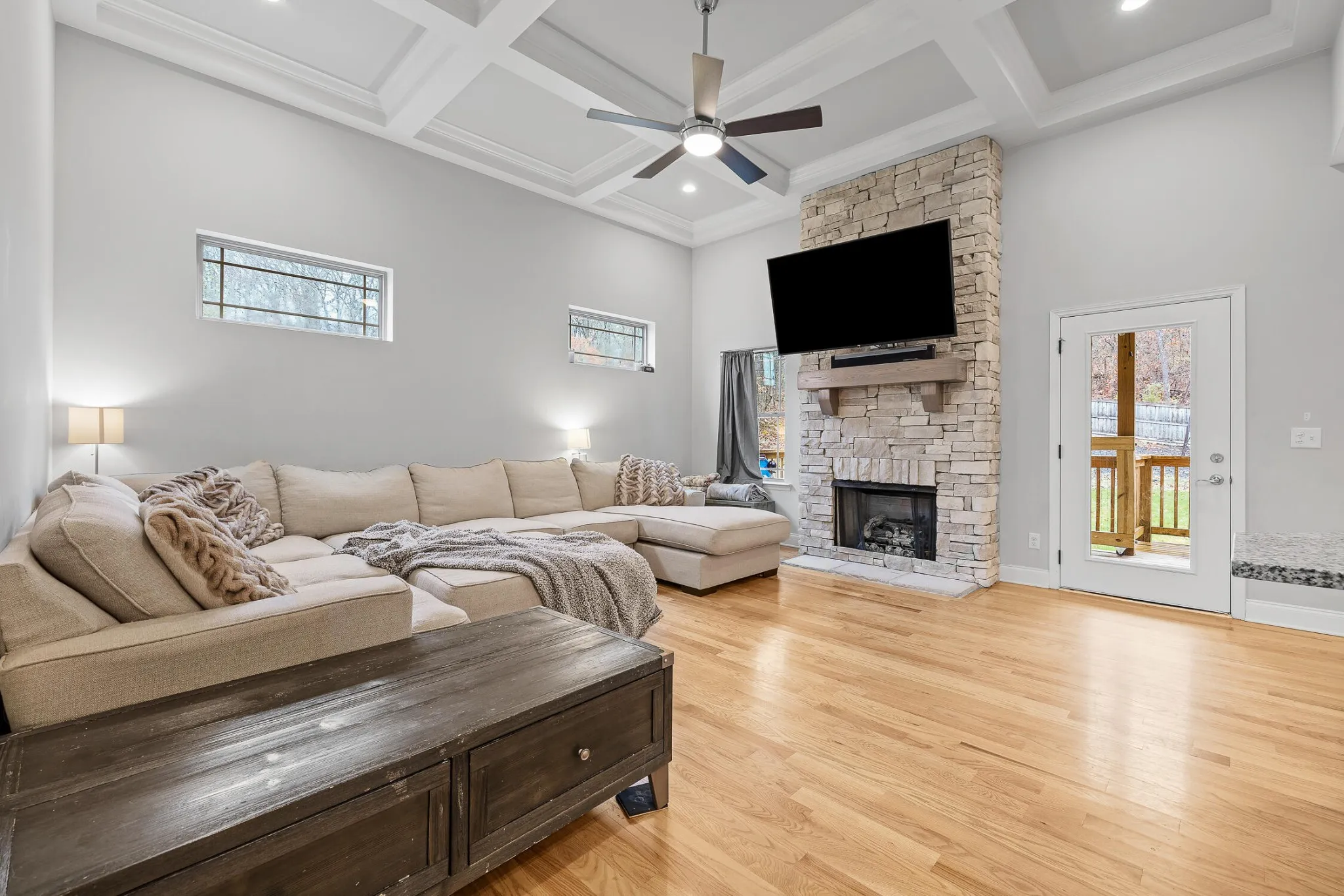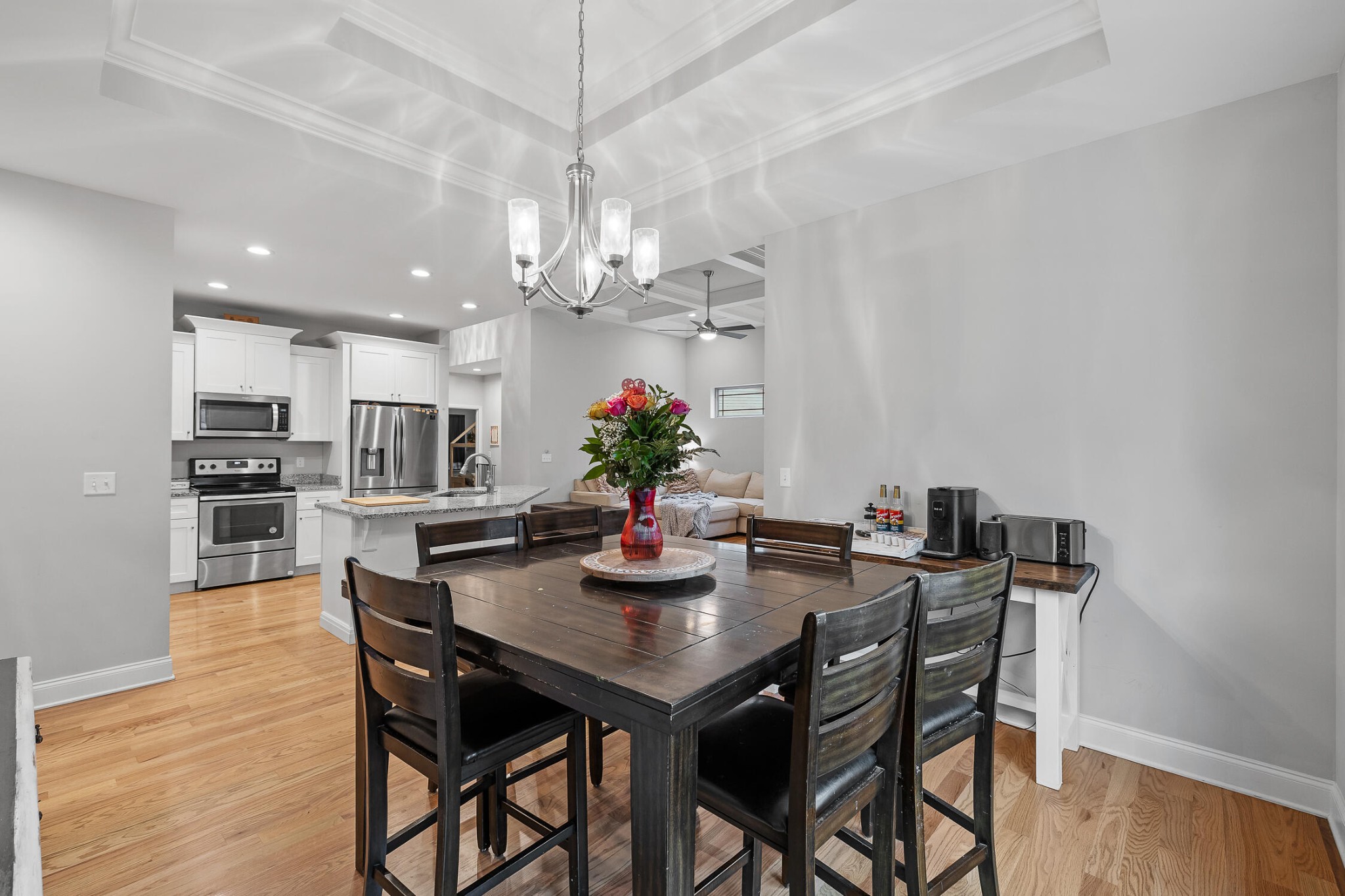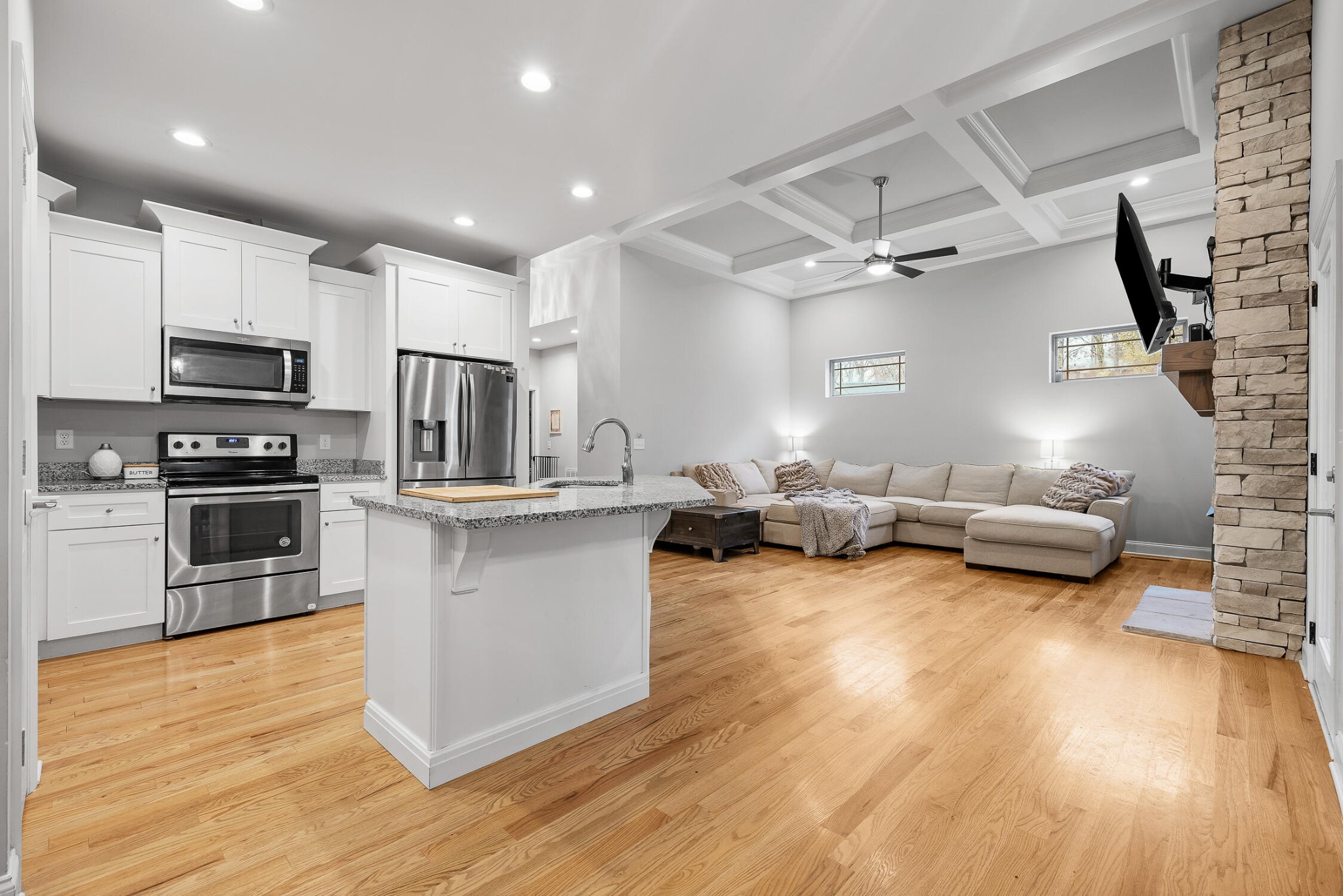Conveniently located in the scenic Eagle’s Landing neighborhood, this stunning home boasts five spacious bedrooms and three elegantly appointed bathrooms, and offers ample space for both relaxation and entertainment. Upon entering, you’re greeted by a breathtaking open-concept living room and kitchen, adorned with exquisite coffered ceilings and modern finishes that exude sophistication and charm. The kitchen features granite countertops, sleek cabinetry, and top-of-the-line appliances, making it a chef’s dream. The expansive fenced-in backyard provides a private oasis for outdoor gatherings or serene moments of tranquility. Upstairs, a massive bonus room offers endless possibilities for recreation or relaxation, ensuring there’s always space for leisure activities or family fun. From its impeccable design to its spacious layout, this home in Eagle’s Landing epitomizes refined living and offers a perfect blend of elegance and comfort for discerning homeowners.
