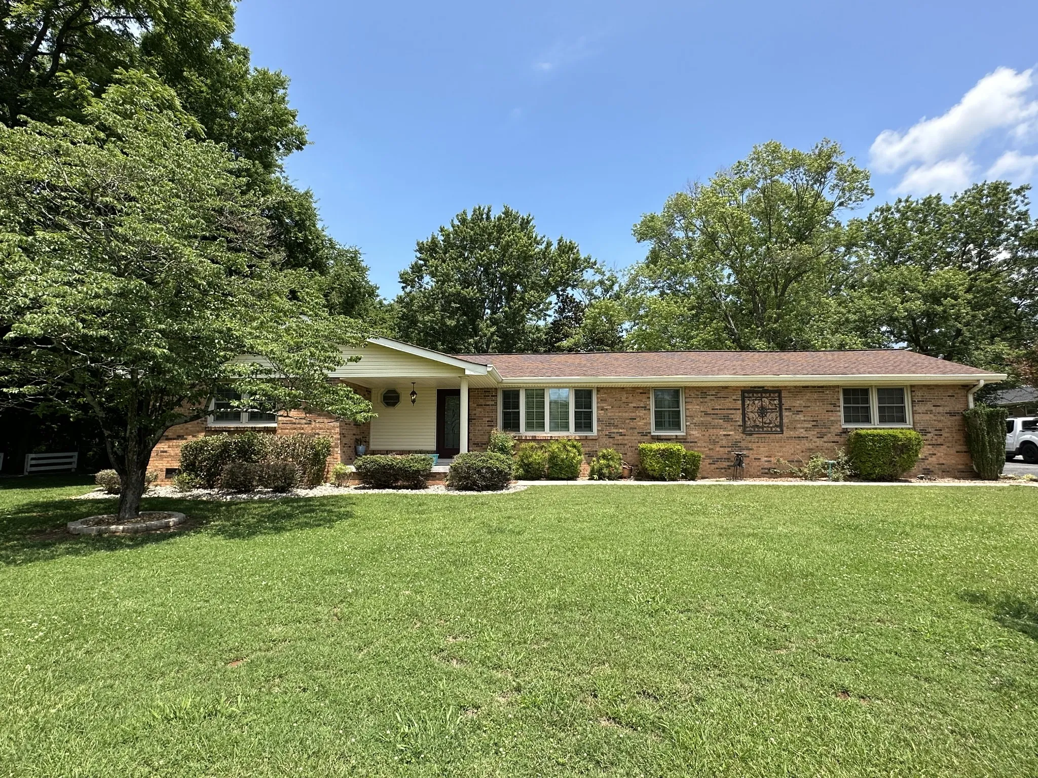 Nestled at the end of a tranquil street, this 1 level all brick home offers timeless charm. 4 bedroom or office w/ closet. The remodeled kitchen beckons modern finishes including sleek countertops, remodeled cabinets, and upgraded appliances. Adjacent the kitchen, living room or den with wood burning fireplace, dining area with hardwood floors and adorned with plantation blinds. This home also offers a massive florida room drenched in sunlight, offering a perfect space for relaxation, hobbies, or just entertainment. Venture outside to the huge covered patio and large fenced in back yard. Outdoor storage building remains. Through out this home you will find plantation blinds grace most windows and hardwood floors through out. Make appt today to come check out this home. Easy to show.