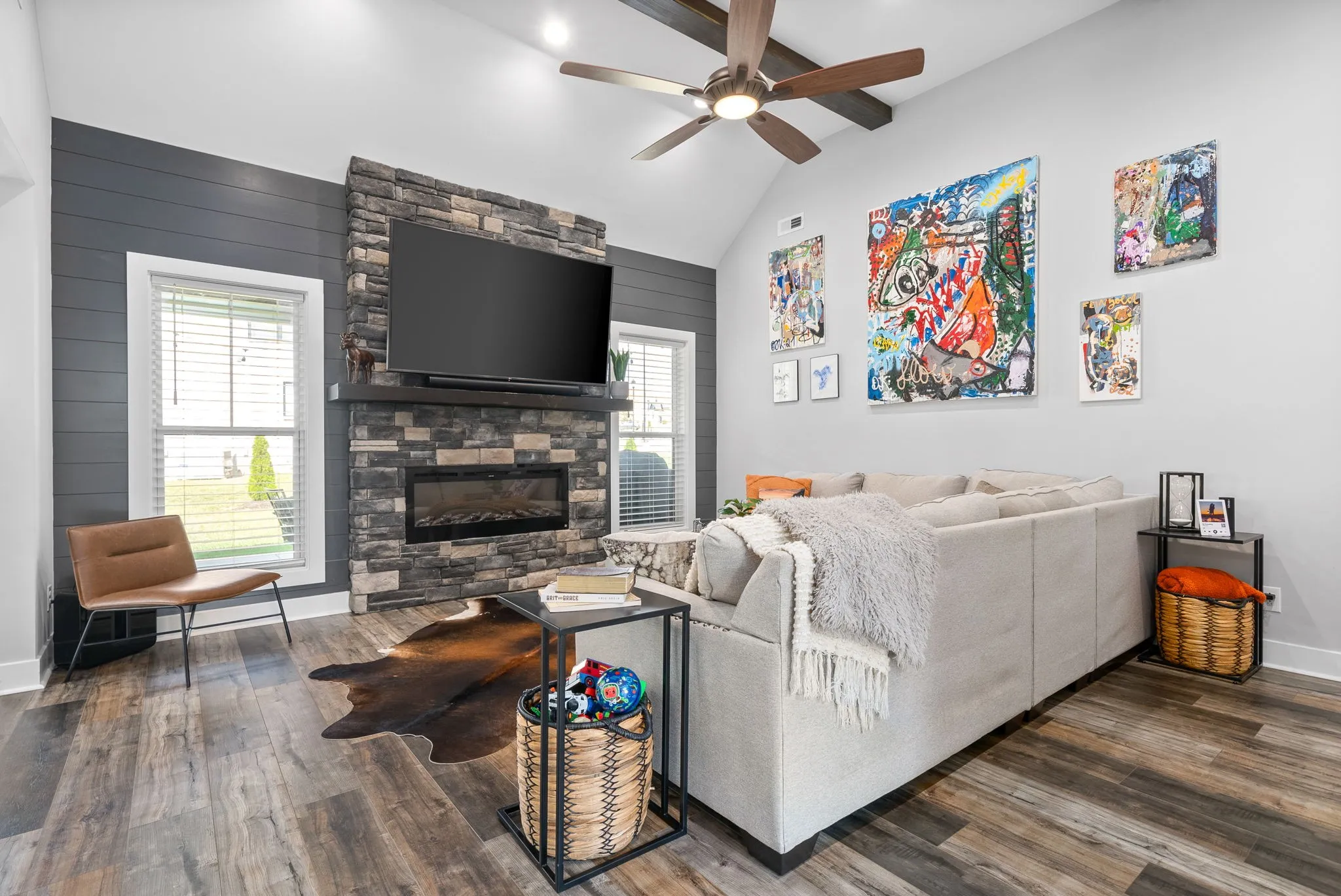 This is the rare house that doesn’t show up very often! This beauty is fully wrapped in board & batten, has a side load garage on a corner lot, interior and exterior fire places, trimmed with custom stamped concrete landscaping (even your father in his white new balances will love!) 4 Bedroom, 4 Bathroom, Bonus with a wet bar, customized open concept dream home in a sidewalk lined suburbia wonderland! All within minutes of 1-24, local shopping, restaurants, golfing and hiking trails. Check out the Video Tour! https://listings.cultivatedpropertytours.com/videos/94bc4c11-f176-40c1-9fc8-14b694599757
