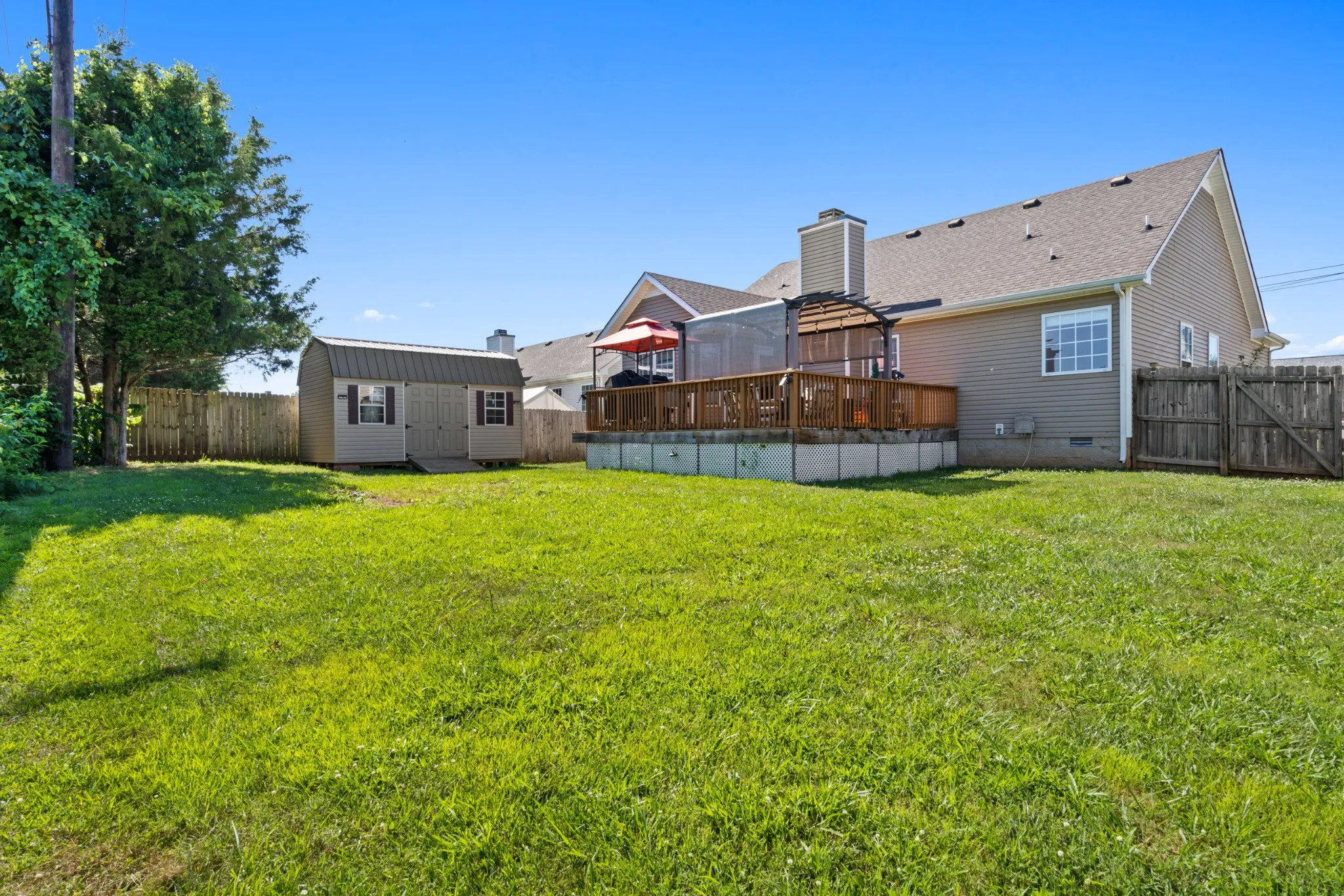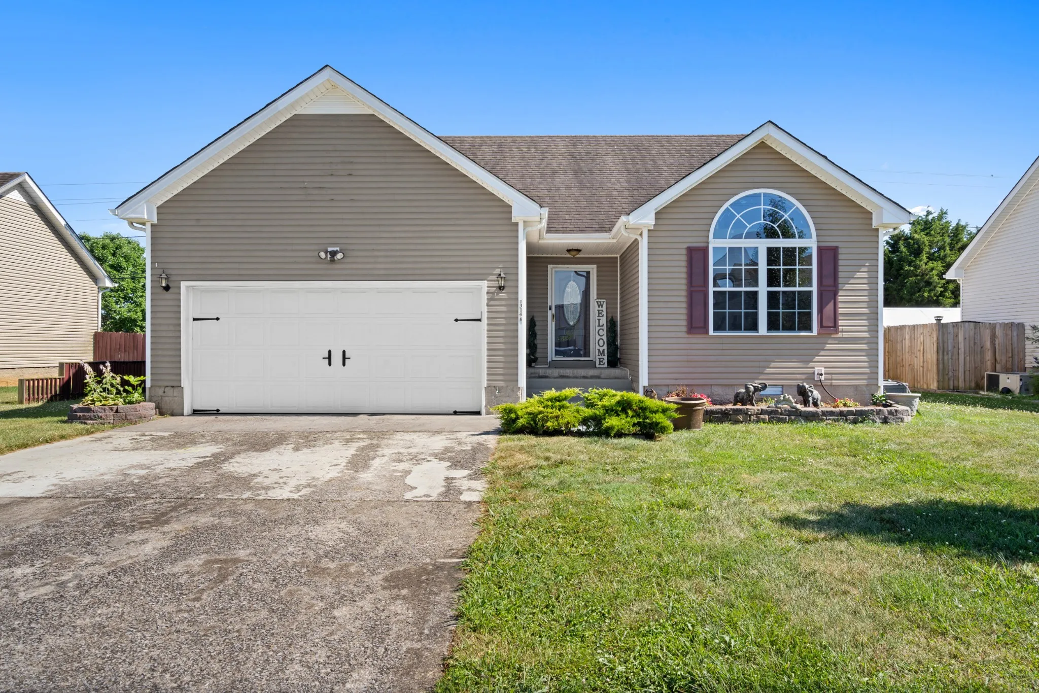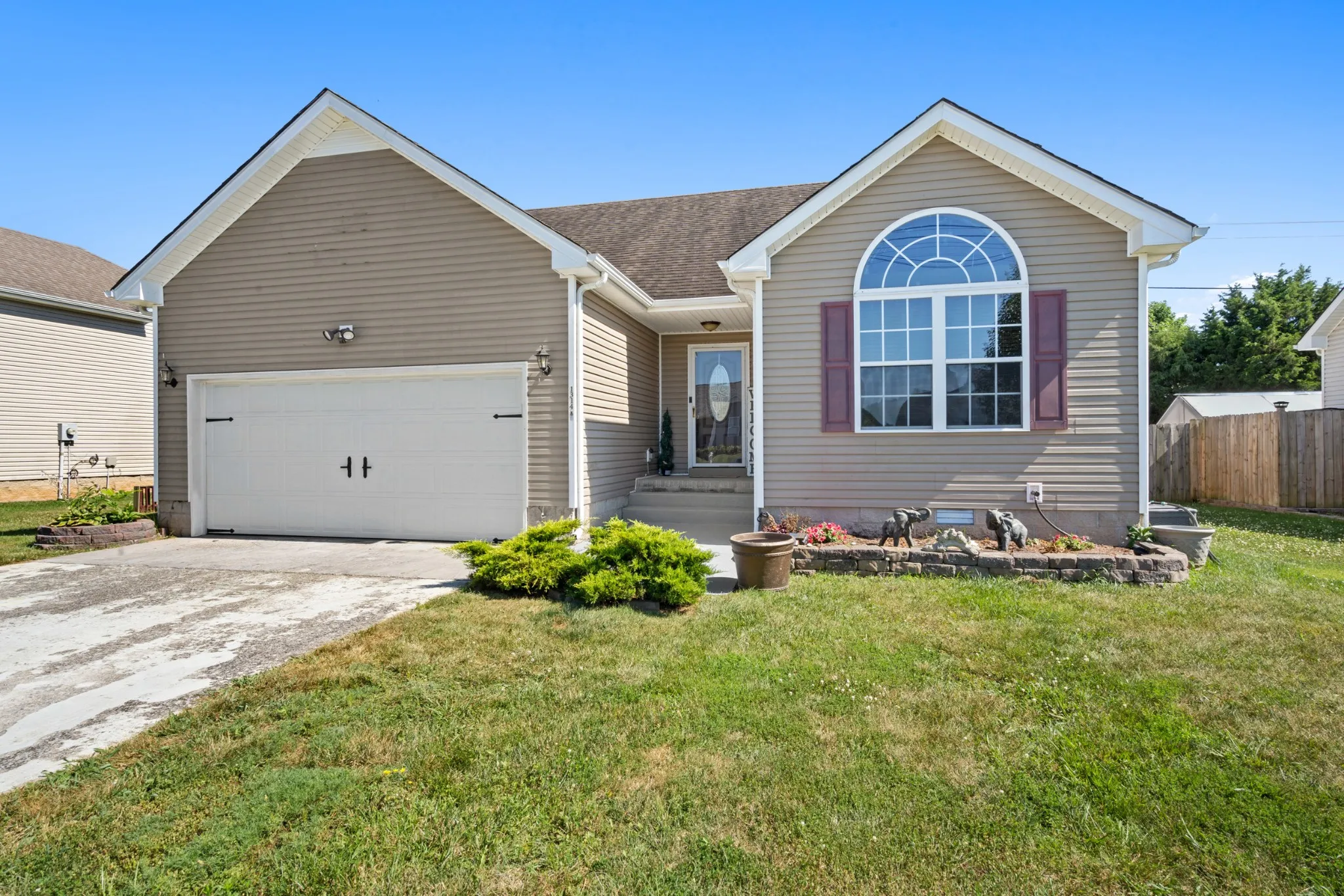 Prestine ranch home with beautiful open floor plan, vaulted ceilings and plenty of natural light. Country kitchen features newer stainless steel appliance. Large primary bedroom with bathroom suite & WIC. Close to Ft. Campbell and all main shopping and attractions. NEW HVAC in 2024, NEW carpet in both guest rooms, 12X16 shed, gazebo and pergola stay in your fenced in back yard! Ring camera stays!