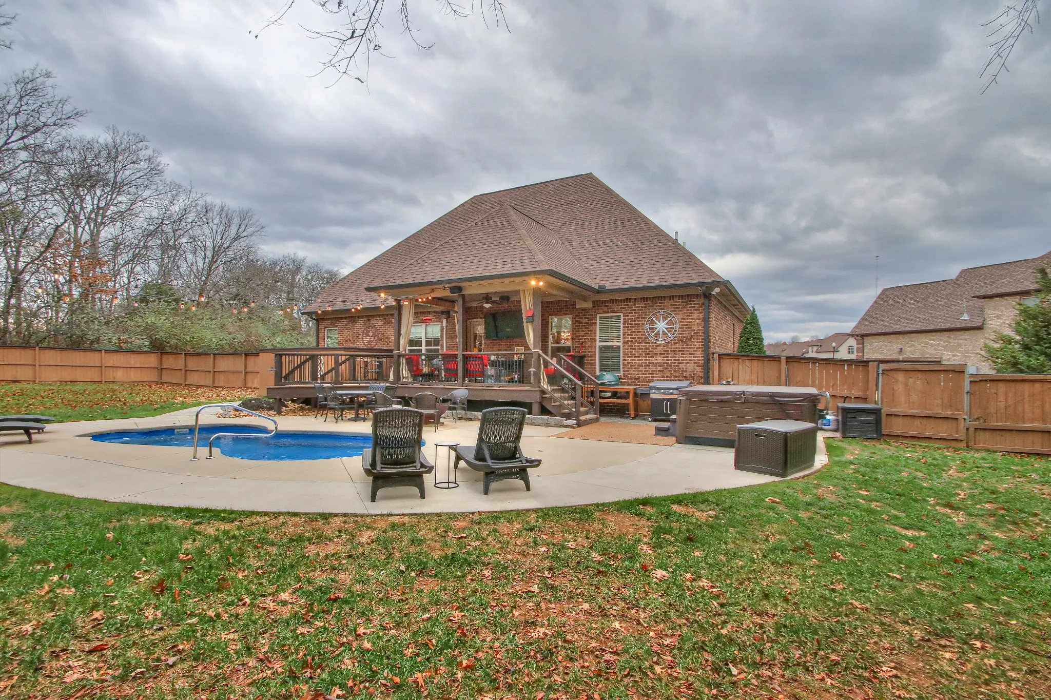 This gorgeous home is nestled in a cul de sac & gives you a beautiful backyard oasis. The backyard has an in ground saltwater pool, large patio and deck for entertaining. Custom millwork throughout the house. Your primary room is on main floor, and has large primary bath and walk in closet. Two guest bedrooms & full bath also on main floor, third guest bedroom upstairs, along with spacious bonus room & full bath. Hot tub & sconces do not convey with house. Buyer & Buyers agent to verify all pertinent information. Two hour notice required for showings.