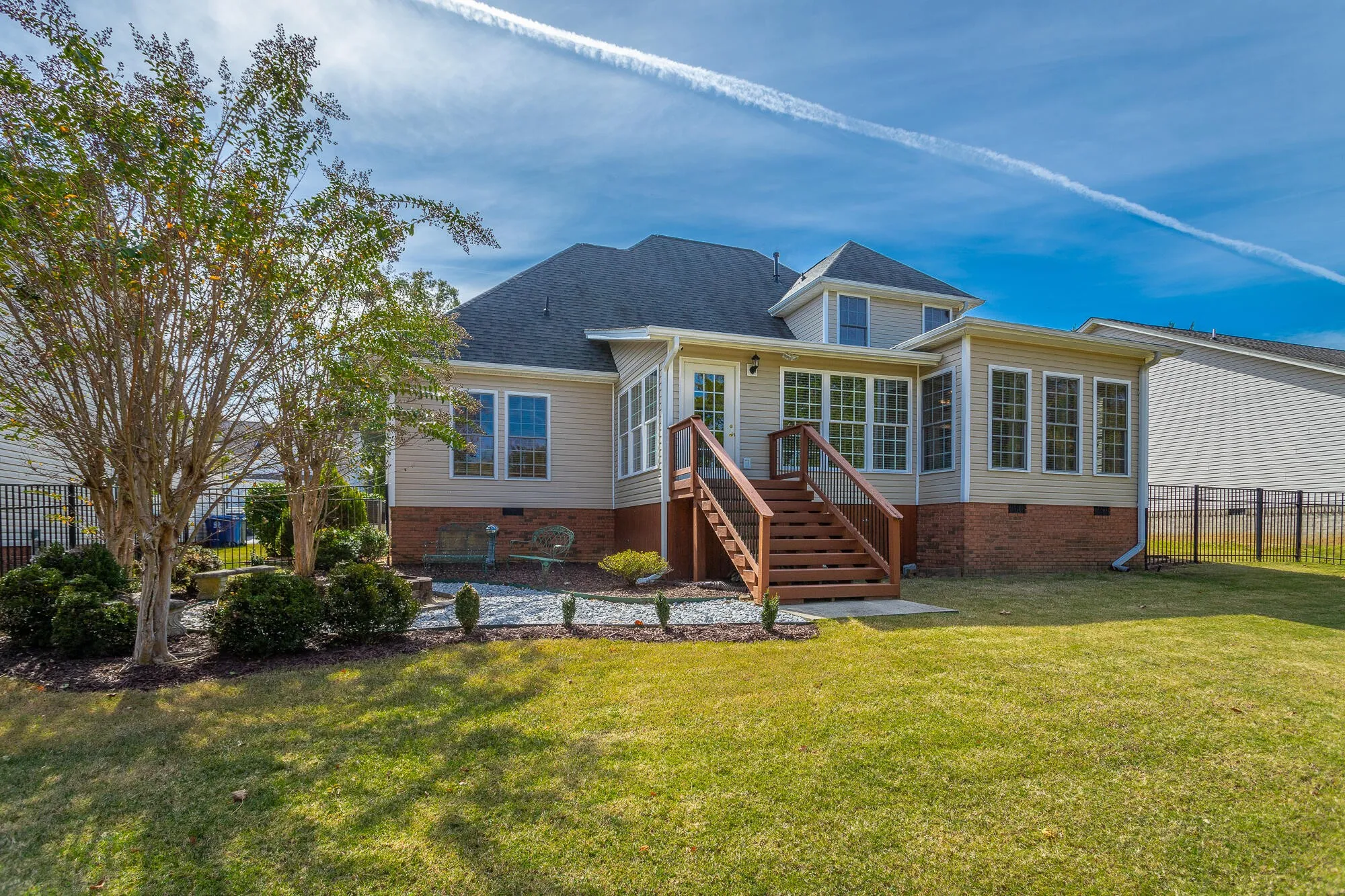 Conveniently located in the heart of Hixson and just minutes from shopping, restaurants, Marina, lake, parks, schools, Publix, Golf, Greenway Farm ( https://www.northchick.org/adventure/greenway-farms), and in the desirable Old Stage Run neighborhood which is a great place to live, work and play! Welcome home to this well maintained and open plan with 3 bedrooms, plus bonus room or 4 bedrooms, and 2 ½ bath home. As you enter the two-story foyer, you will be greeted to the oversized great room with built-in bookcases, glass doors to the sunroom, and hardwood flooring that flows into the eat-in kitchen and den with hardwood flooring and gas fireplace. The kitchen offers bar seating, stainless appliances, four burner gas range, tile backsplash, and pantry. Formal dining room with hardwood flooring. Sunroom is off the great room and den, perfect for entertaining/specialty room/office/playroom. Main level master bedroom with hardwood flooring and walk-in closet. Main level laundry room with sink and cabinets. Upper level offers two bedrooms, plus a bonus room or three bedrooms, and full bath. Deck for entertaining and fenced backyard with a firepit. Garage has a built-in storm shelter. Schedule your showing now before it’s gone! The buyer is responsible to do their due diligence to verify that all information is correct, accurate, and for obtaining any and all restrictions for the property. The number of bedrooms listed above complies with local appraisal standards only.