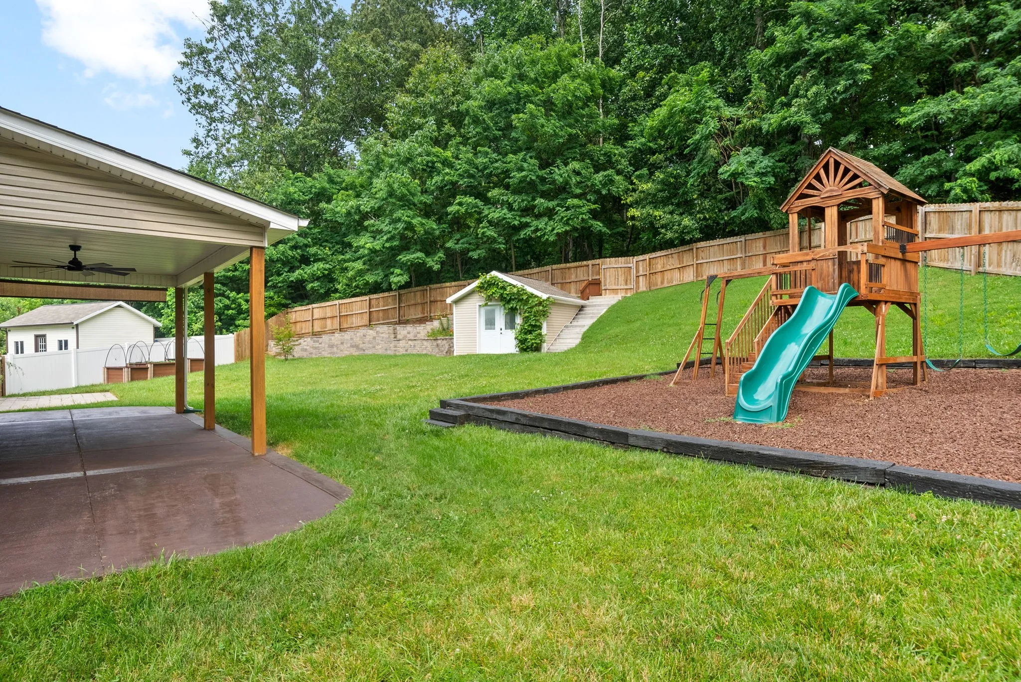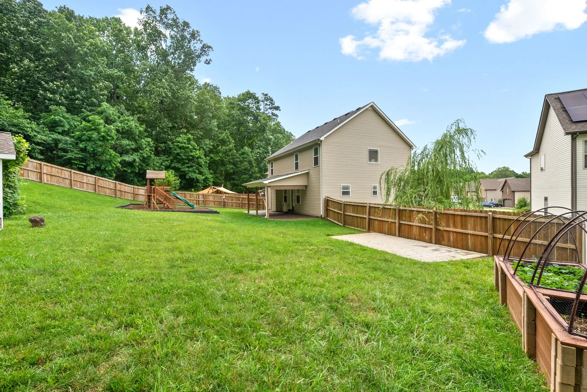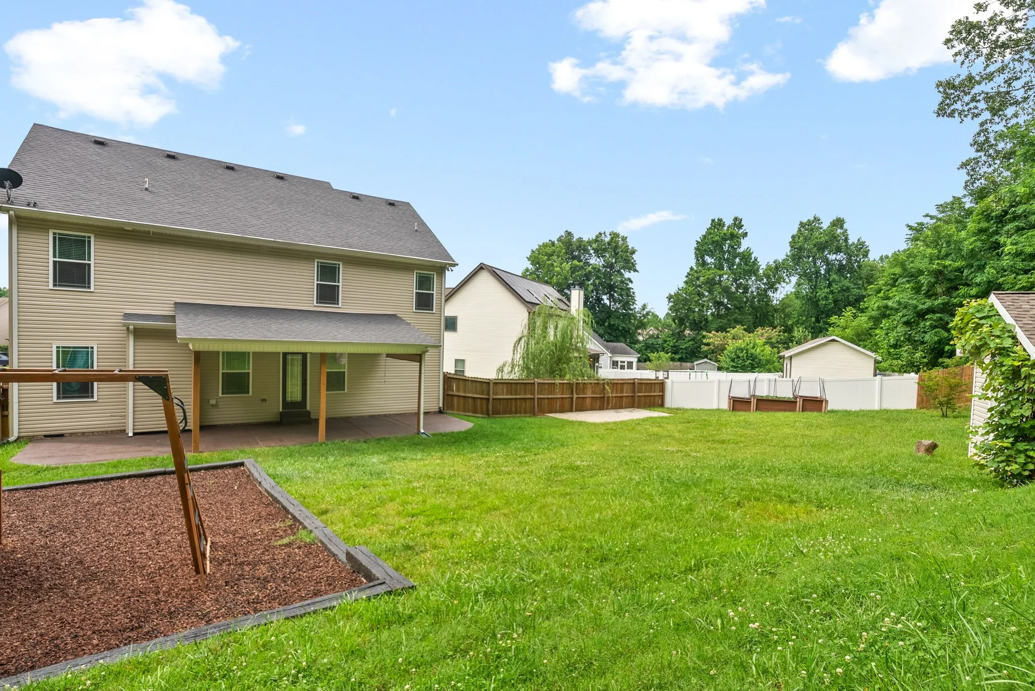 Rare opportunity to own this stunning, meticulously maintained, SINGLE-OWNER home! Enjoy the spacious interior with upgraded quartz kitchen counters, a granite sink, custom backsplash, and high-quality paint. The master bedroom boasts TWO large walk-in closets, and 3 of the 4 bedrooms also have walk-in closets. Wired for a whole house generator and equipped with smart Ecobee thermostats.The exterior features an extended back patio, privacy-fenced backyard, AMAZING playground area, and a raised bed garden. Two apple trees and mature grape vines are an added touch. The property line extends slightly beyond the privacy fence. The sturdy cinder block shed can double as a storm shelter. Located on one of the biggest lots in the neighborhood in a semi cul-de-sac, the HOA-owned 7-acre woods behind the home ensure no backyard neighbors! Enjoy the community the basketball court and pond. Minutes away from i24 makes for a quick 40 min commute to Nashville. Pre-market home inspection on file!