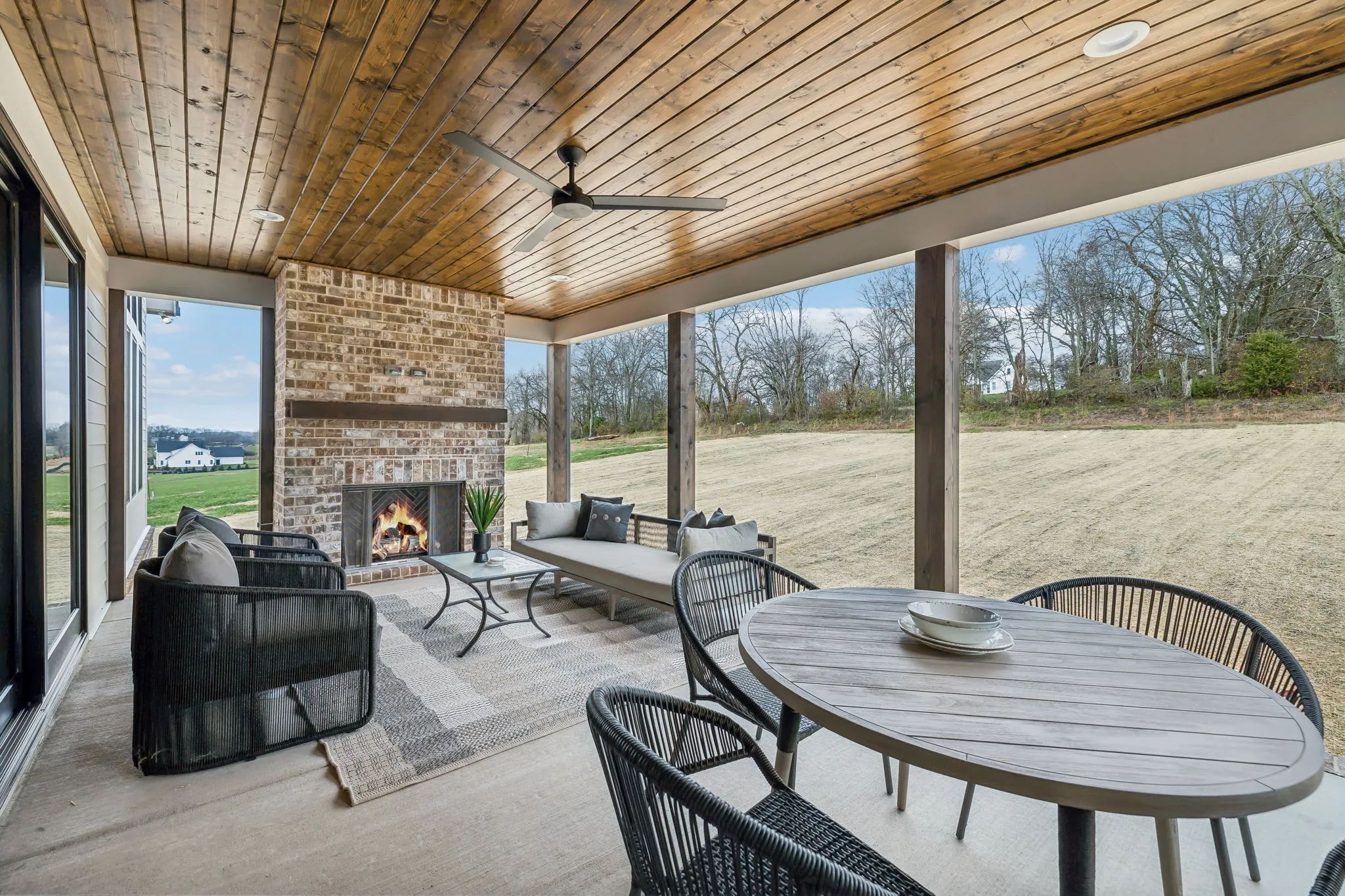 Welcome to Thompson’s Station luxury living! Step through the grand double front doors into this stunning 4-bedroom home boasting an open and spacious layout with a study and dining room graced by ample natural light pouring in through large windows. The heart of the home is the vaulted great room and kitchen area. Slide open the doors to the expansive back porch, complete with a cozy fireplace, perfect for enjoying those Tennessee evenings outdoors. The chef-inspired kitchen features a large island and a charming eat-in area with Thermador appliances. Retreat to the vaulted primary suite, offering a serene oasis with double vanities, a soaking tub, and an oversized shower. Upstairs, three additional bedrooms and a bonus room provide plenty of space for everyone to spread out. Situated on a generous acre lot with a 3-car garage, this is the epitome of Southern living in Thompson’s Station. Don’t miss your chance to call this property home! Plenty of room for a pool.