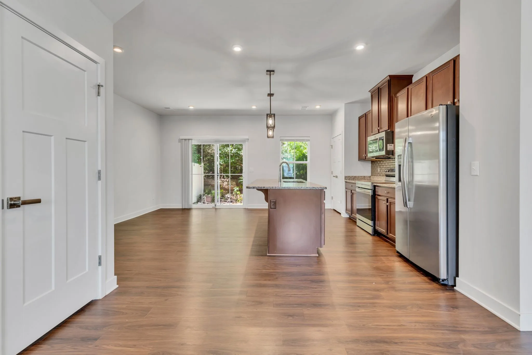 End unit townhome in Summer Glen! This 3 bedroom 2 1/2 bath home offers spacious bedrooms, an open floor plan downstairs. The kitchen is fully equipped with modern finishes and features a great island. Enjoy relaxing on your private patio this summer or hanging out at the community pool. Convenient to downtown Nashville, I24, shopping & dining. Professional pictures coming soon