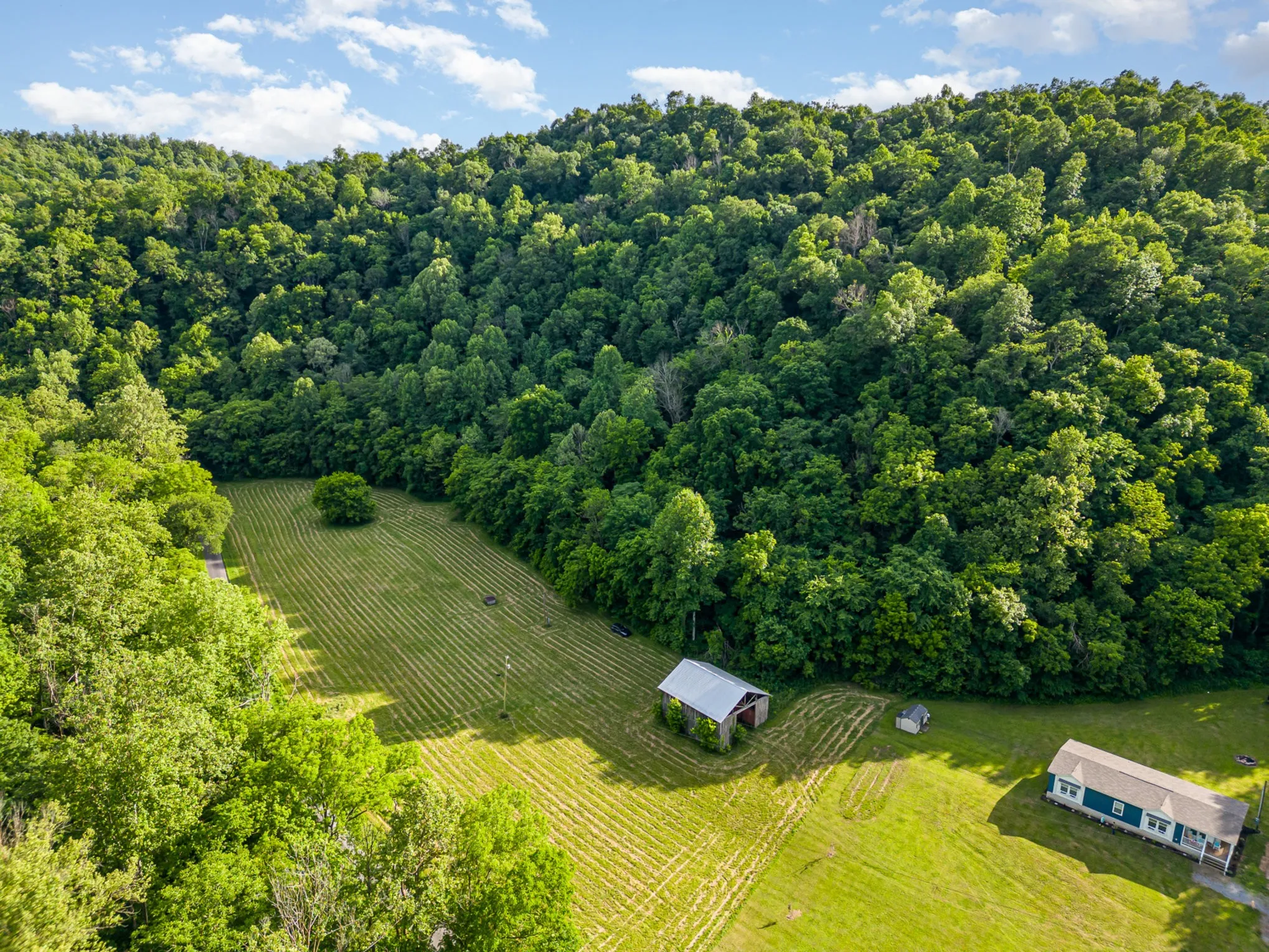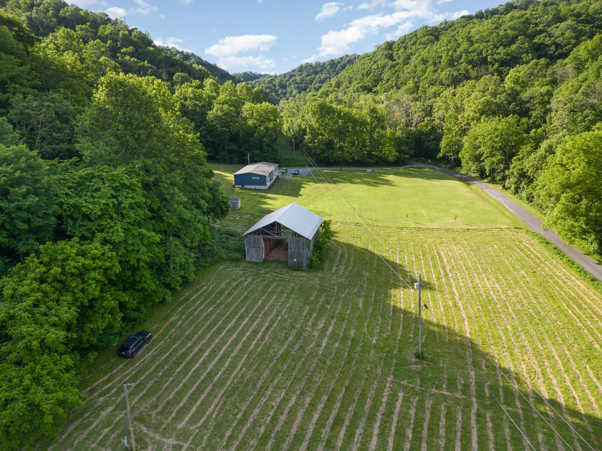 Make an offer! | Secluded valley in Tennessee mountains has beautiful flat open building site with existing electricity and well and over 60 acres of marketable timber | Sportsman’s paradise with abundant wildlife only 29 miles to I-40 | Unrestricted with over 800’ road frontage | Electricity installed in barn, steel outbuilding, and RV hookup | Well water has consistently sufficient pressure and tests good | Oak, hickory, walnut, poplar, & other hardwoods | Telephone and cable/internet installed | Mashlick Creek borders south side of property | RV electric hookup on pole and at barn | Greenbelt tax status | Hunting, camping, ATV, horseback, etc. | 10 miles to Cordell Hull waterfowl refuge | 12 miles to Jackson Co airport | 12 miles to boat launch at Roaring River Park & Cumberland River for fishing | 26 miles to Granville Marina on Cordell Hull Lake or 29 miles to Dale Hollow Marina | Excellent restaurants in nearby Gainesboro 12 miles away (Bull & Thistle, Stolen Coin, Roaring River Distillery)