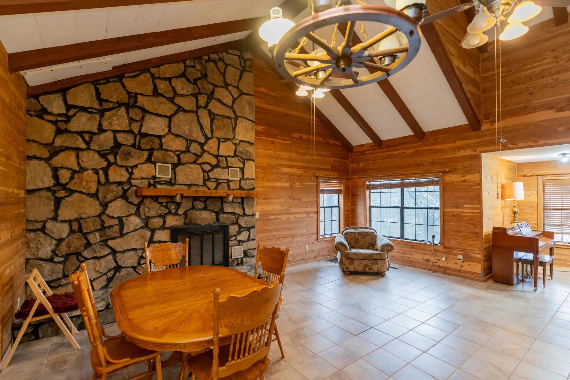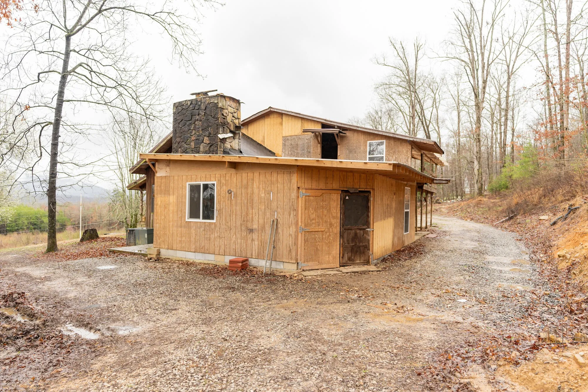 This unique property has loads of potential and is on Approx. 28 acres with a spring, seasonal stream, beautiful hardwood trees and boulders. Relax on the wrap around deck and enjoy the view of Lewis Chapel Mountain. Located just minutes to all Dunlap amenities but with the utmost of privacy. Living room has vaulted ceiling and a stone surround fireplace as a focal point and is open to the kitchen. Primary bedroom is on the main level. Full unfinished basement has a wood stove, loads of storage, barn doors and leads to covered parking. Central heat and air throughout. Plenty of off-street parking for guests. Most rooms need finishing or completion. This is an estate sale and being sold as-is with no repairs done by the seller. Information deemed accurate, but not guaranteed. Buyer to verify anything they deem important. Seller is in process of cleaning up property/debris by sheds. Truck, car, tractors and personal items do not remain. Come see this rare opportunity and make it your own!