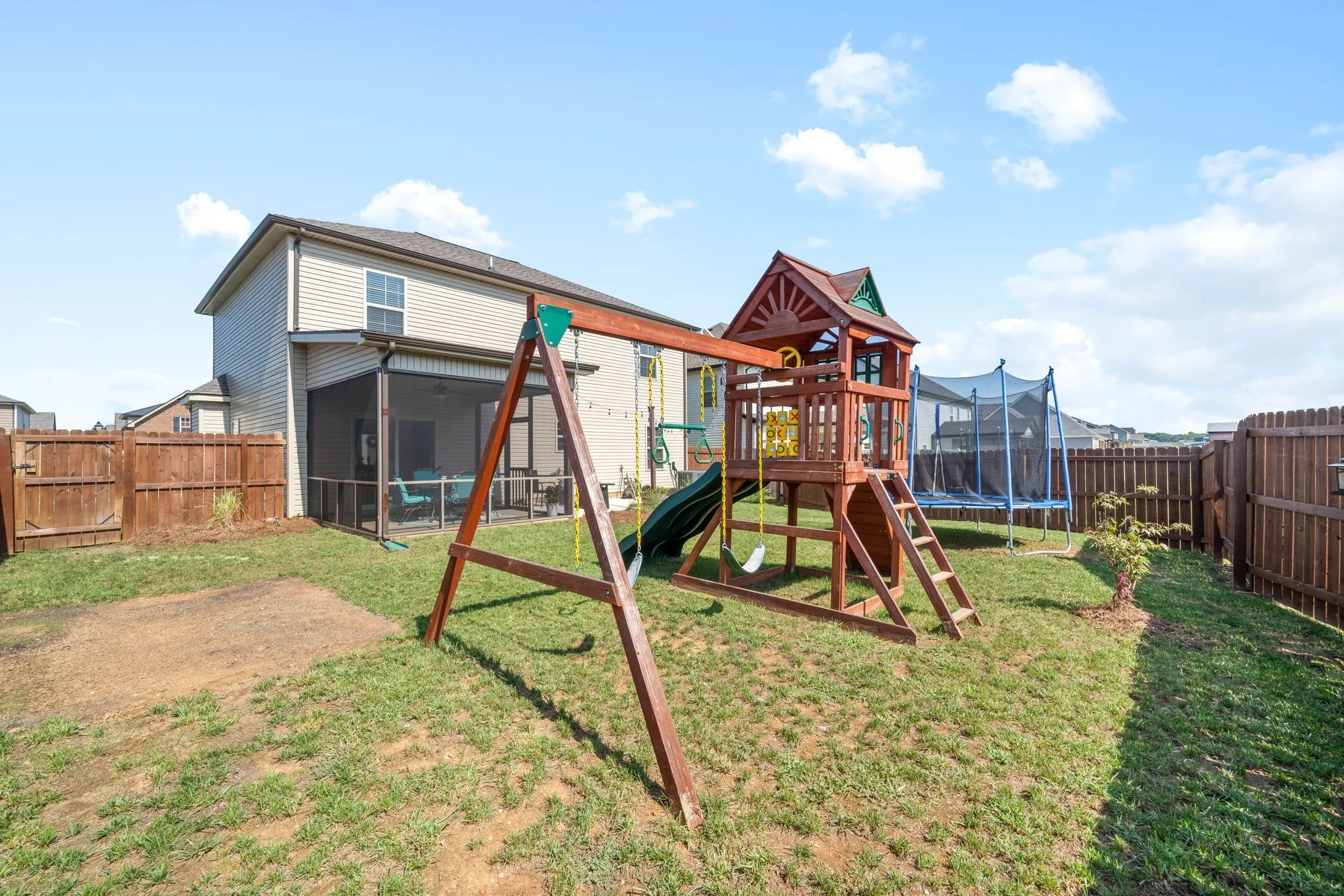 *FREE 1 YEAR HOME WARRANTY!! This beautiful 4 bed, 2.5 bath home in the heart of Clarksville! The location is amazing just minutes from shopping, schools, food, and the interstate. This home is only 2 years old and in excellent condition! Additional Features: Modern flooring throughout the downstairs except bedroom, SHIP LAP surrounds the Fireplace, Cedar Mantel, additional FLEX ROOM/OFFICE on the main floor, upgraded Kitchen Cabinets w/GRANITE Counters, tile backsplash, extra large pantry, stainless steel appliances, drop zone coming in from the garage, central vacuum, extra large 15×20 Primary bedroom SUITE w/ tray ceilings & seating area. All bedrooms have walk-in closets and laundry room is conveniently located upstairs. Owners added window blinds, fenced in the back yard, put in a beautiful SCREENED-IN PATIO, and added an additional concrete pad perfect for entertaining! Lawn is immaculate & serviced by Lawn Doctor. ***Sellers are willing to help with buyers closing costs as well!