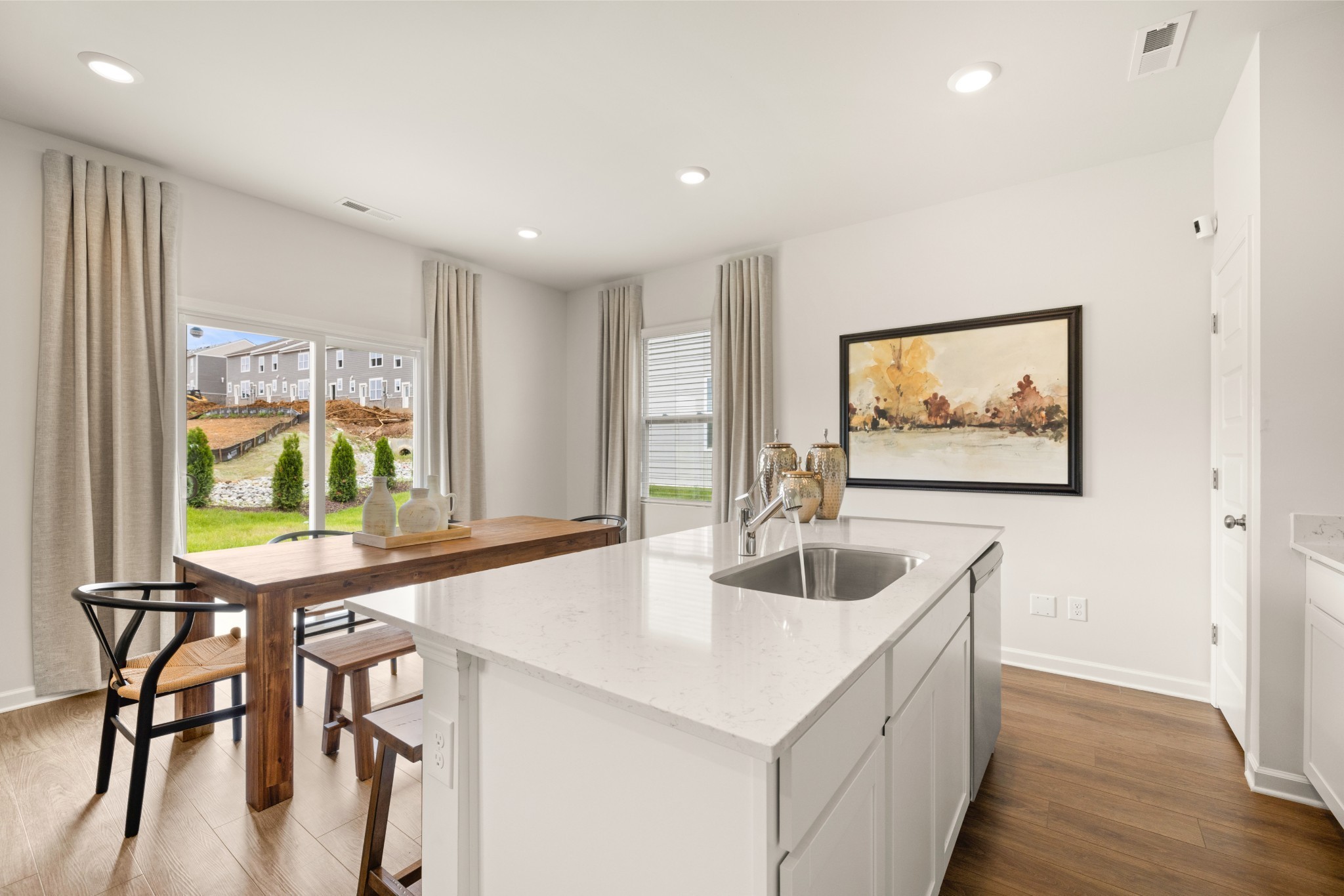 Our Aspen plan featuring all bedrooms upstairs with open concept on the main level. Kitchen comes with all stainless steel appliances by Frigidaire including fridge! Window blinds, quartz countertops, luxury vinyl plank flooring, smart tech, and more included in list price. Future community pool, cabana, tot lot, playground, and pickle ball court coming!