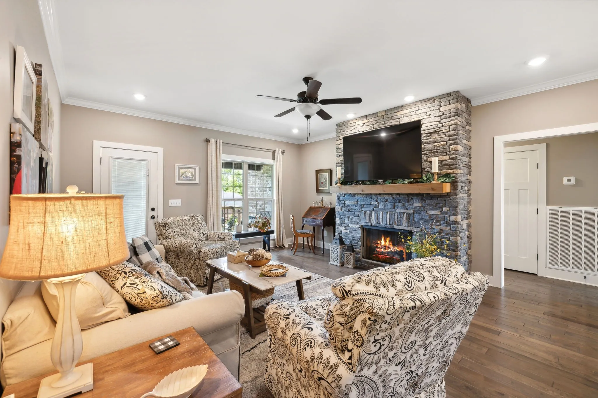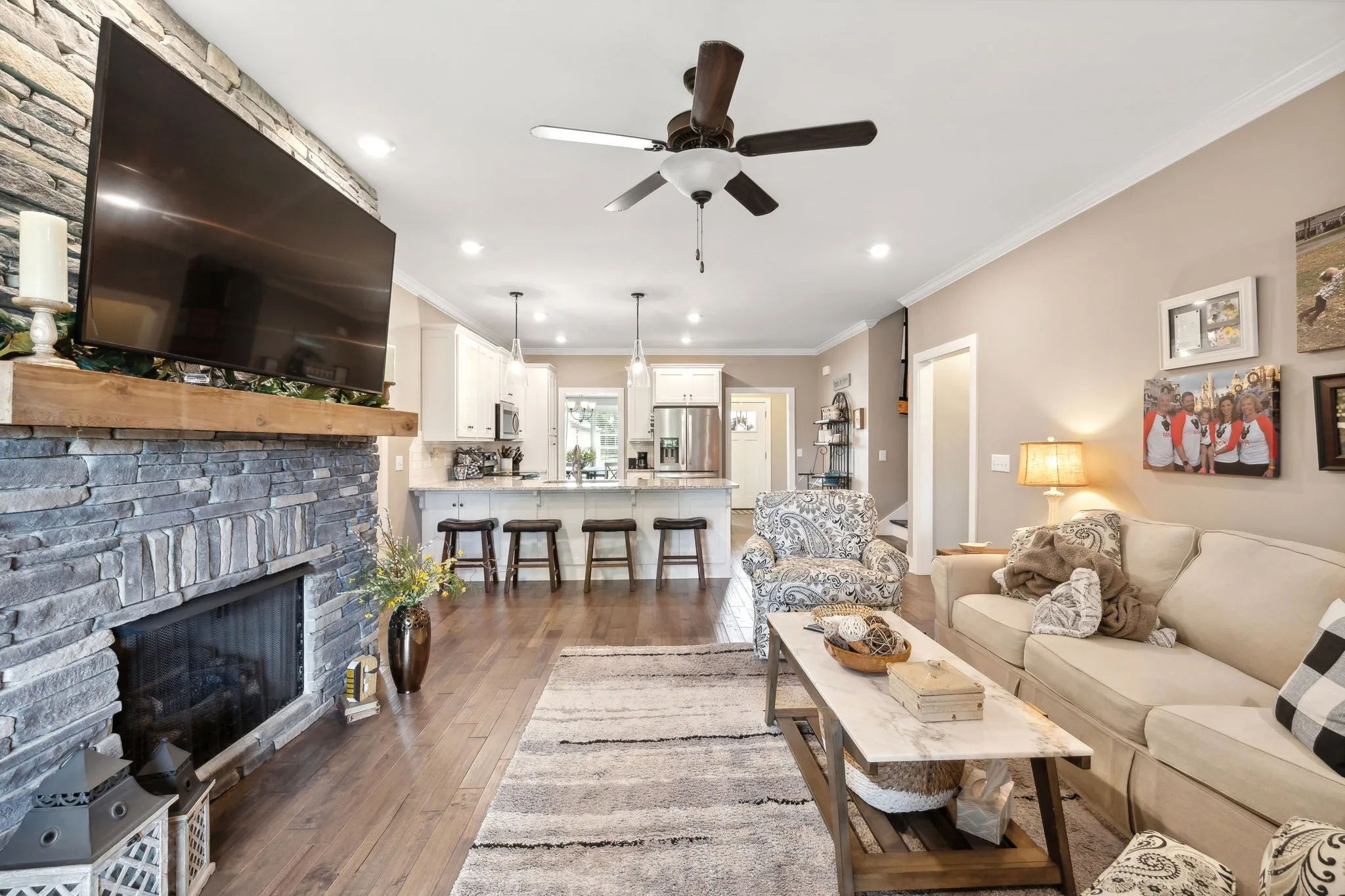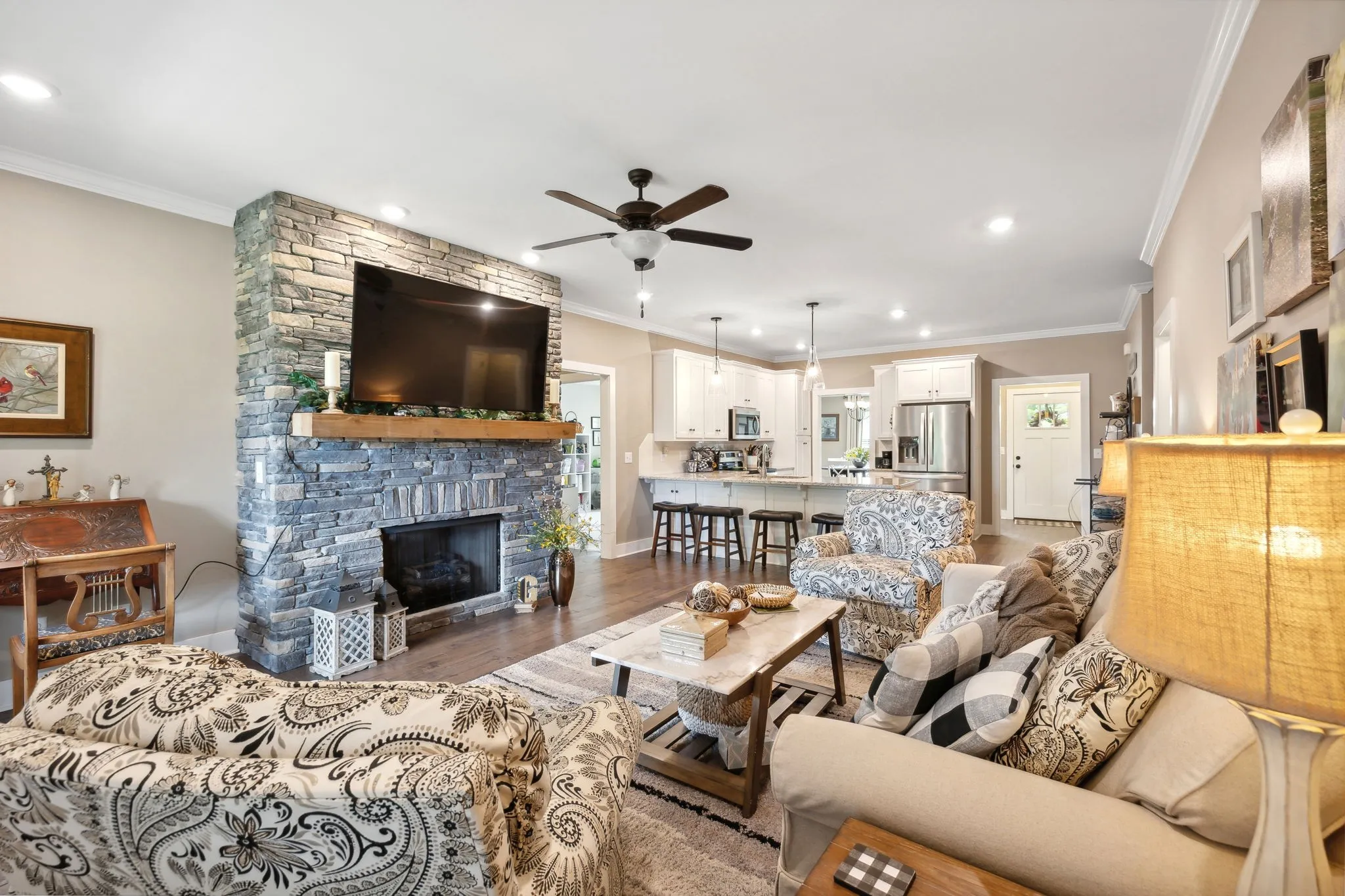 Gorgeous, well maintained home in Twin Eagles community of Gallatin! All brick, split bedroom floorplan, huge bonus room with walk in attic storage. Living room features a large stone fireplace with switch on gas for ease. Hardwood floors, tile shower, granite counters! Custom landscaping in front and back of home. Walk out deck in back yard and freshly planted evergreens for eventual privacy. Come and see this one, it won’t last long!