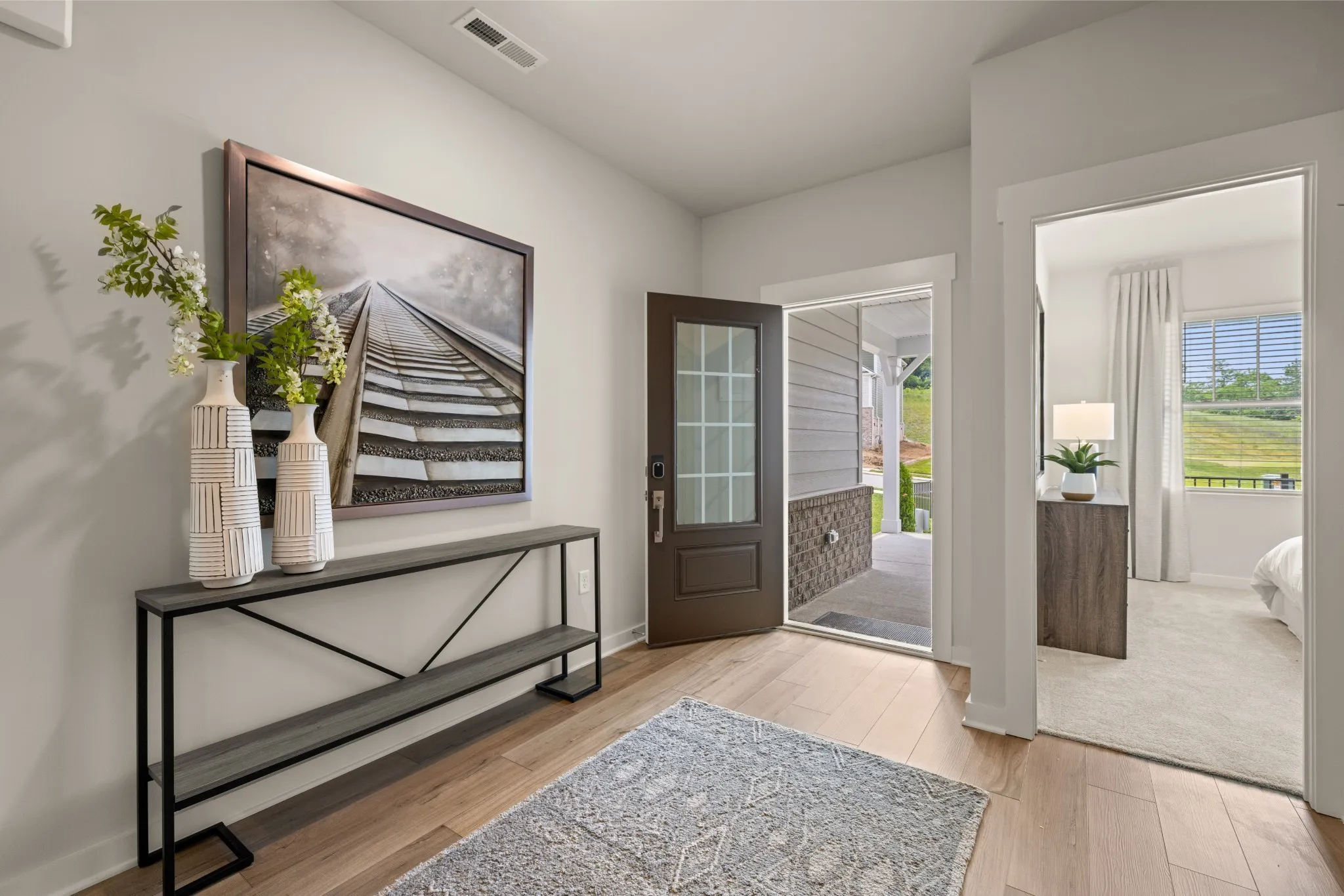 Our most popular one level plan with open concept and well designed use of space – everyone loves the extra wide entry foyer on this home! Fully loaded kitchen with gas cooking, stainless steel appliances, quartz countertops, and more. Nice covered back patio included and no additional costs to factor into list price. Luxury vinyl plank flooring throughout common living areas. Walk-in laundry and drop zone area as you come in from the 2car garage. Must see! Model home available to tour in community.