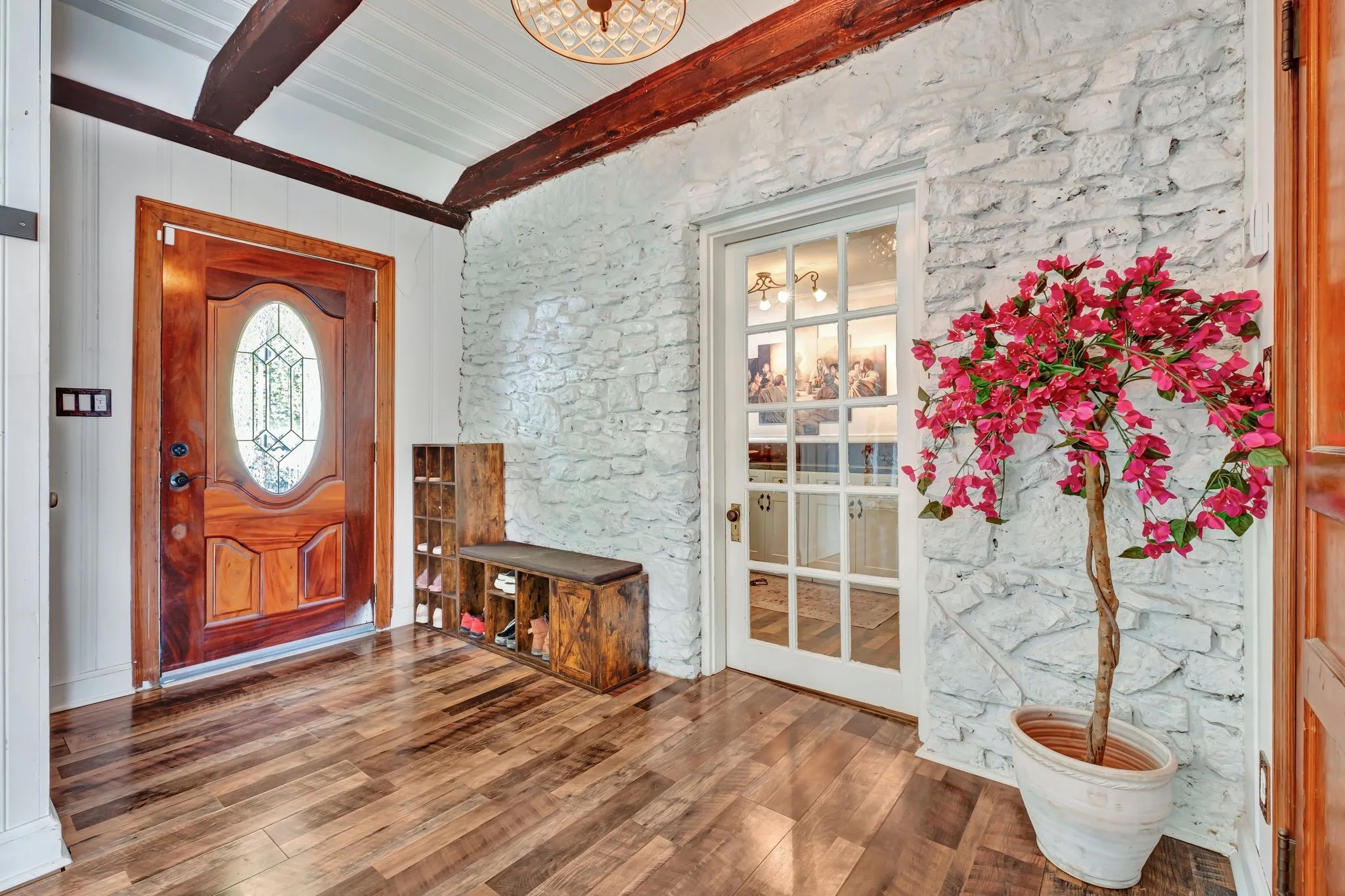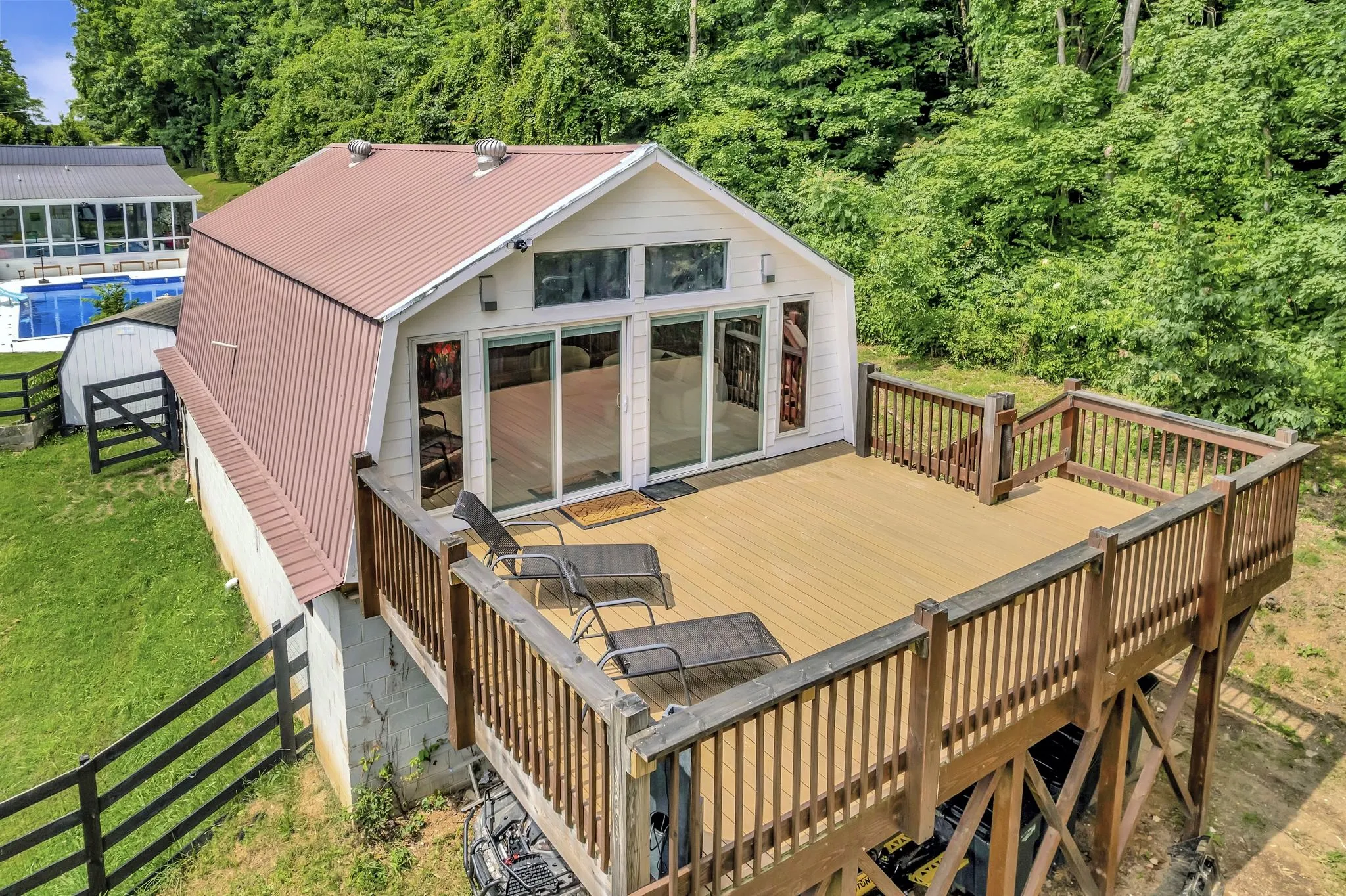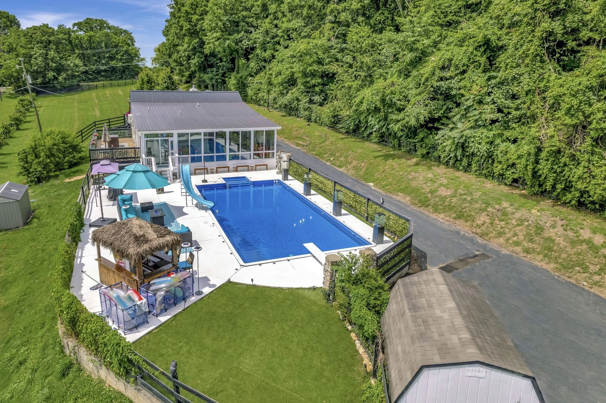 +"PublicRemarks": "INSANE PRICE REDUCTION AND $25,000 IN CONCESSIONS! Discover a truly unique gem just 15 minutes from Nashville! This property sprawls almost 2 fenced acres, seamlessly blending historic charm with modern luxury. The original stacked stone home, with over 85 years of history, exudes timeless elegance of the European countryside. The stunning wood beams and inviting limewashed fireplace has an abundance of character and charm to the space. Stepping into the glass addition instantly transports you to the vibrant ambiance of South Beach, with sun-soaked interiors overlooking your private 20x40 inground saltwater pool. The main level has 2 bedrooms and 2 baths, including the Primary. Descend to the basement to discover another full bath, laundry, and bonus room for versatility. Above the garage, a finished extra 700 square feet for guests, an Airbnb, or music studio. Enhanced by the current owners, it is an entertainer's dream. Look below to see Property Video + List of Improvements"
