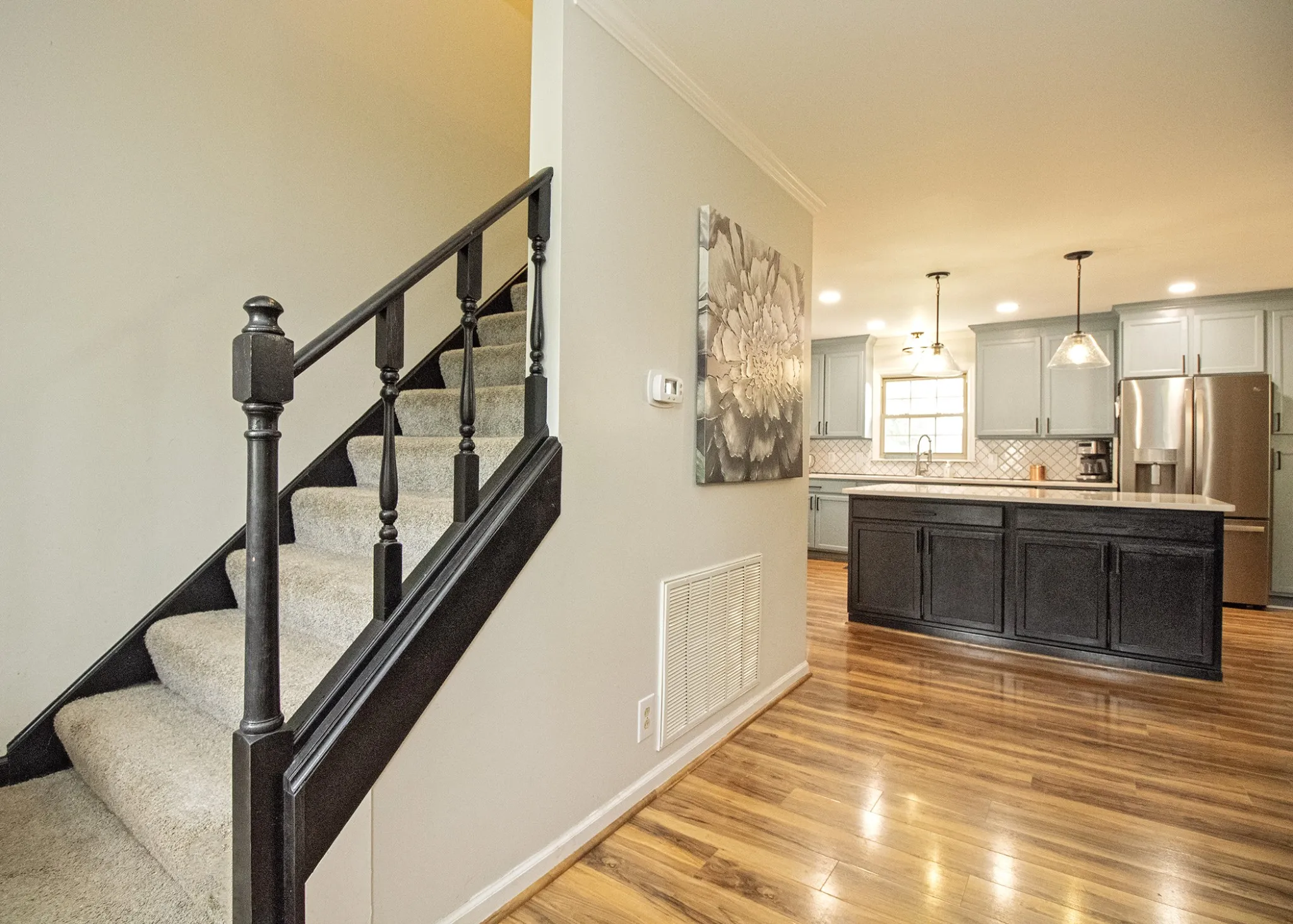 DREAM KITCHEN awaits you on the Indian Lake Peninsula! This home has been completely remodeled with a new opened up kitchen with state of the art appliances including induction over and beverage cooler, updated bathrooms, new flooring and paint, new deck with trex, HVAC 4 years old. Upstairs could be made into one large primary suite, could be used as bedroom and separate office/bonus, or turn into 2 bedrooms. Main floor boasts a primary bedroom with en suite bath and an additional guest room. Half bath on main was converted to a full bath. Washer, dryer and refrigerator stay! Minutes to by pass, shopping, gyms, Half Batch Brewery and grocery stores. Additional membership available for community pool, clubhouse and basketball courts!