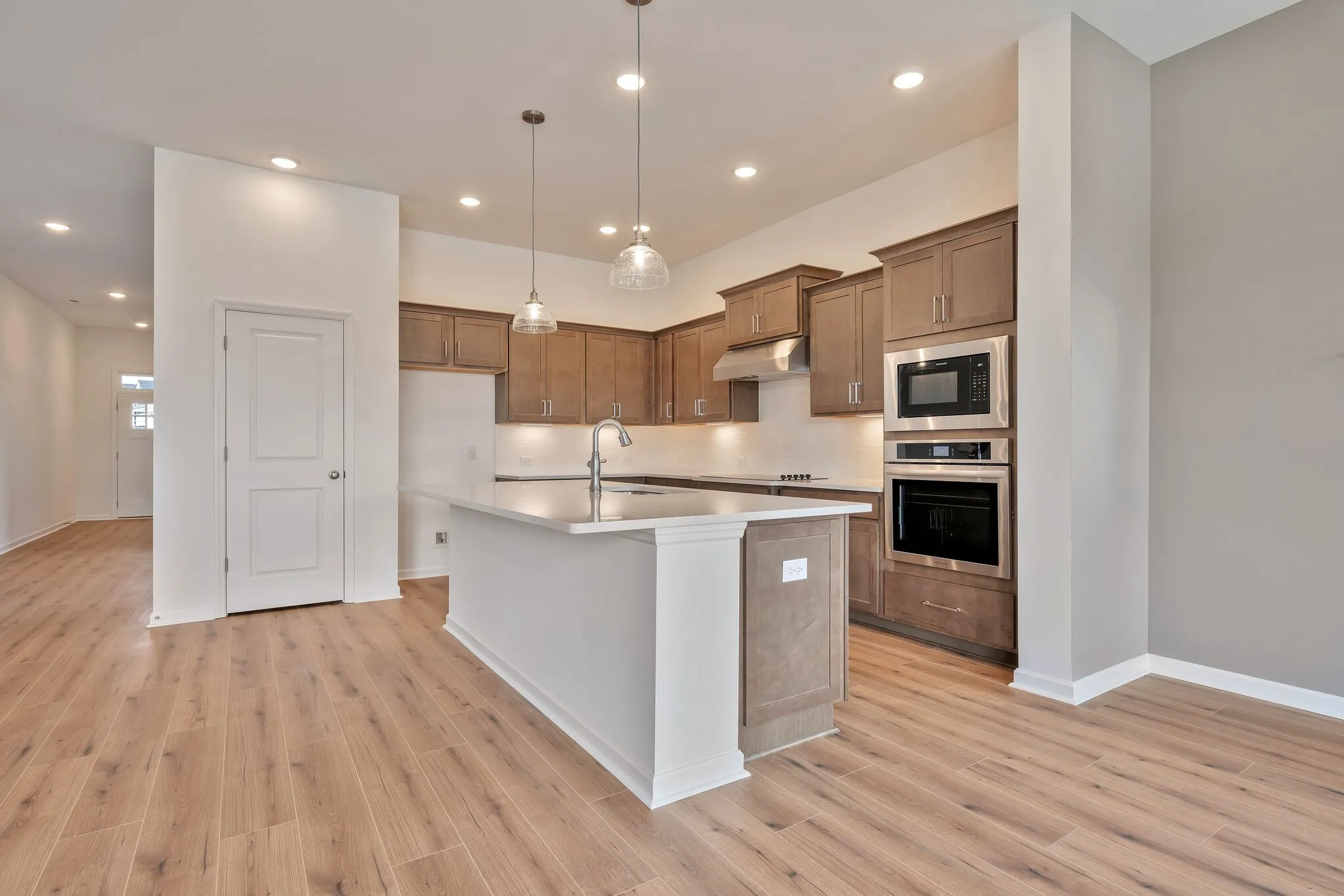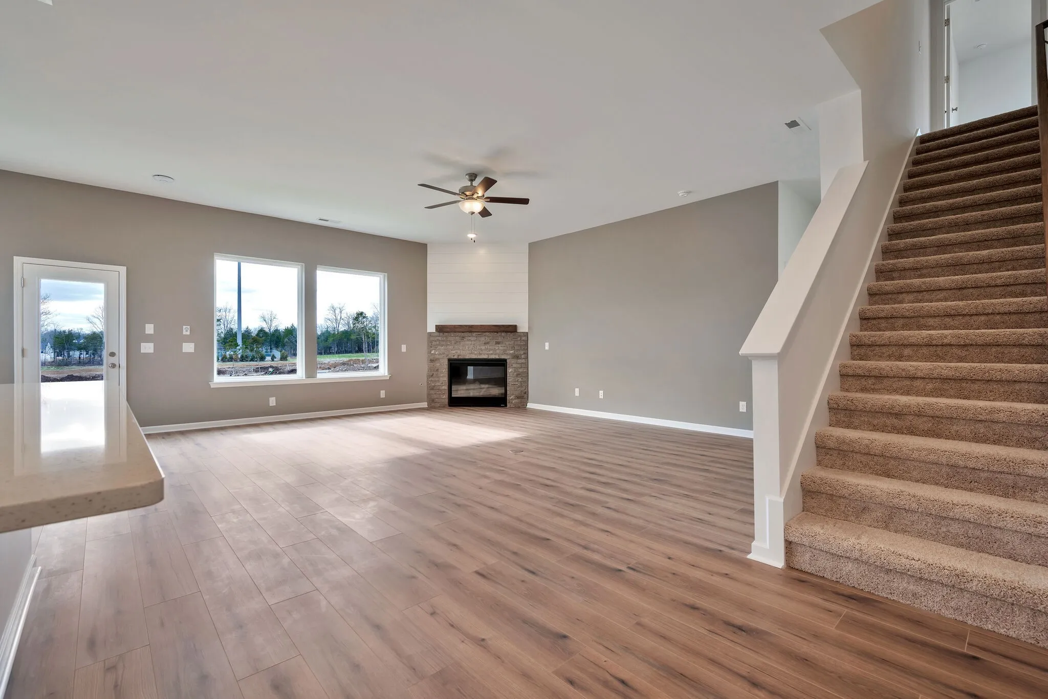 Our ranch style Riverwood floorplan boasts 10 foot ceilings and includes 4 bedrooms, 3 baths. This open-concept floorplan with luxury kitchen includes electric cooktop, hood vented to the exterior, built in microwave and oven. Granite Countertops. Corner fireplace in living room with shiplap. At the end of a long day relax in your spa-inspired en suite bathroom with our coveted Super Shower.