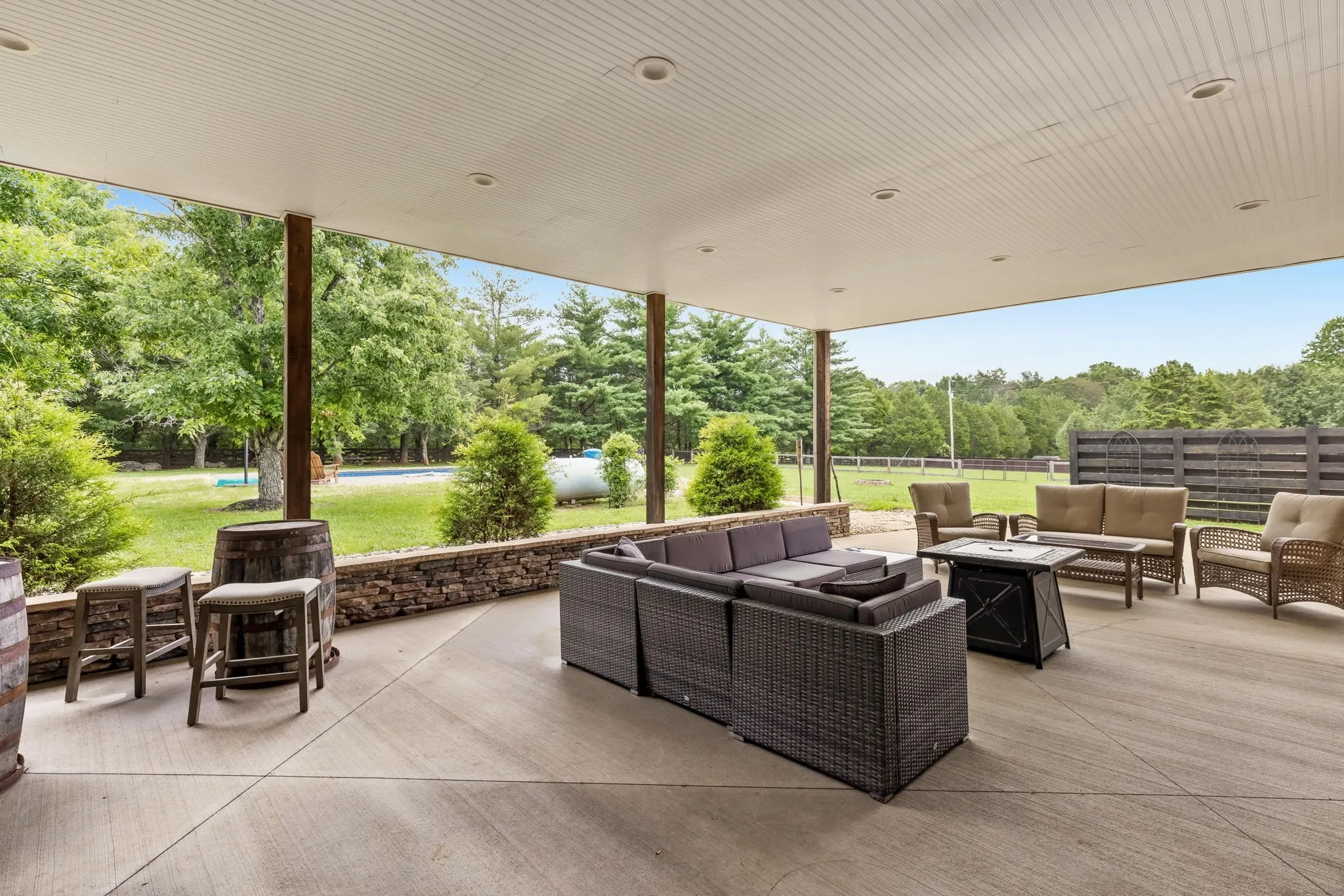 This 4 acre private estate, offers the convenience of the city with the privacy of the country. All 4 acres are fully fenced in with a gated entrance. This home features new HVAC systems, industrial metal roof, premium appliances, massive 3 car garage. Outdoors, a serene covered patio area next to your private in ground pool perfect for relaxing on a sunny day. This country home will exceed all of your expectations!