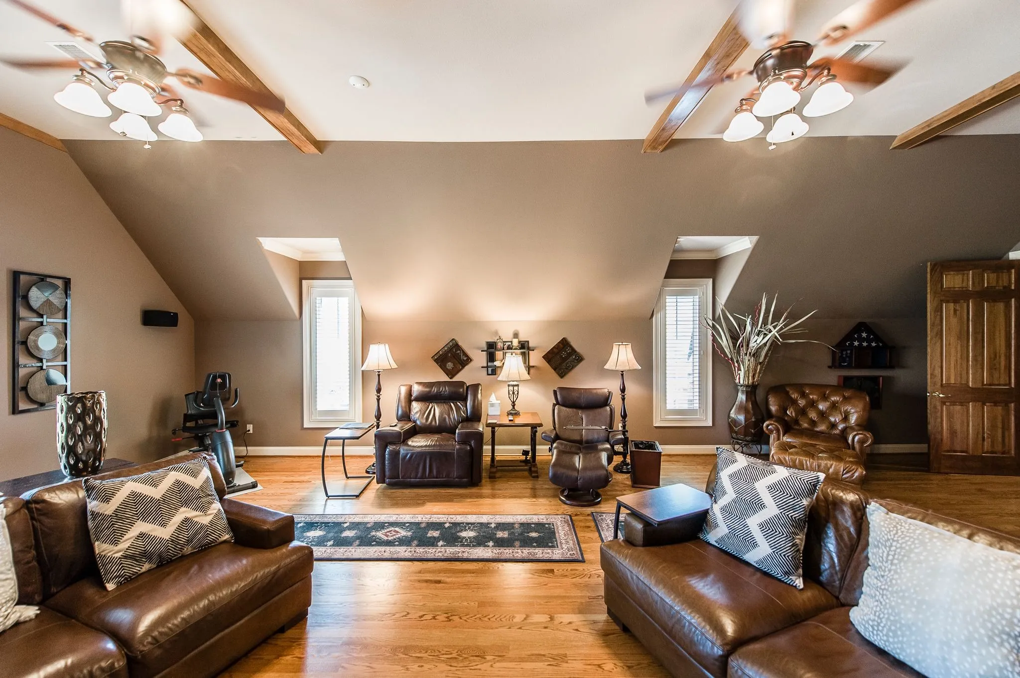 Unique custom home with mostly one level living features wood floors throughout home, two primary suites on main level, each with own bath, cambria quartz countertops throughout, recently updated kitchen w/all new appliances including Bosch double ovens & induction cooktop, plantation shutters, 8 ft solid wood doors throughout, steel castle entry doors, filtered water/entire home, tankless hot water heater, 3rd bedroom or oversized bonus space on second level w/ half bath, climate controlled 3 car garage with minimal steps, 1739 sq ft unfinished basement space w/ storm room, outside security cameras, surround sound in bonus room (to remain), salt water “Hot Springs” spa (to remain), study w/ built ins & custom closets. This home is a must see with so many high end upgrades!