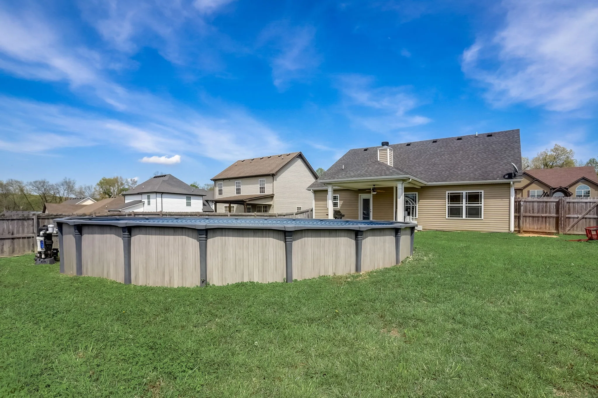 WOW, you won’t want to miss out on this beautiful home! This spectacular home is a 3-bed, 3 full bath gem with all bedrooms down including primary suite, a charming living room featuring a cozy wood-burning fireplace, and a massive 20×20 bonus room above the attached 2-car garage. Situated on a larger corner lot, this property boasts a fenced backyard with a covered patio and an amazing 33′ above-ground pool for your ultimate relaxation! Some updates include a fresh coat of interior paint, brand new insulated garage door, newer fridge and stove and smoke alarms. Excellent location and convenient to shopping and Fort Campbell. Schedule your private tour today before it’s gone!