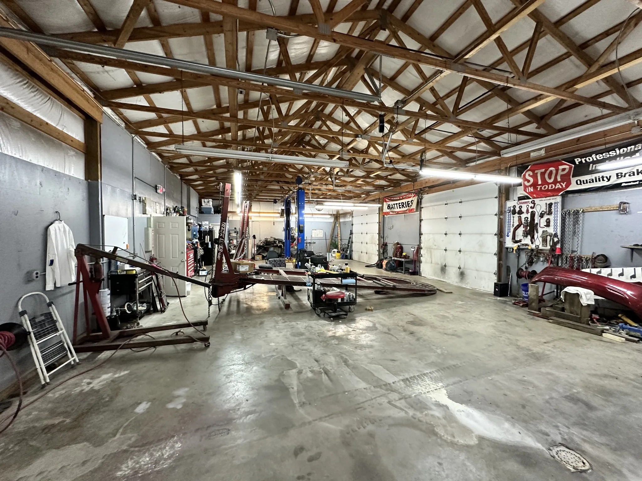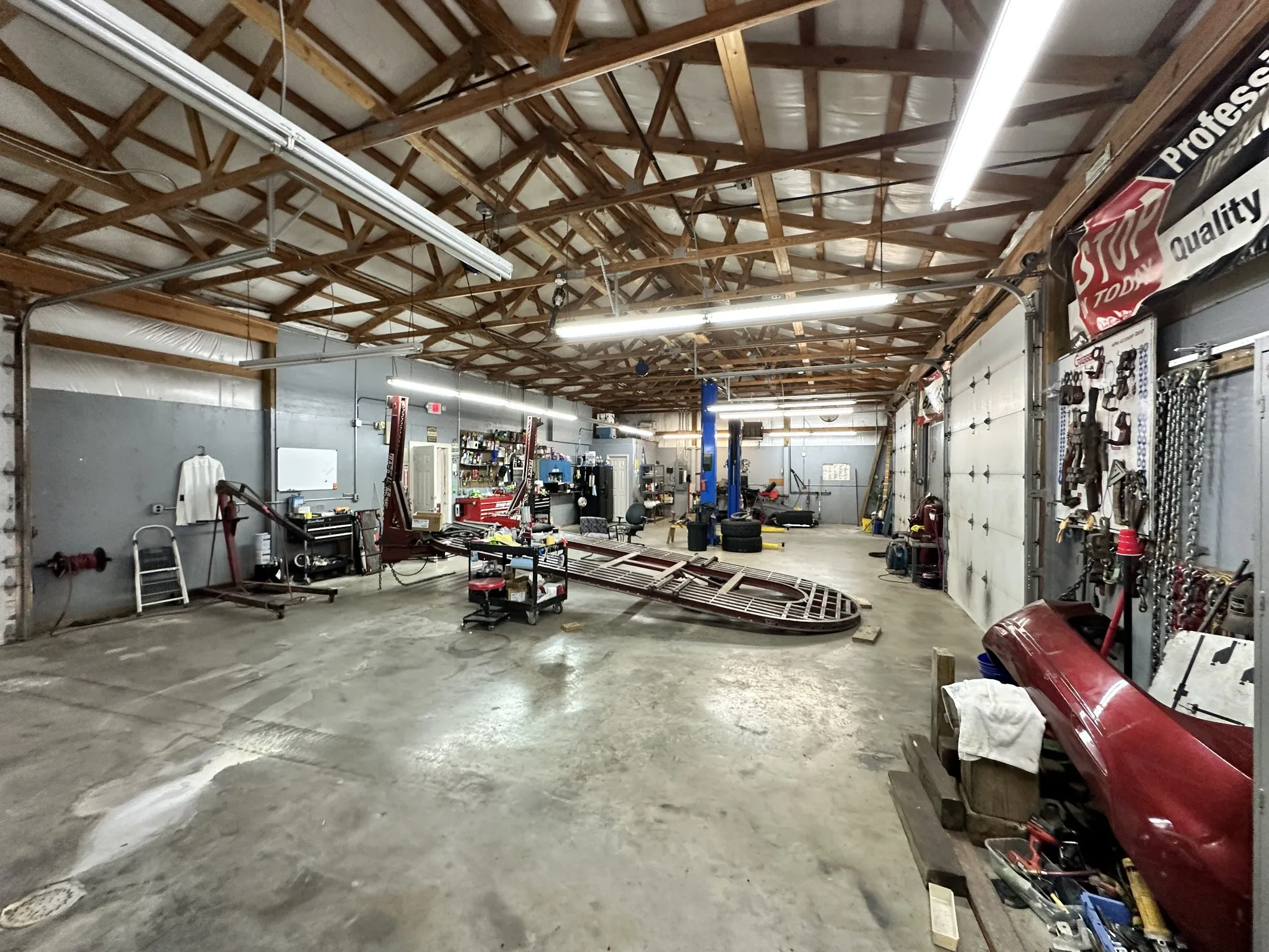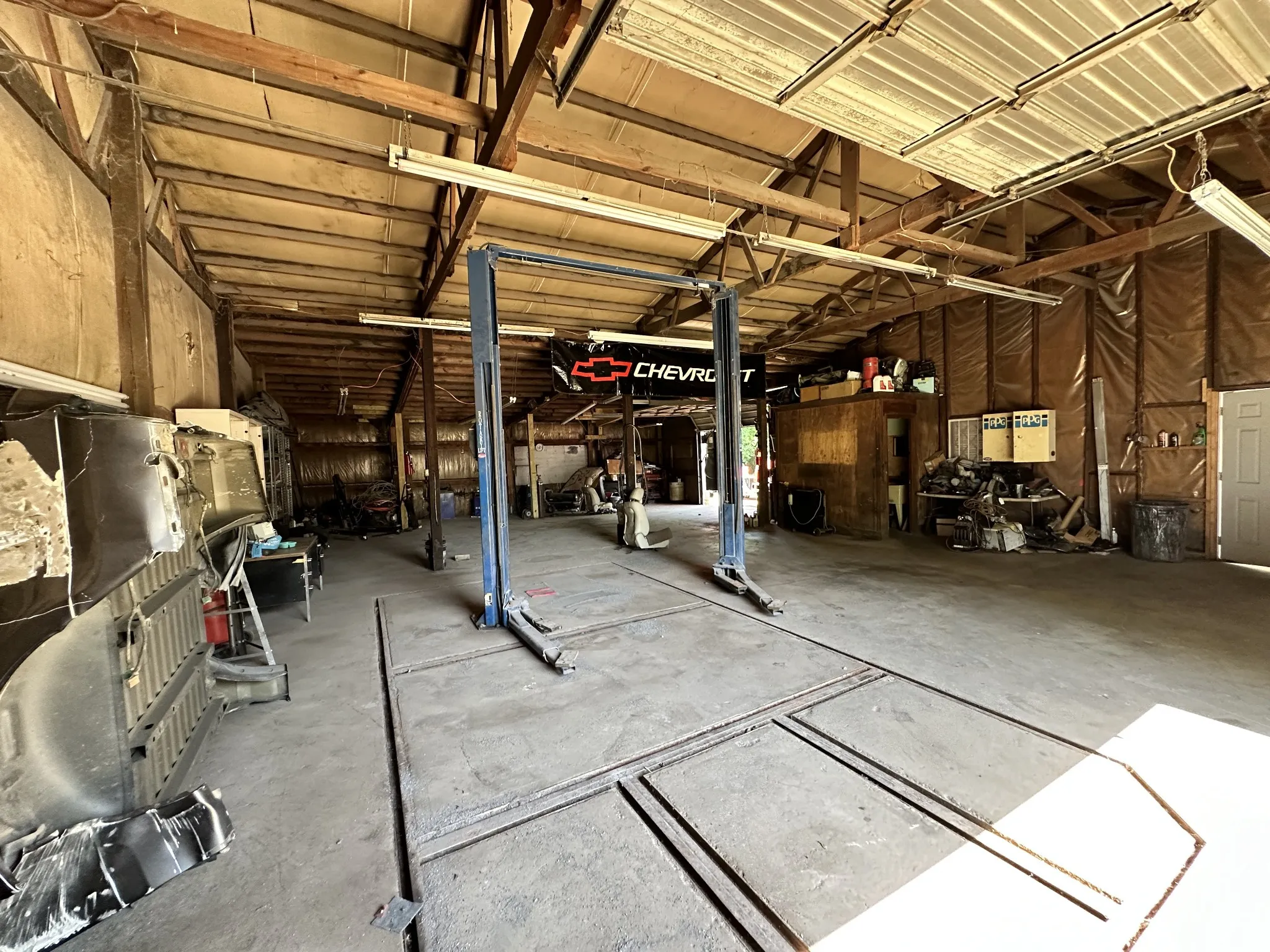 Currently used as a body shop. Previously used for automotive sales. Unique opportunity for end user in the automotive business. Two buildings on 1.96 acres. Front building is 2050sf and rear building is 2436sf. Each building has three roll up doors and a lift. List of permitted uses in media. No sign on property. Buyer and Buyers Agent to confirm tax record data.