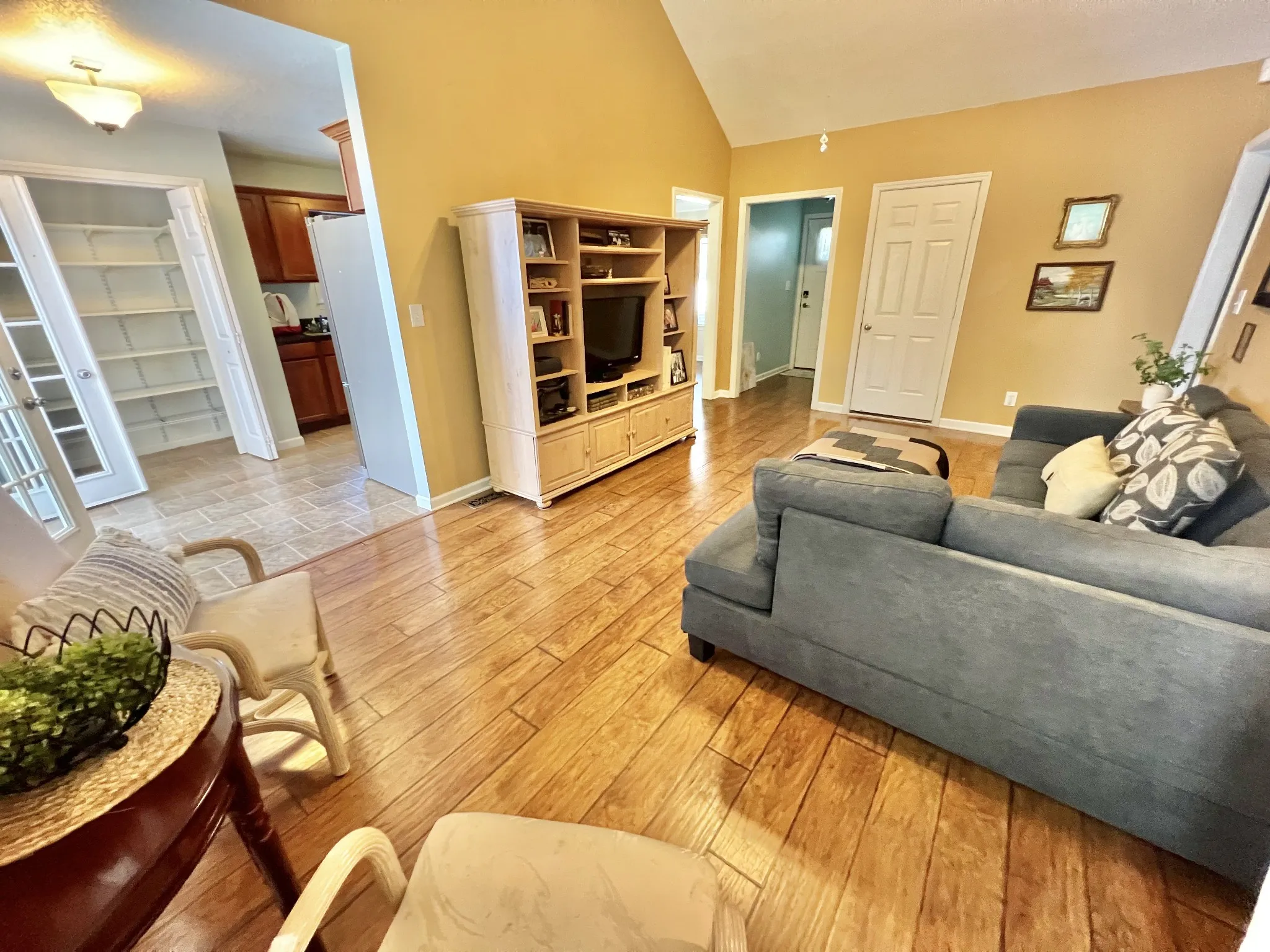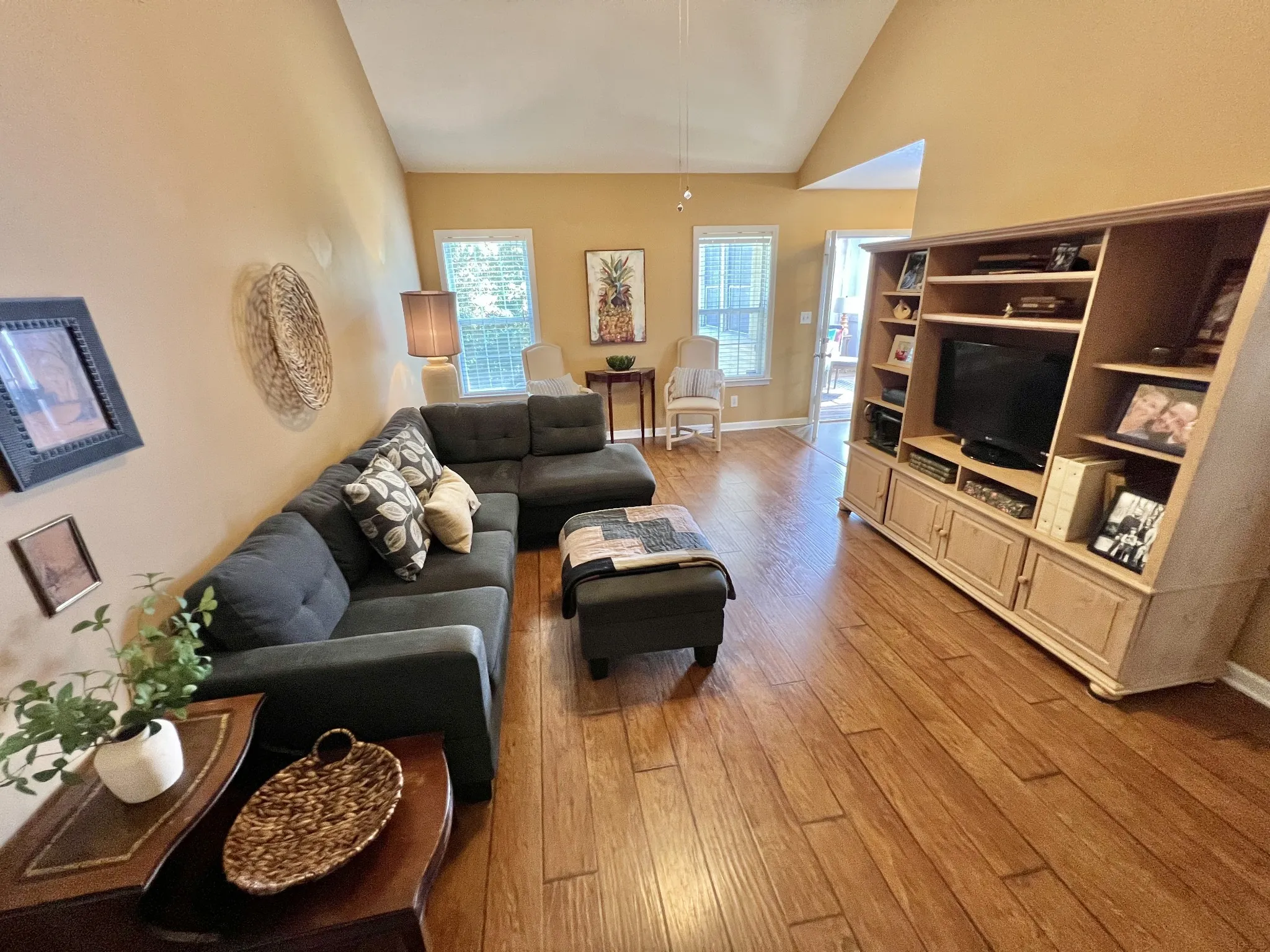 SANGO AREA! Less than 2 miles from I-24! Just over 1/2 acre corner lot with no backyard neighbors* Home features large fenced back yard, fire pit, storage shed, gas stove, large pantry, enclosed deck, full finished basement area with bath! Primary bath shower has stone tile w bench, and rain/body-jet shower head. The huge downstairs bedroom has full bath, walk-in closet, and private entrance making it a great area for parent or adult child. The Shop area has several cabinets and tons of counter and storage space. New hot water heater. Blinds on all windows. Laminate wood flooring on most of main floor of home. Carpet in basement room*covered patio area