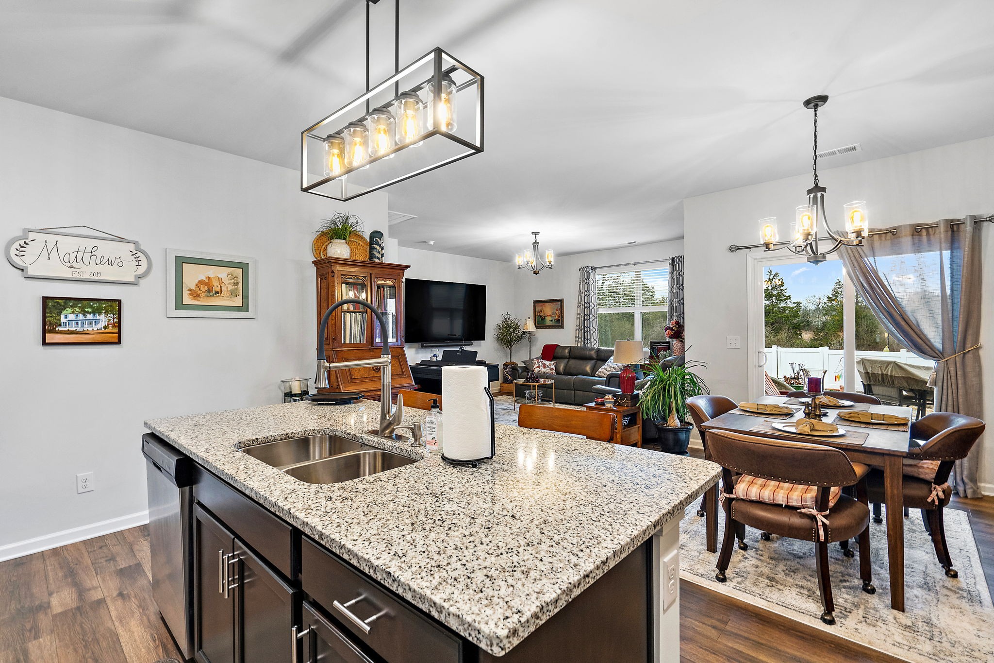 Well-kept, 1-level, 4-bedroom home in Lebanon. Popular Cali floor plan with open living room-dining-kitchen.Lovely kitchen design w/granite, dark cabinetry, backsplash, upgraded faucet and island lighting. LVP flooring. Shower faucet & most lighting has been upgraded. Refrigerator, washer, dryer to remain.Close the laundry room door and step outside to the covered patio to relax. If you prefer privacy, this house has it. Find tranquility in this fenced backyard with flagstone patio,river rock pathways and vibrant flower beds. Backs to trees. Don’t miss this gem!