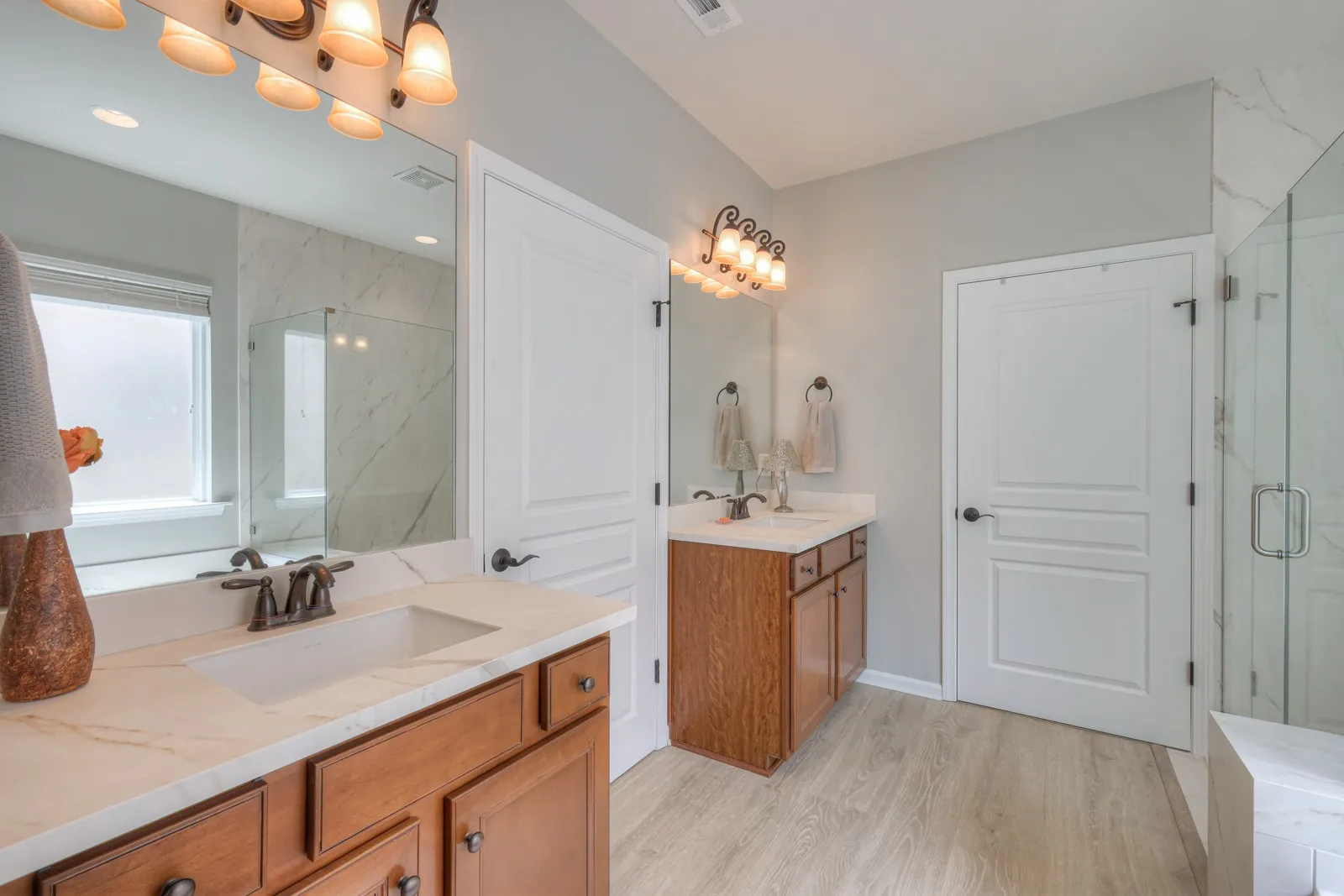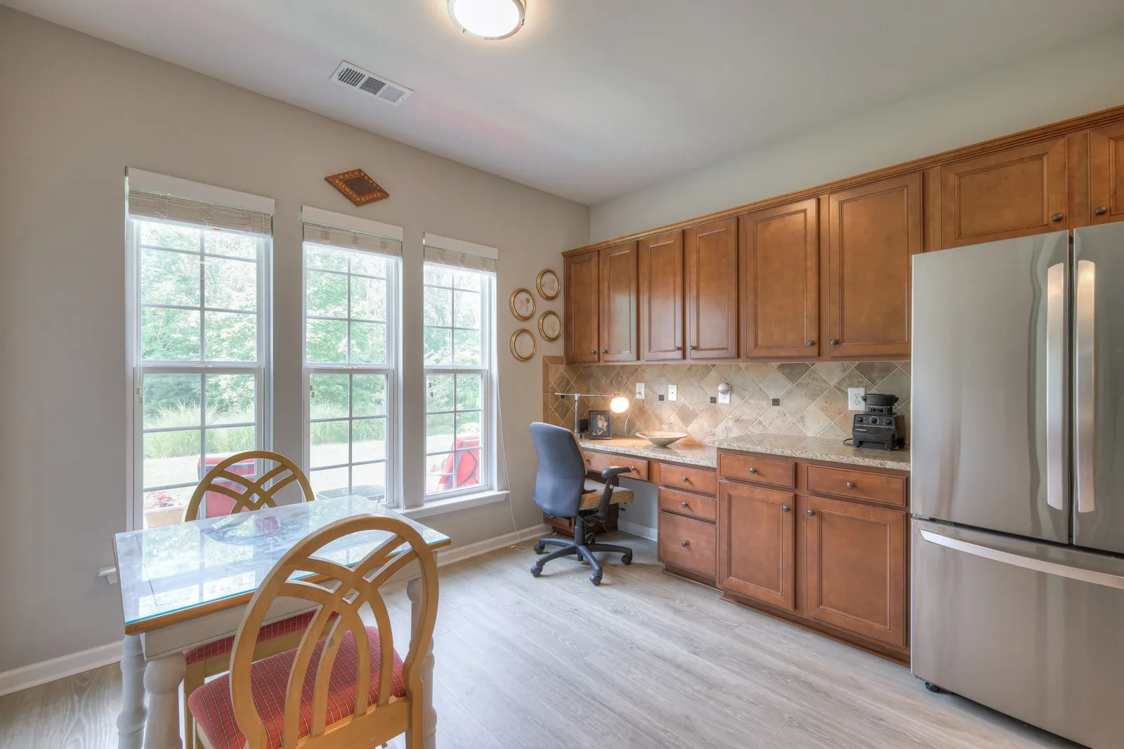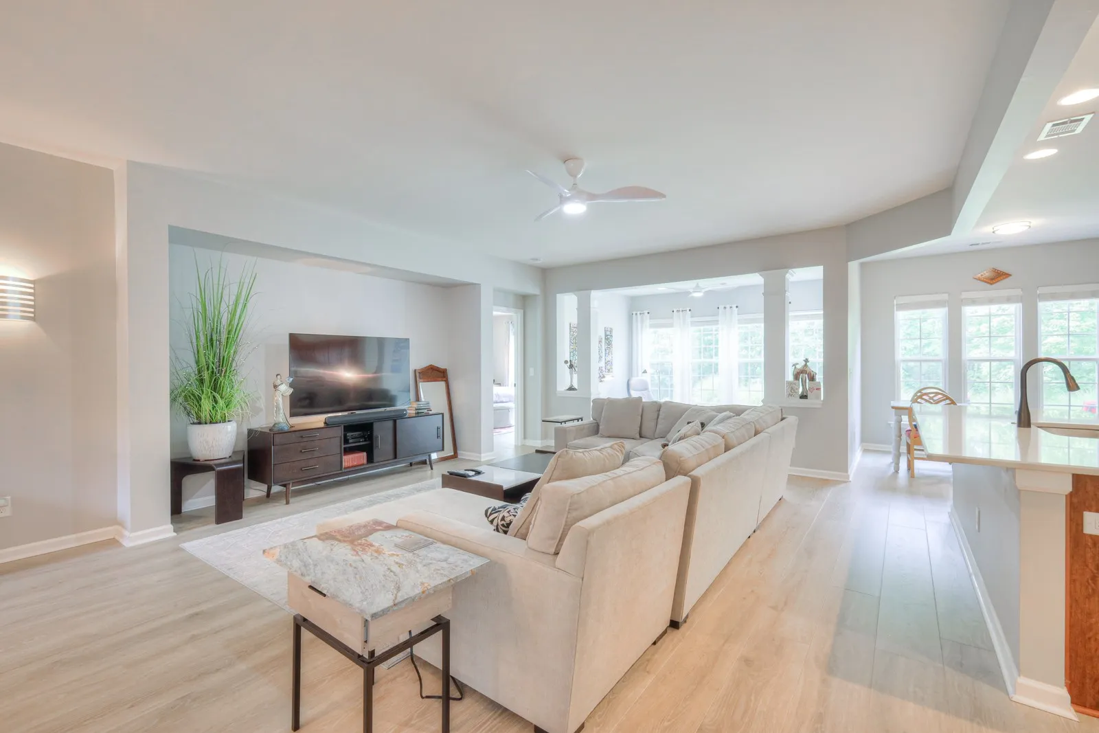 Elegant and stylish Vernon Hill with a tranquil backyard view! This home features 3 Bedrooms, 2 Baths, an Office, and a Sunroom. The owners have made amazing upgrades to it, including: 2023 GAF Timberline Roof; 2023 Water Heater; Mohawk Revwood flooring throughout most of the home; Oversized Quartz island with new sink & garbage disposal; >$20k Remodeled Master Bathroom by Moderno Porcelain Works w/ 9′ grout-less porcelain slabs, a dam-less shower, and matching vanity counters; Modern Reiga ceiling fans w/ remotes; 2023 smoke detectors; Fashionable Sherwin Williams interior paint; Brand New KitchenAid Microwave; Newer LG French Door Refrigerator, and more!!! This home also contains Attic Storage above the garage, an Irrigation System for the lawn, and a Washer & Dryer. You don’t want to miss your opportunity to own this one in Nashville’s premier 55+ community, Del Webb Lake Providence!