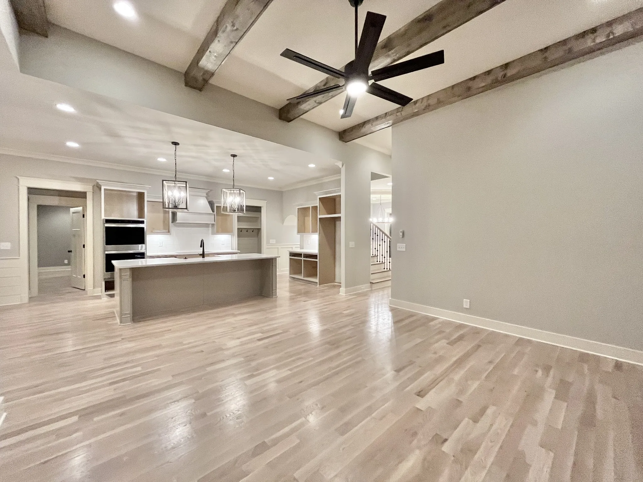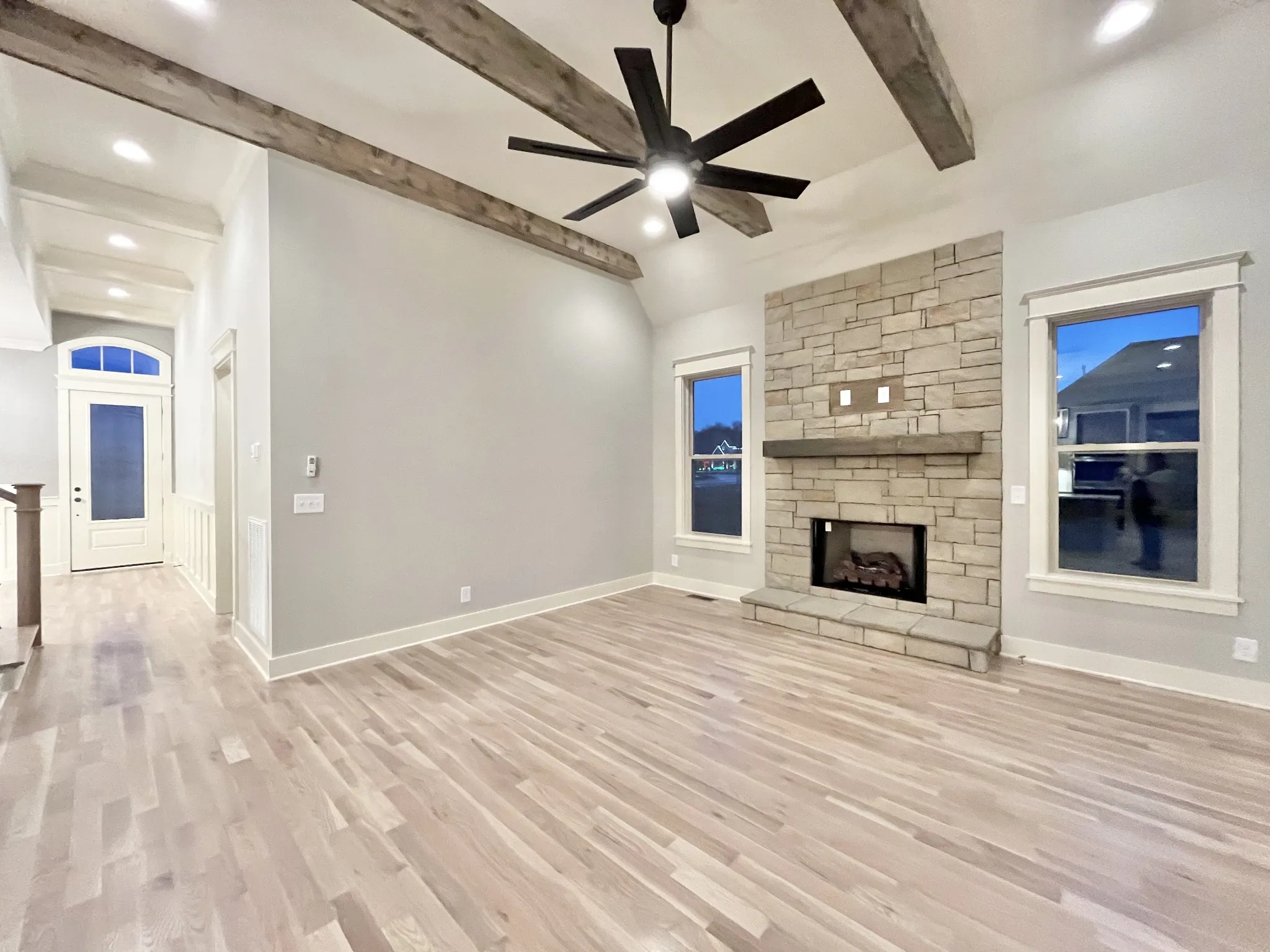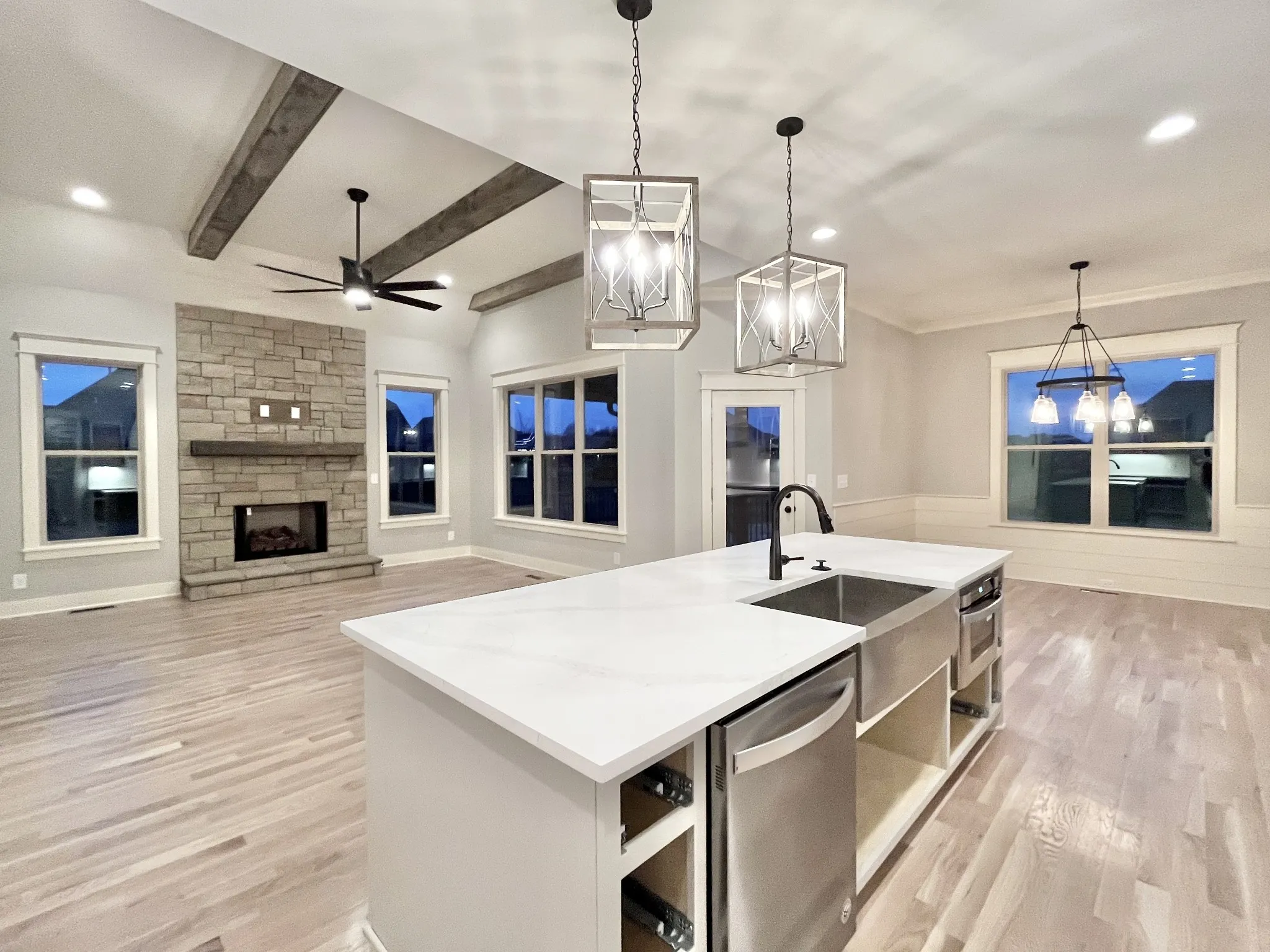 Peyton plan, Exceptional Quality by Eastland Construction, Great Rm w/ Gas Fireplace and Wood Beams, Primary BR on Main Level, Island Kit with Granite, Tile Backsplash, Under Cabinet Lighting, Formal Dining Rm, Primary Bath with Granite & Sep Tub and Shower, Hardwood Floors in Foyer, Dining, Kitchen, Great Rm, and Primary BR, Located on Great Cul-De-Sac-Lot, 30×20 Recreation Rm over 3 Car Garage with Separate Office, Preferred Lender Program for Interest Rate Buy down and/or Closing Cost available.