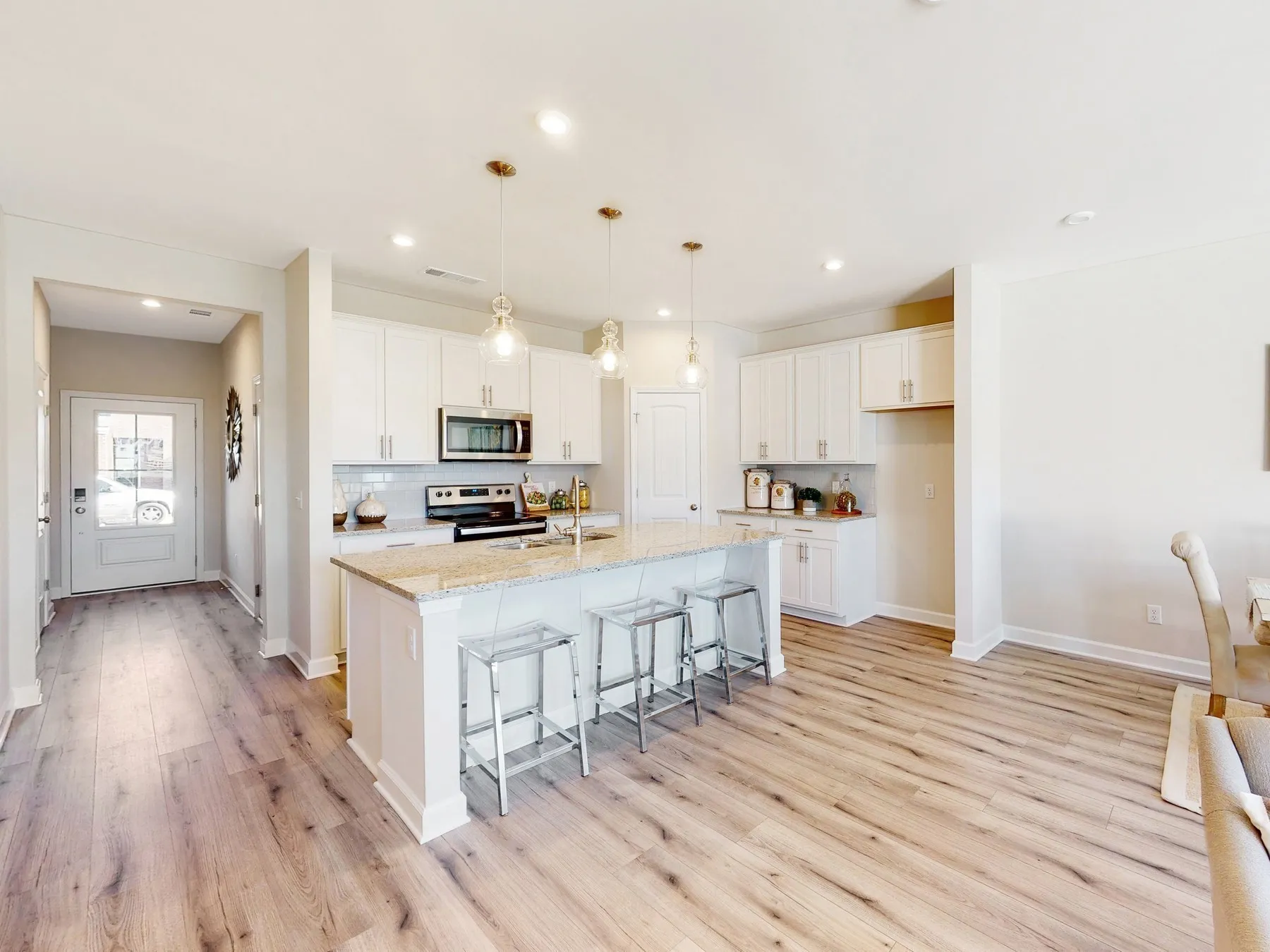FINAL OPPORTUNITIES- Don’t miss your chance to purchase a brand new townhome in River Oaks! This Radnor plan includes: wood-look laminate in the main living area, upgraded lighting and nickel fixtures. The kitchen includes white shaker style cabinets, granite countertops, tiled backsplash, stainless steel appliances and a walk-in pantry. The bathrooms and laundry room have tiled floors and dual sinks in both baths. Brick and Hardie board exterior with a 1 car garage nestled on a private tree lined homesite. This is a maintenance free community with the landscaping mowed and maintained by the HOA. Community also features a dog park and outdoor pavilion. Ask us how to receive up to $10,000 in closing costs with use of affiliate lender.