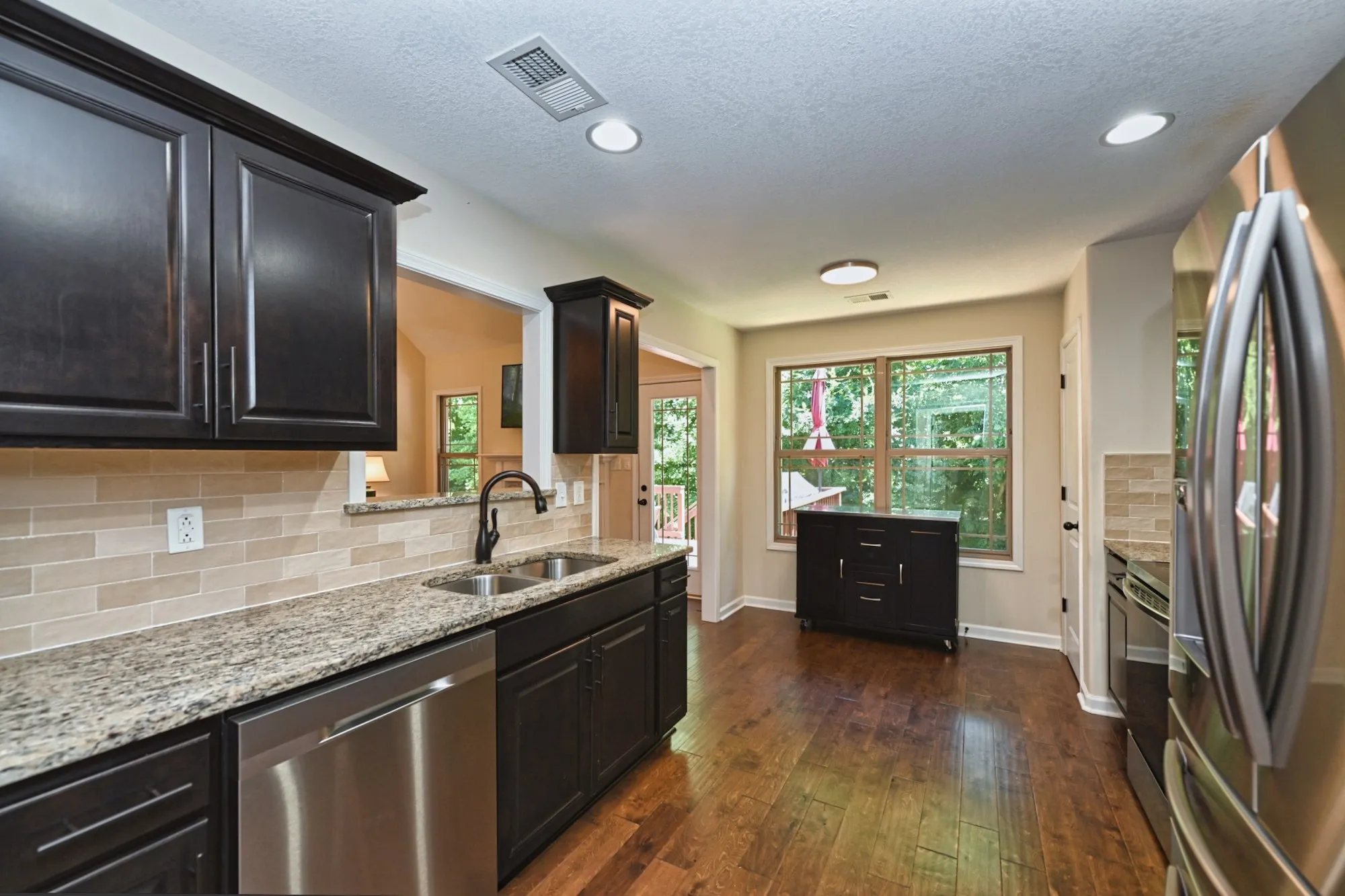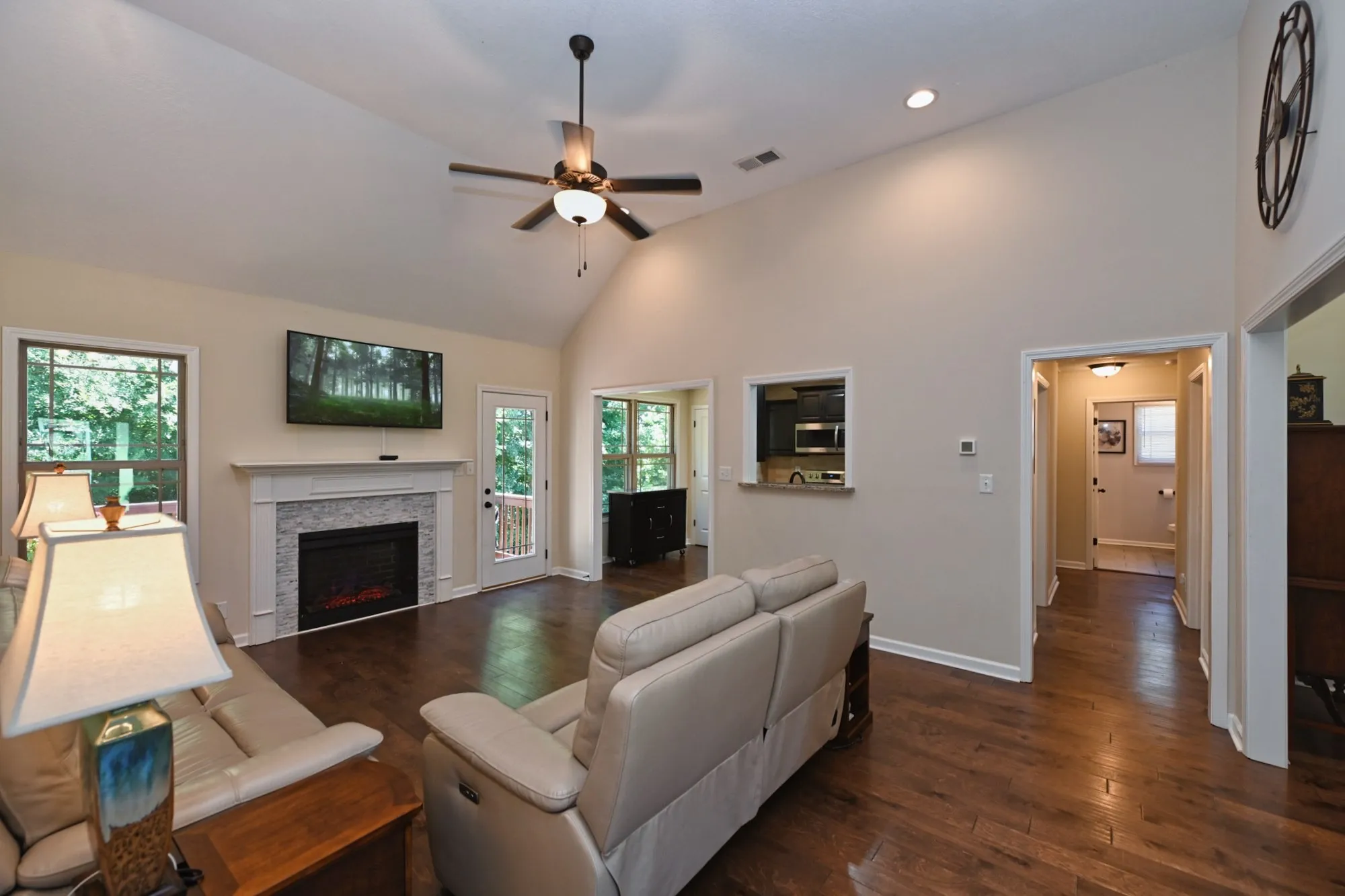 Park-Like back yard with nothing but trees & nature behind it. This home is truly spacious, featuring 4 Bedrooms & 2 Separate Living Spaces. It provides an Open Concept & Split Floor-Plan! The Primary Bedroom features Vaulted Ceilings, an En-Suite Bathroom with a Separate Soaking Tub & Shower, plus a Huge Walk-In Closet. Beautiful Hardwood Floors throughout the Main Living area & Primary Bedroom. The Kitchen features Stylish Granite, Back-splash & Newer Stainless Steel Appliances..plus a Large Pantry! New Plantation Shutters throughout! Separate Laundry Room with Cabinets. Full Finished Basement featuring a Large Bonus Area and a Huge 4th Bedroom. One of the few Basement homes around!! The Over-sized Garage is super clean. Best part is the breathtaking backyard. Fully Fenced, with Custom Fire Pit & Garden Area. All Appliances Stay, including Washer/Dryer! Seller offering 1 Year Warranty with Acceptable Offer.