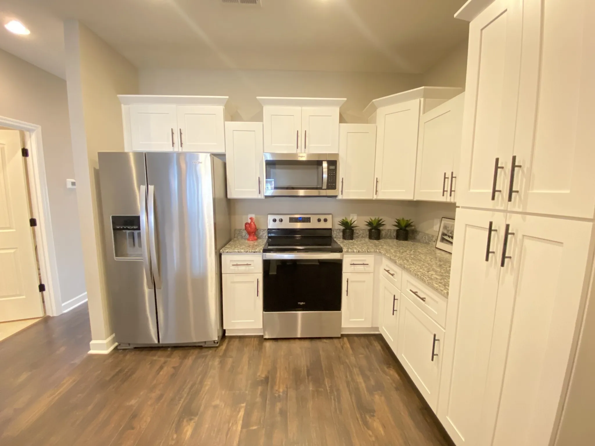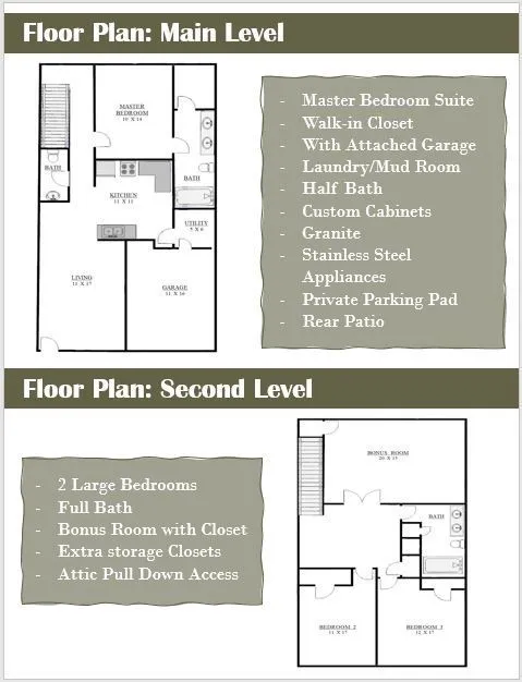 Impressively built townhome! This is an end unit. Master bedroom suite on the main level with open floor plan. 1 car attached garage with private driveway parking for 2 additional cars. Oversized bonus room and secondary bedrooms! Custom cabinets, granite, stainless steel appliances, hardwood, tile, and more! Community pool and clubhouse! Builder is currently offering closing costs paid and matching stainless steel refrigerator! Act now for this builder incentive!