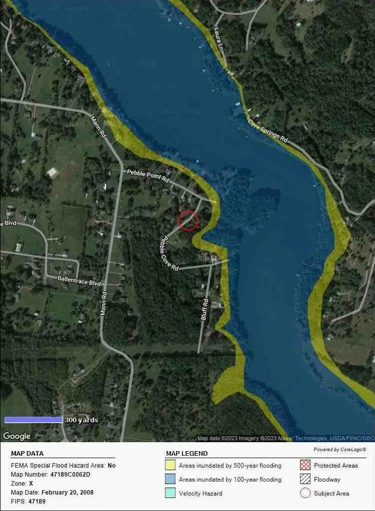 Large residential lot, near water, above 500 year flood plain (to be confirmed by buyer)