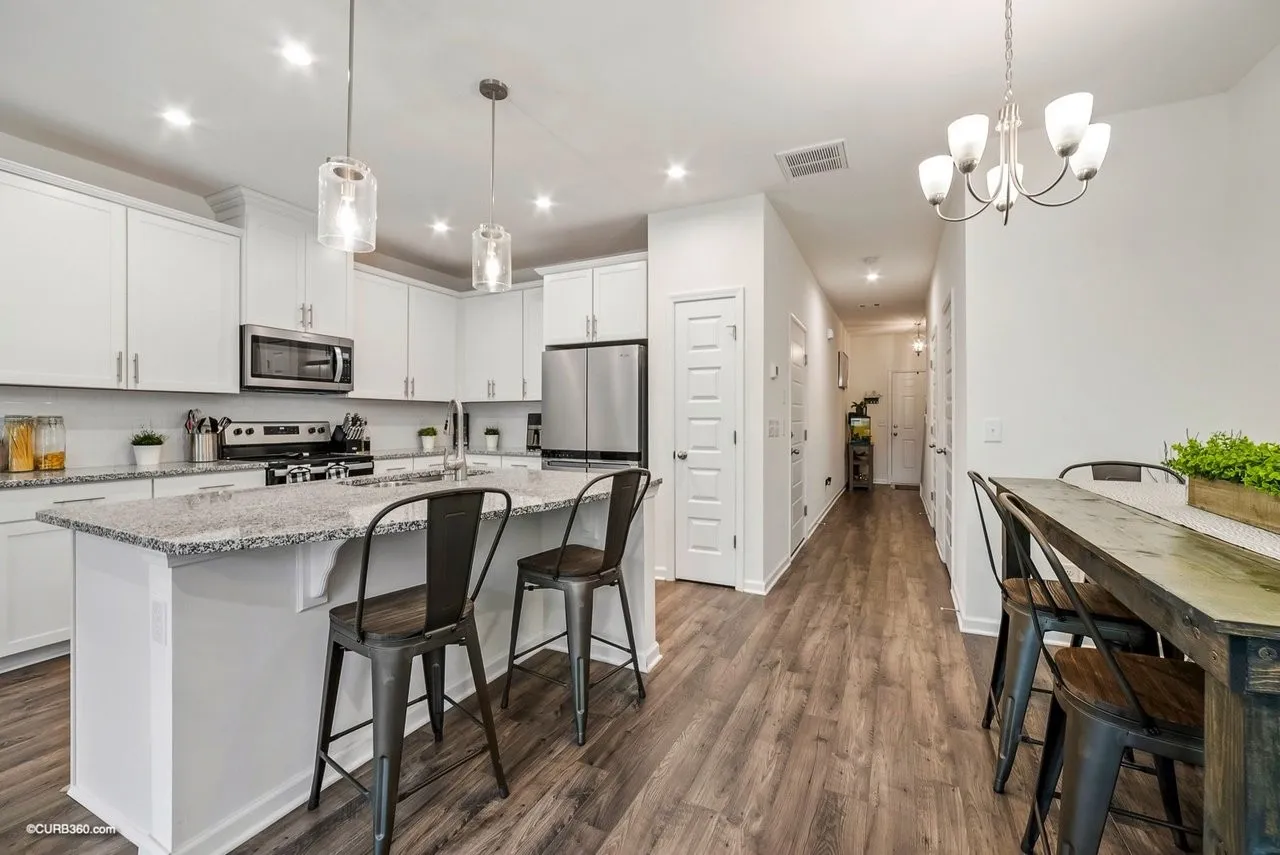 This stunning one-year-old townhome boasts a prime location at the intersection of Hwy 109 and I-40 that is ideal for families and working professionals. Located just 7 miles from Perimeter Mall, everything you need is right at you fingertips. Just 19 miles away from BNA makes it perfect for those who frequently travel to and from Nashville. Inside the townhome you will find an open concept living, dining, and kitchen area. Stainless steel appliances, granite counertops, and a tile backsplash are found in the kitchen. Upstairs, there are three bedrooms with plush carpeting and ceiling fans. The master bedroom has an ensuite bathroom with a walk-in shower and double vanity, while the other 2 sizeable bedrooms share a bathroom in the hallway.