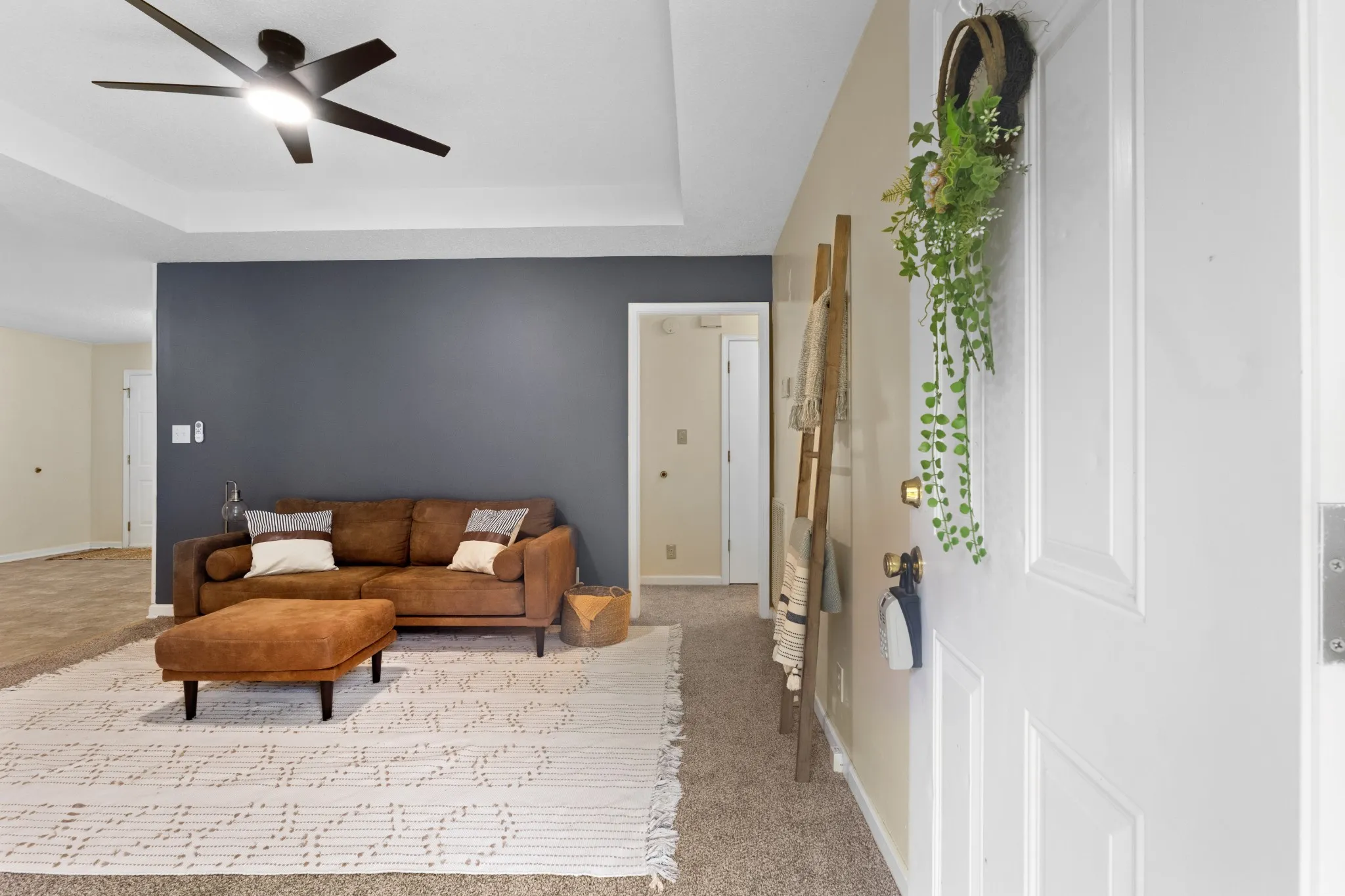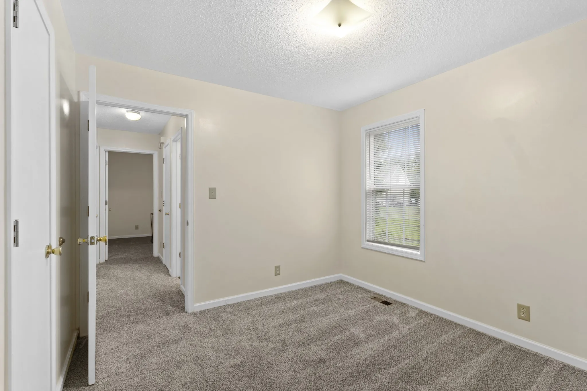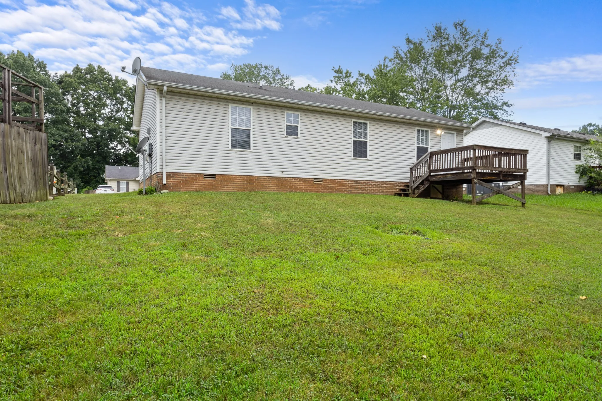 This charming 3 bedroom + 2 bathroom house is ready for you to make it a home! Brand new carpet throughout. Conveniently located near shopping, dining, and Downtown Clarksville! When entering through the front door you’ll see the spacious living room area with unique shelving opening to the kitchen. Perfect for plants and books! The eat in kitchen is a great size and opens up to the back deck. Primary bedroom has dual closets with a freshly painted bathroom and new shower insert/tub. This home is the perfect blank slate for adding your own personal touch!