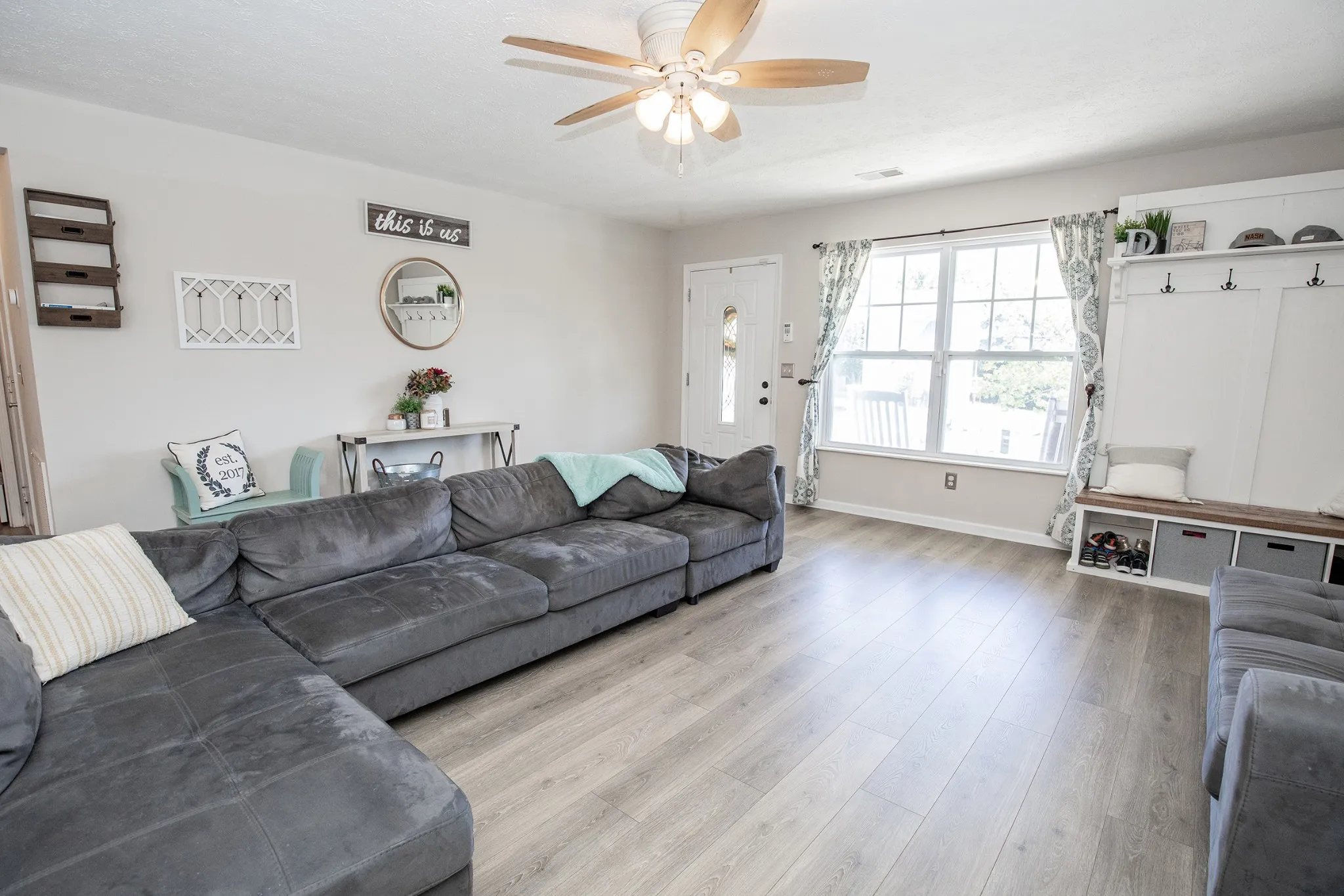 Unbelievable home in a great subdivision with pools, tennis courts, pickle ball, wide streets for walking and kids. This home is deceptively large. 5 bedrooms that are all large, with the master on main. Great flex space upstairs for a home office and a home theater. New floors and cabinets installed to create the open farm house style with the living area open to the kitchen area. Newer light fixtures installed. Gas ventless fireplace in the living area for those cool fall nights. Plenty of storage in all of the walk-in closets. The fenced-in backyard with mature trees provides a great space for pets, children, or a grilling area. Roof was replaced 3 years ago. This home truly has it all!