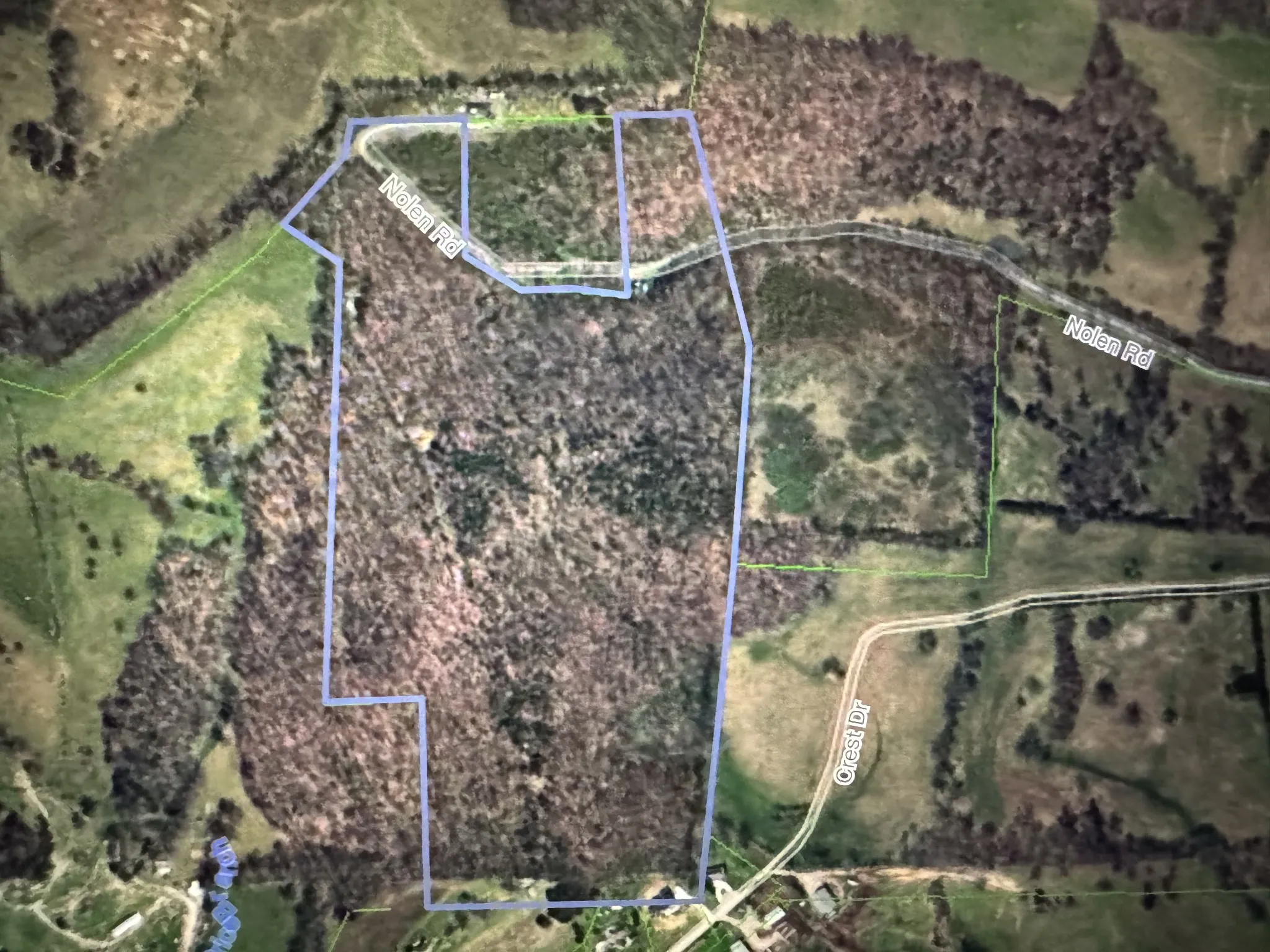 Beautiful and private 60 +/- acres. This farm has been loved by the family for many years and has a unique history. Approx. 1500 sqft of Road Frontage on Nolen Rd. Sellers believe it could be part of the Green Woods once owned by a famous resident from the 1800’s and currently working to verify the story. Contact listing agent for more history, questions, or to see the last survey information.