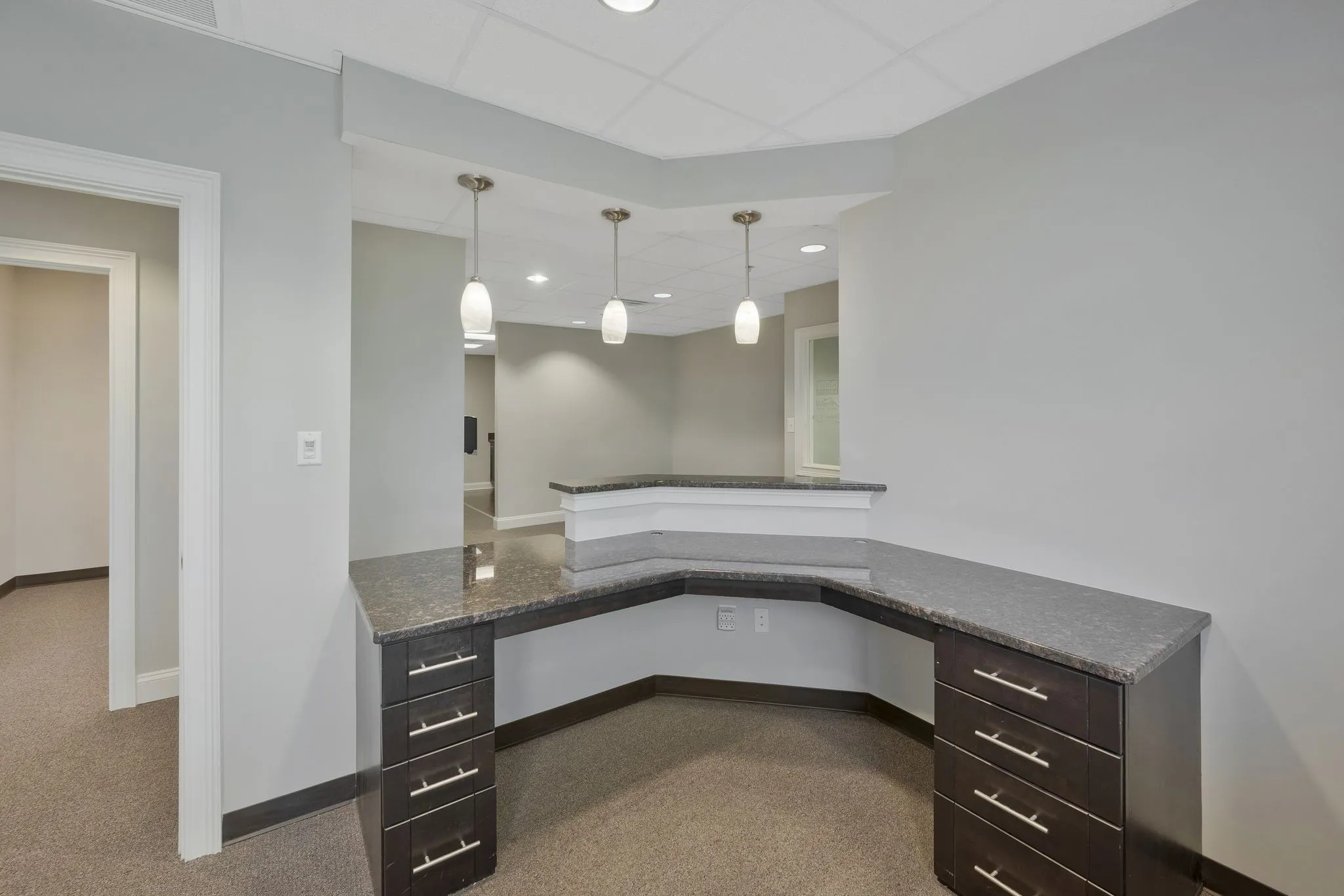 Freshly painted and ready for a new tenant! This office would be a great for a real estate firm or any sales type business. The Foster building is less than a mile from I-40, in the hub of Mt. Juliet’s commercial activity. This 2300 sf suite has a large open work space, 8 private offices, storage, kitchenette, and conference room. Monthly rent includes water & electricity. Three year lease preferred.