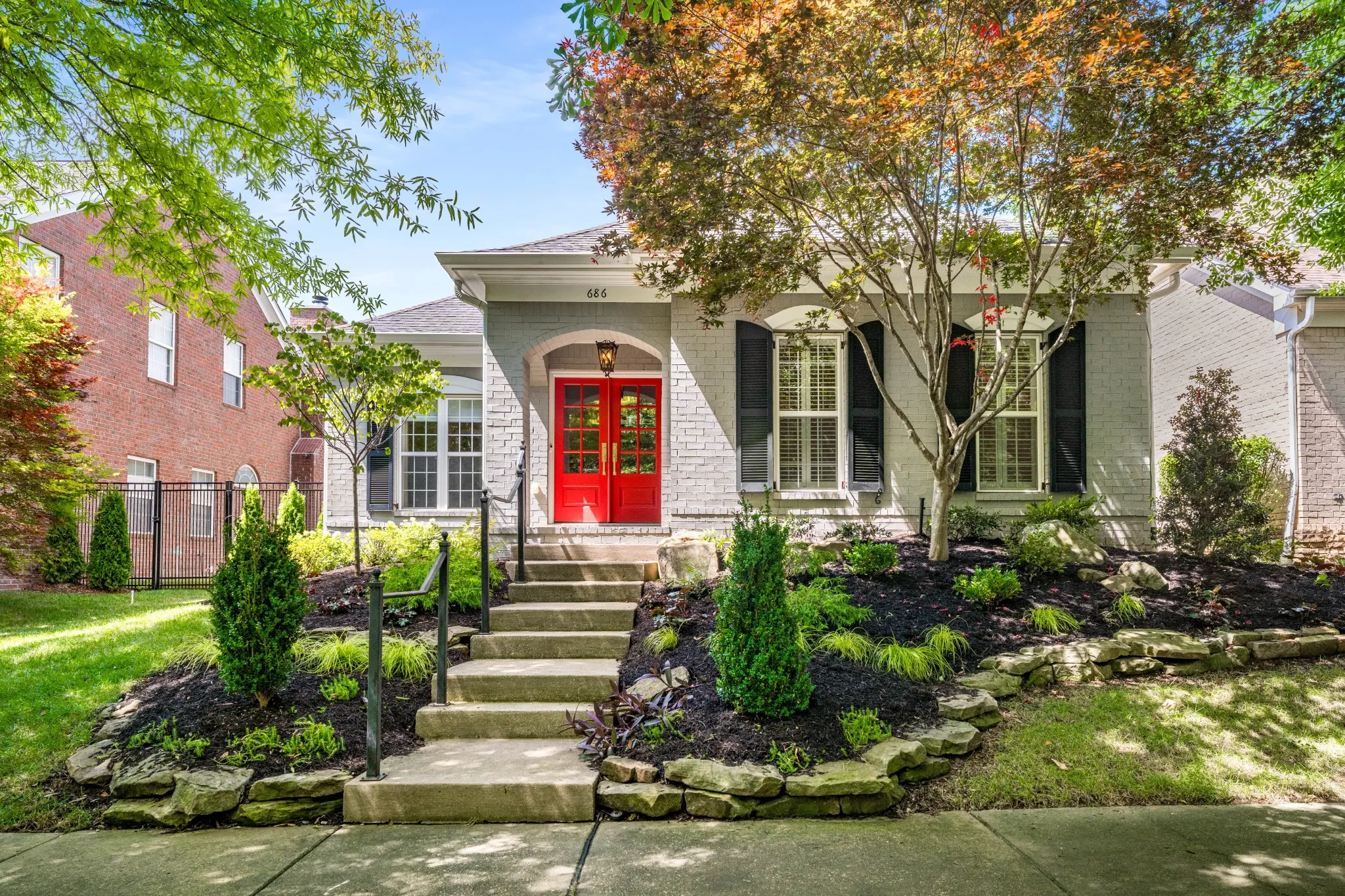 Lovely cottage in Ashton Park is in a Quiet gated community. Home faces a serene area of common green space with a creek. All rooms are on the main level, 3rd bedroom can be an office or den with a bathroom that serves these rooms. Quality finishes throughout with hdwd, tile, crown moulding. The arched doorways add architectural character, The butler’s pantry and prep island in the kitchen add additional space for food prep and serving. Sit at the breakfast bar or eat at a table in the breakfast nook. The kitchen opens to the living room for ease of entertaining. The covered back porch and a lovely private courtyard is an extension of the living space for outdoor entertainment. The 2 car garage has attic storage. Professionally landscaped with irrigation and landscape lighting. HVAC is new in 2023. Conveniently located in Cool Springs area with easy access to I-65, shopping, restaurants and anything you’d like to do. Grounds maint. incl all lawn and shrubs outside the courtyard.