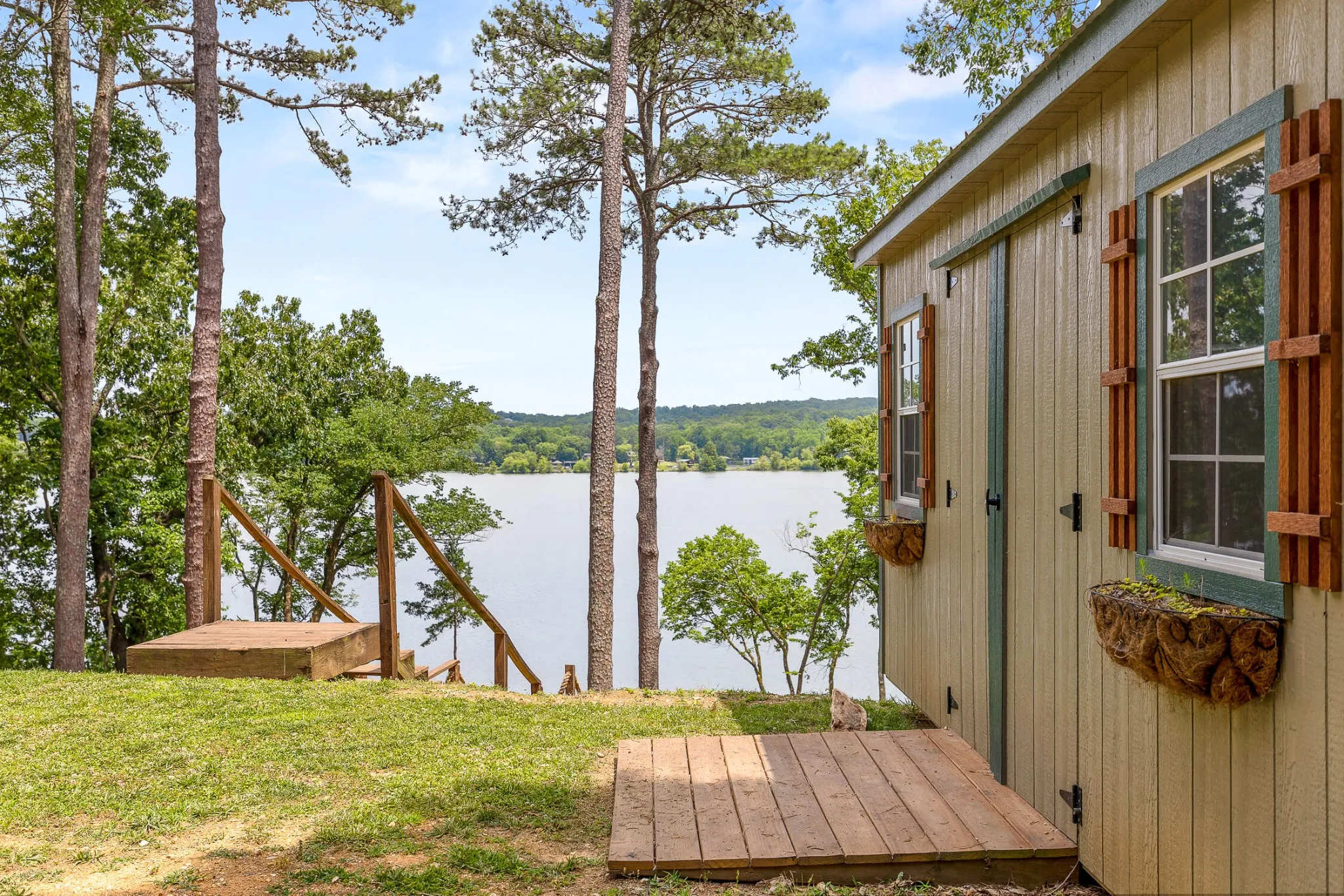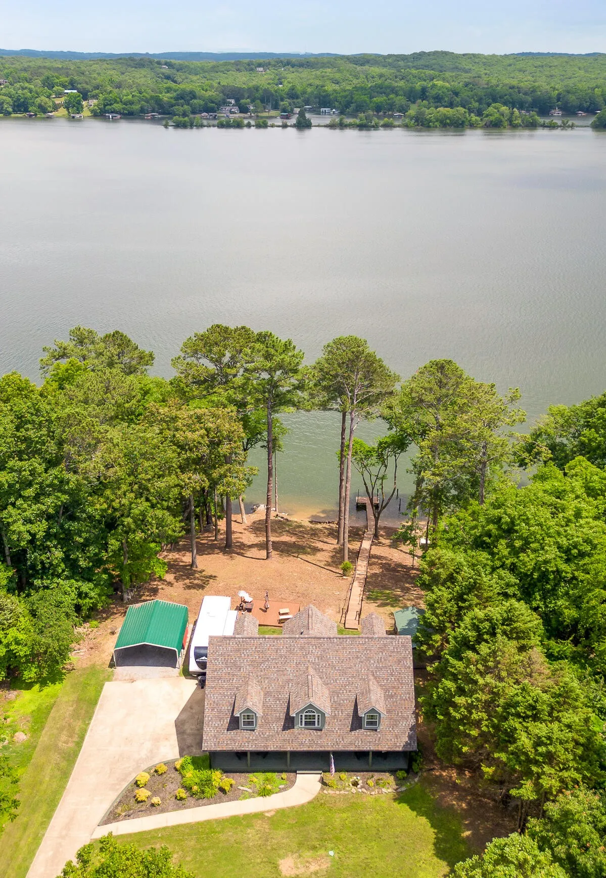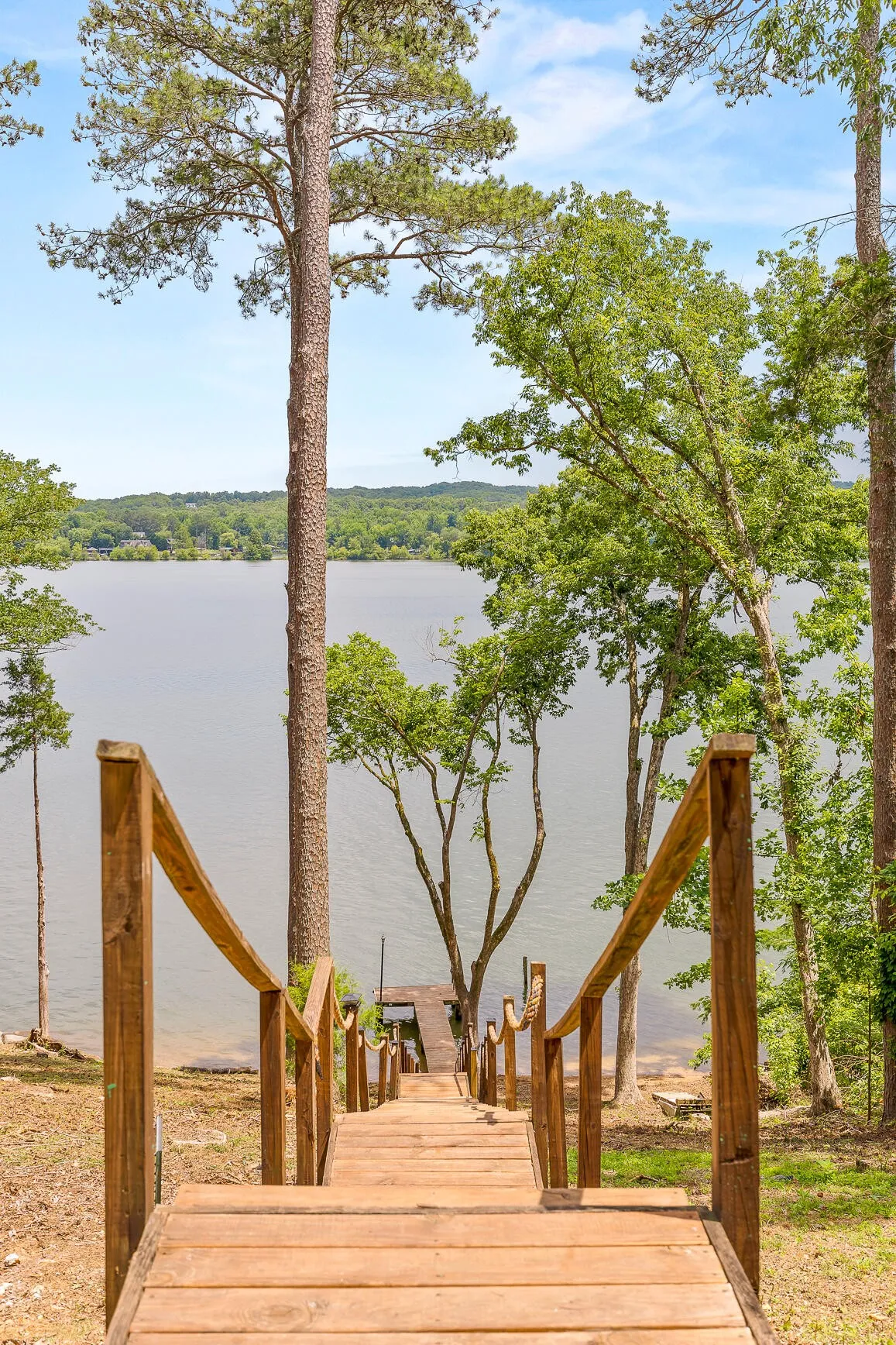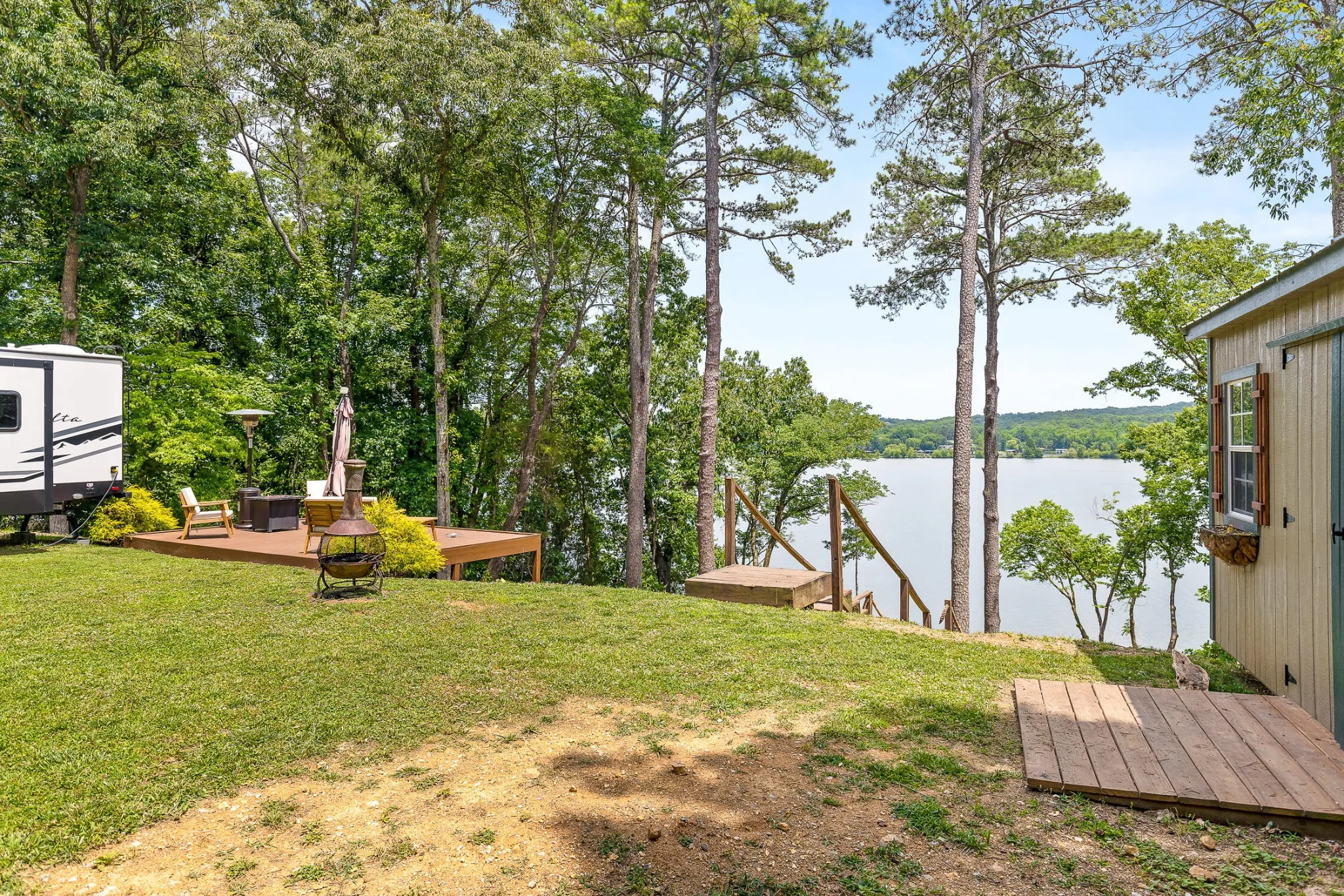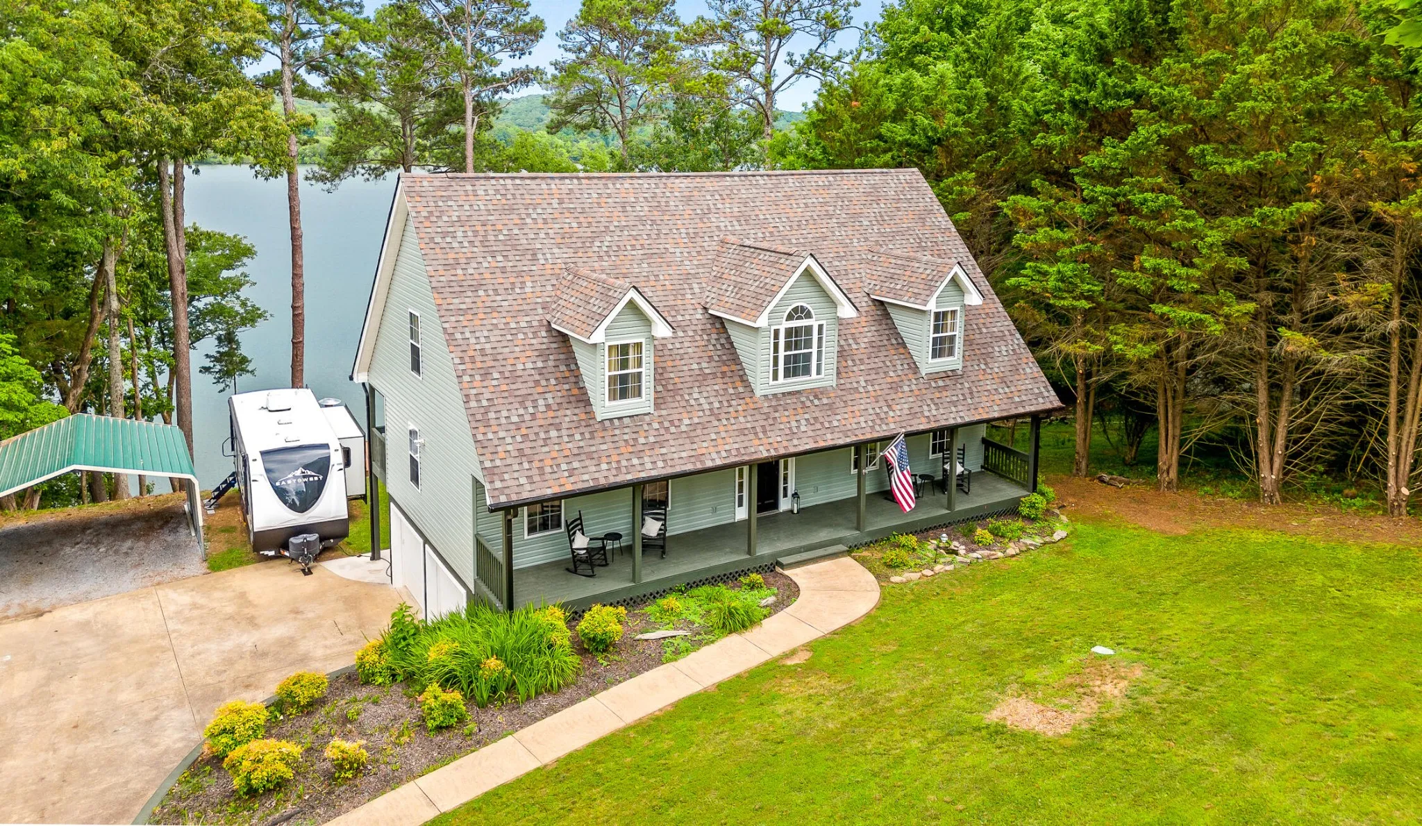 Welcome home to your newly renovated Chickamauga Lake paradise with unobstructed waterfront views! This waterfront oasis sits back off the road to allow for plenty of privacy on your one acre of land. Not only do you have the breathtaking water view to sit and enjoy the sunset from your back deck , you also have ONLY COUNTY TAXES and an abundance of wildlife, including three eagles who have a nearby nest!! As you are walking down the stairs to your private dock you will be in awe of the beachfront space created between the land and the water! Imagine your hammock set up between the trees with plenty of room for kids play space and even a firepit lounge area just next to the water. This property is breathtaking!! Exterior and interior renovations include: interior and exterior paint throughout, all new LED lighting throughout, new Tamco 30 year Mtn Slate Architectural shingle roof, beautiful wainscoting and interior trim added throughout, new granite countertops, new backsplash added to kitchen, new hardware, new carpet added to master bedroom and upstairs rooms, hot water heater on demand, both HVAC units were just reconditioned, and new landscaping. In addition to all the home has to offer, the carport is set up with electric and water connections for an RV (no current waste connection). Home has been furnished and set up as a nightly rental and would also make a great corporate or short term rental. Furniture is available for additional purchase. Zoning will also allow for one additional structure on the land if buyer was interested in adding an ADU or mother-in-law suite, potential for Barndominium for additional living space and to keep all your toys in!