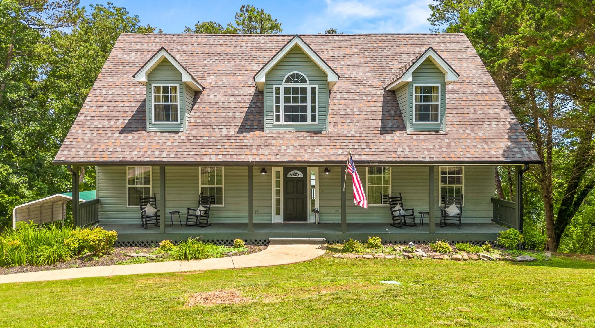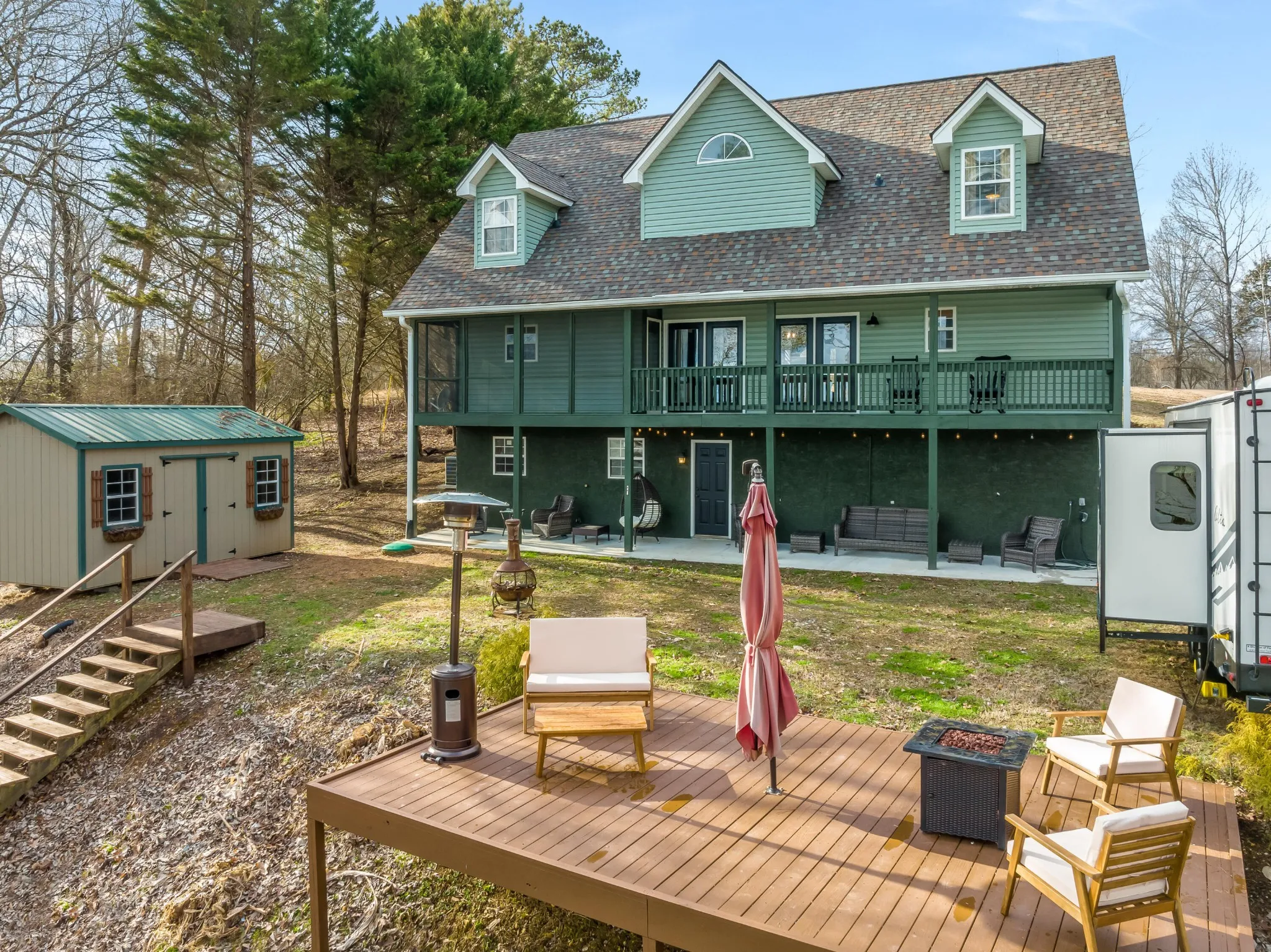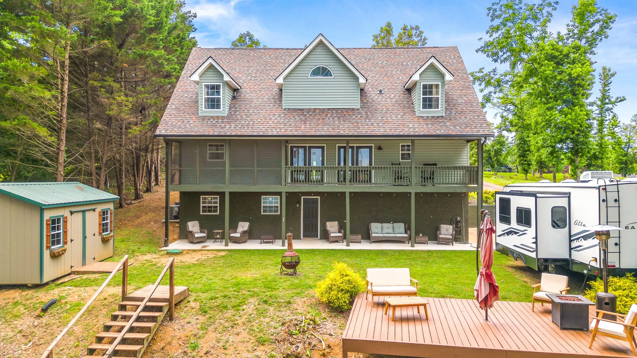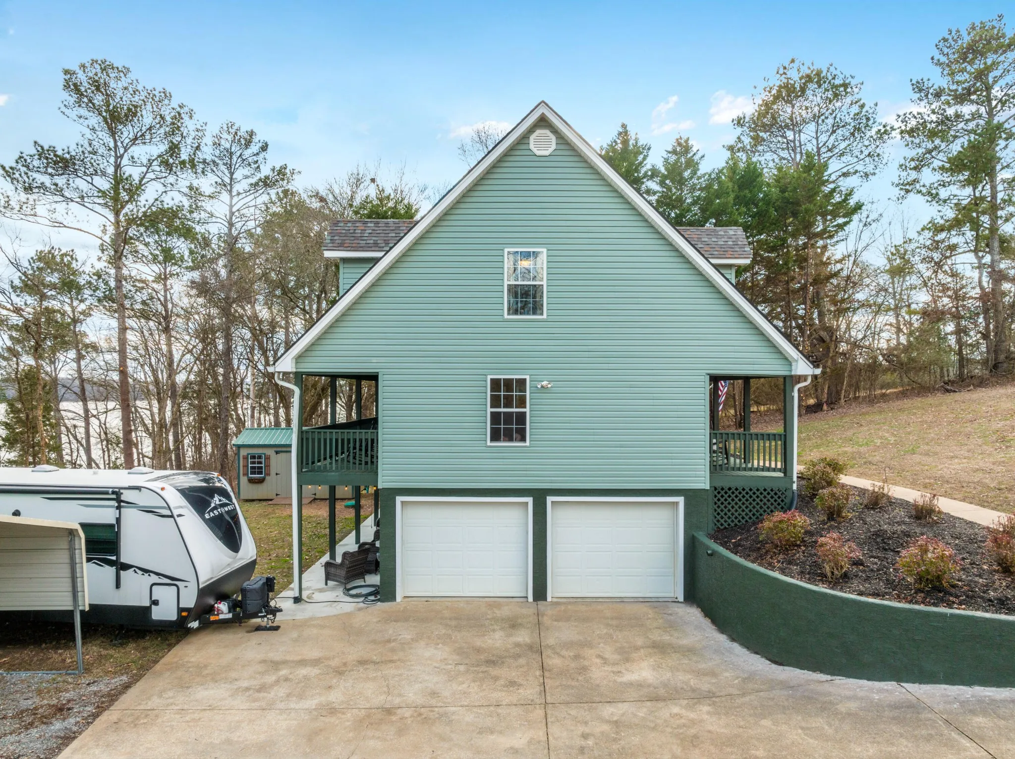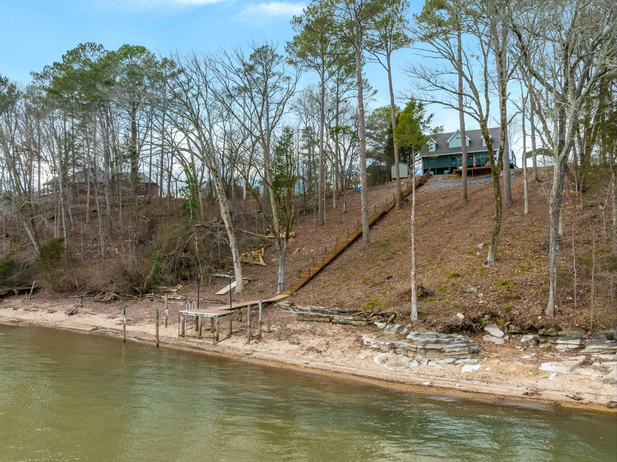 Welcome home to your newly renovated Chickamauga Lake paradise with unobstructed waterfront views! This waterfront oasis sits back off the road to allow for plenty of privacy on your one acre of land. Not only do you have the breathtaking water view to sit and enjoy the sunset from your back deck , you also have ONLY COUNTY TAXES and an abundance of wildlife, including three eagles who have a nearby nest!! As you are walking down the stairs to your private dock you will be in awe of the beachfront space created between the land and the water! Imagine your hammock set up between the trees with plenty of room for kids play space and even a firepit lounge area just next to the water. This property is breathtaking!! Exterior and interior renovations include: interior and exterior paint throughout, all new LED lighting throughout, new Tamco 30 year Mtn Slate Architectural shingle roof, beautiful wainscoting and interior trim added throughout, new granite countertops, new backsplash added to kitchen, new hardware, new carpet added to master bedroom and upstairs rooms, hot water heater on demand, both HVAC units were just reconditioned, and new landscaping. In addition to all the home has to offer, the carport is set up with electric and water connections for an RV (no current waste connection). Home has been furnished and set up as a nightly rental and would also make a great corporate or short term rental. Furniture is available for additional purchase. Zoning will also allow for one additional structure on the land if buyer was interested in adding an ADU or mother-in-law suite, potential for Barndominium for additional living space and to keep all your toys in!