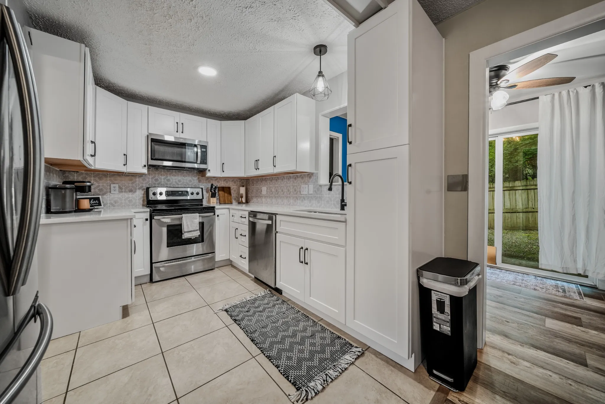 This stunning end unit townhouse is sure to steal your heart with its modern charm and irresistible features. 2 bedrooms and 1.5 bathrooms, this gem is perfect for those seeking a cozy yet stylish abode. Beautiful laminate hardwood floors that adorn the spacious living room, a fireplace that creates a warm and inviting atmosphere. The heart of this home is the beautifully updated kitchen, featuring new stainless steel appliances, brand new shaker cabinets, stunning quartz countertops with a mesmerizing backsplash, new sink, new faucet, and a new garbage disposal. Brand new roof less than a month old!! Step outside to a fully fenced-in backyard with a nice size patio, making your outdoor oasis a reality. Location is everything, and this home has it all. Situated in a desirable neighborhood, you’ll find yourself just moments away from shopping, dining, entertainment options and major highways. Don’t miss your chance to make this captivating townhouse your own!