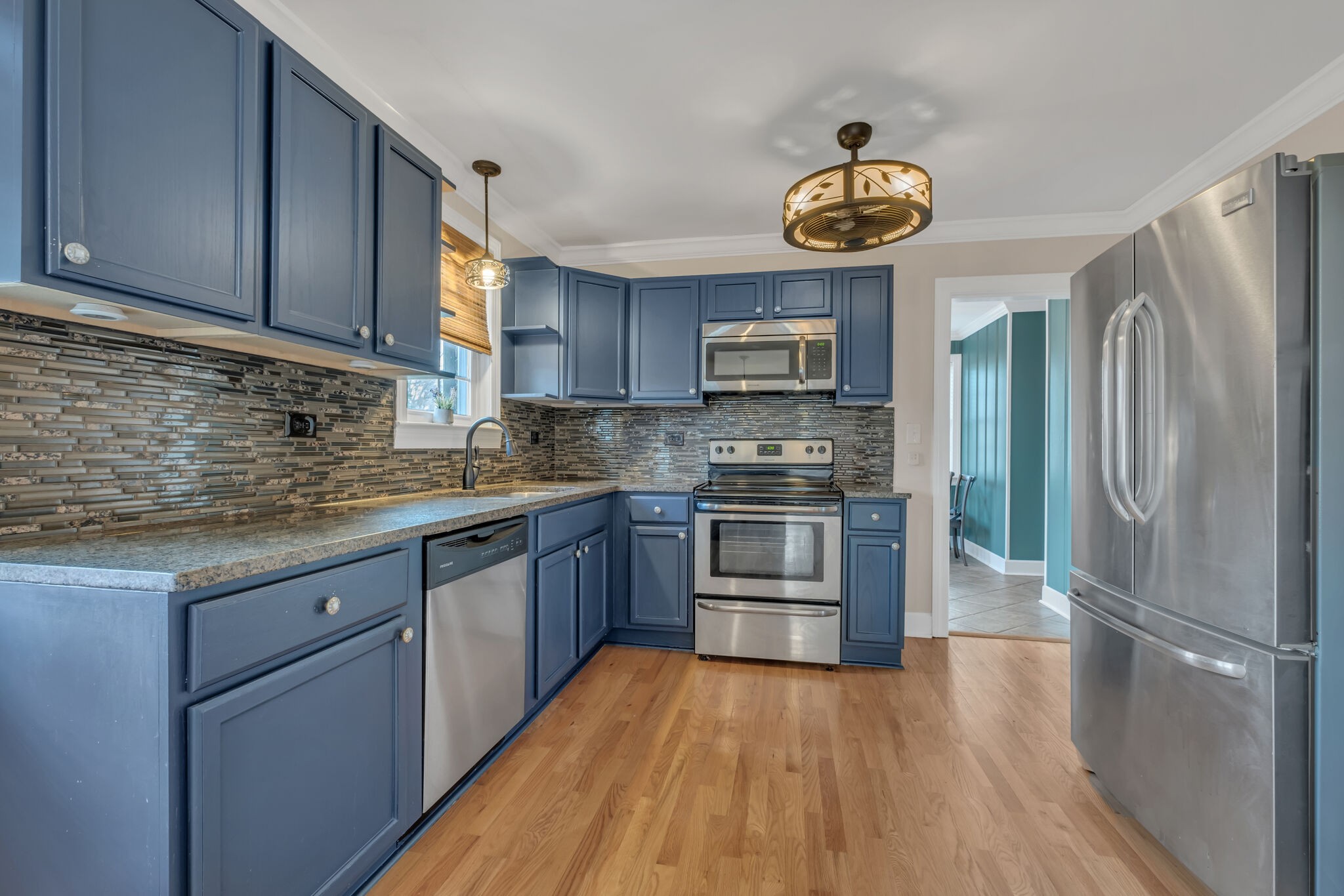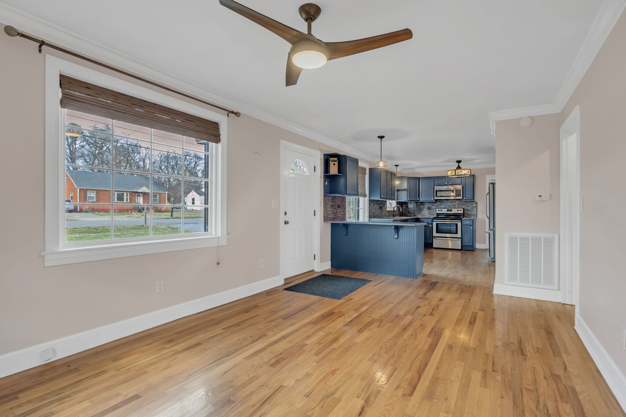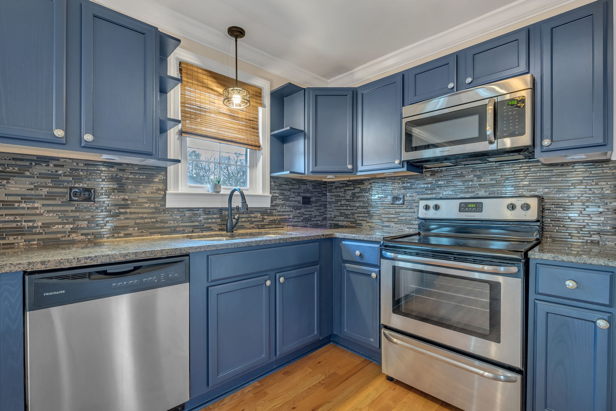 Brick ranch in convenient location in “Hip Donelson”! Easy access to interstate, airport, shopping and restaurants. Spacious living room with original hardwood flooring and neutral paint color open to kitchen. Kitchen is updated with granite countertops, tile backsplash and stainless appliances. Separate dining room, laundry room with storage and zoned bedrooms. 2 bedrooms and 1 full bath on the right side of the home with 1 bedroom and full bath on the left side of the home. Level lot with fenced in backyard.