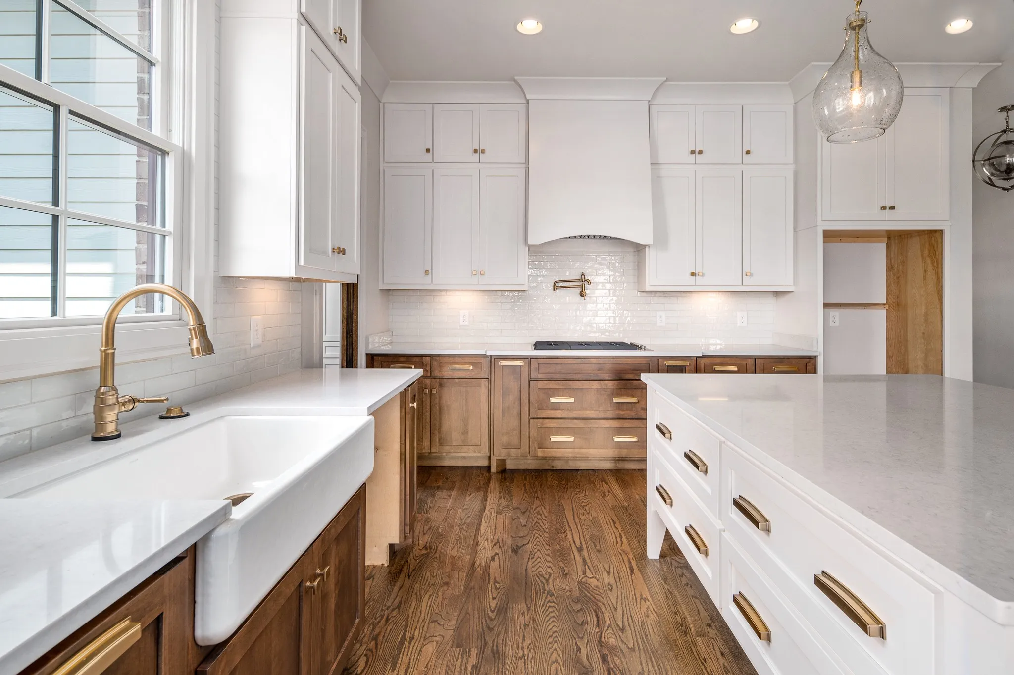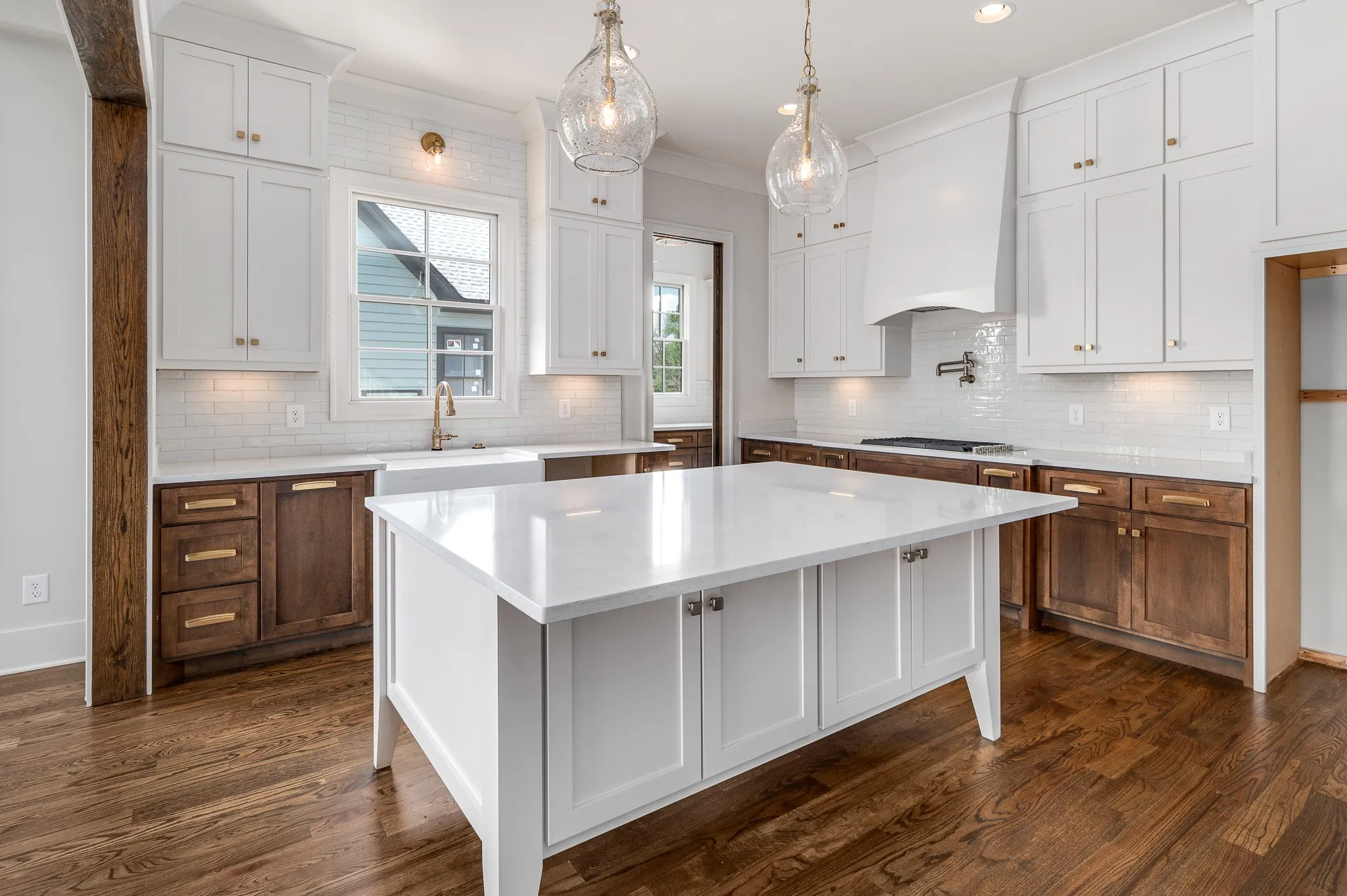 Beautifully crafted home inspired from an Old European Cottage. This home has been designed to bring the feel and charm of a historic home with modern finishes. 10’ ceilings on the main level, tall 8’ doorways. Oak floors entire first floor, oak steps and handrail. Architectural & designer details throughout. Custom built cabinetry coupled with elegant quartz countertops in kitchen and all bathrooms. Natural light abounds throughout the home. Large slider panel doors leads out to a covered vaulted ceiling porch with masonry wood burning fireplace. Jenn Air Appliances. Homesite fully sodded with fescue grass and full yard irrigated, entire perimeter of home professionally landscaped.