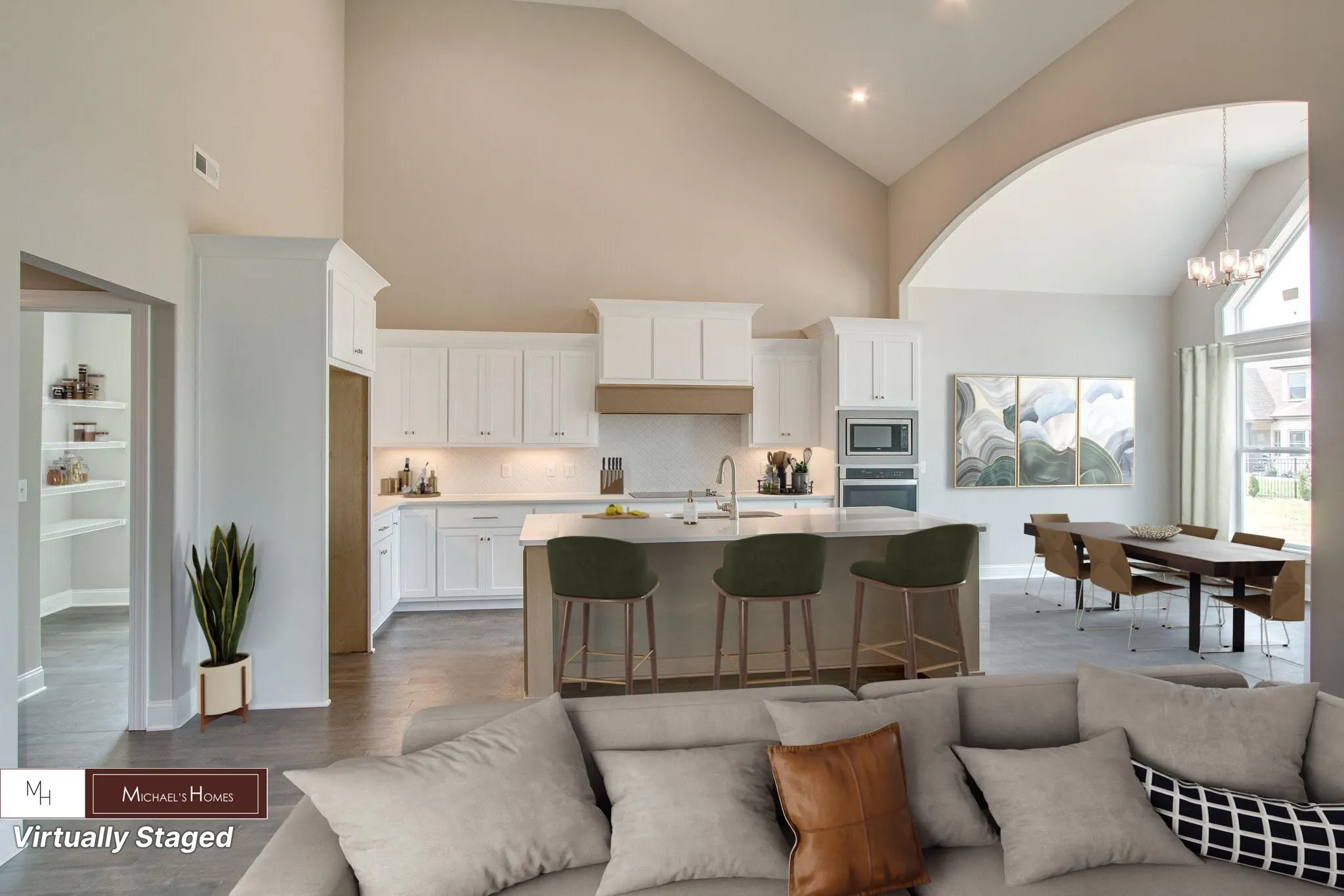 The Miller Plan home, a true masterpiece that features everything you could ever want in a home. With 5 bedrooms and 4 baths, this home has plenty of space for everyone in your family, as well as guests. The nice-sized bonus room is perfect for relaxing, watching movies, or spending quality time with loved ones. As you enter this home, you’ll be greeted by vaulted ceilings that create a bright and airy atmosphere. The arch entry to the dining area adds to the spacious feel of the home and makes it perfect for entertaining guests. The open railing from the bonus room looking down at the great room is sure to catch your guests’ attention and create a stunning focal point. Additionally, the rounded corners and trim are just a few examples of the attention to detail that went into the design