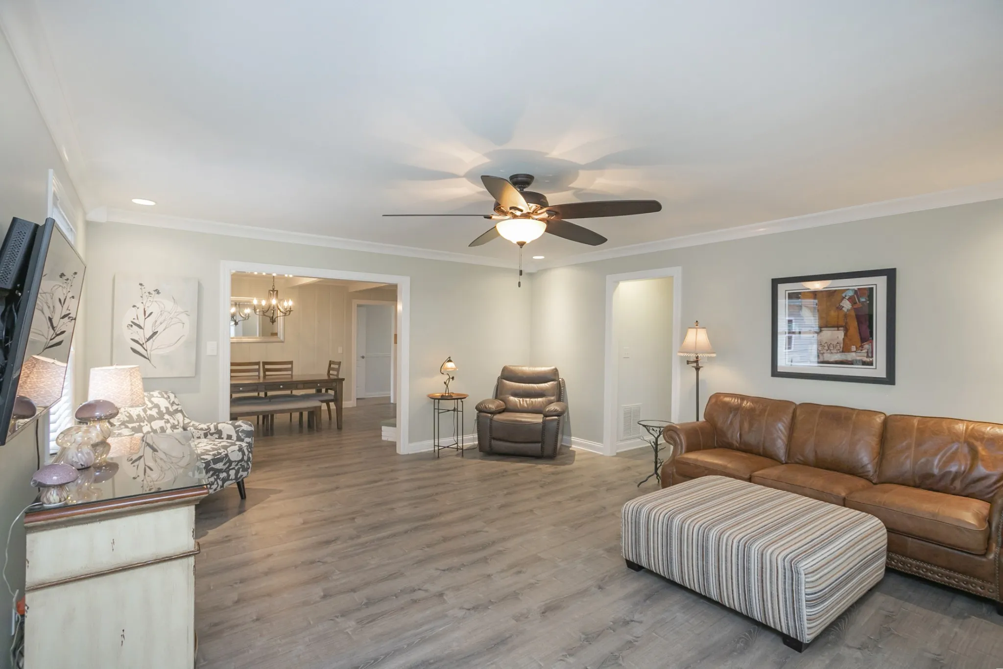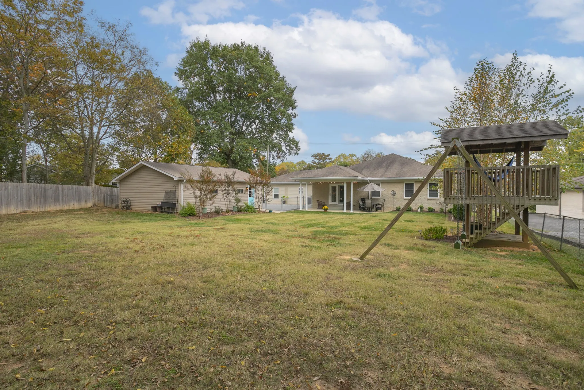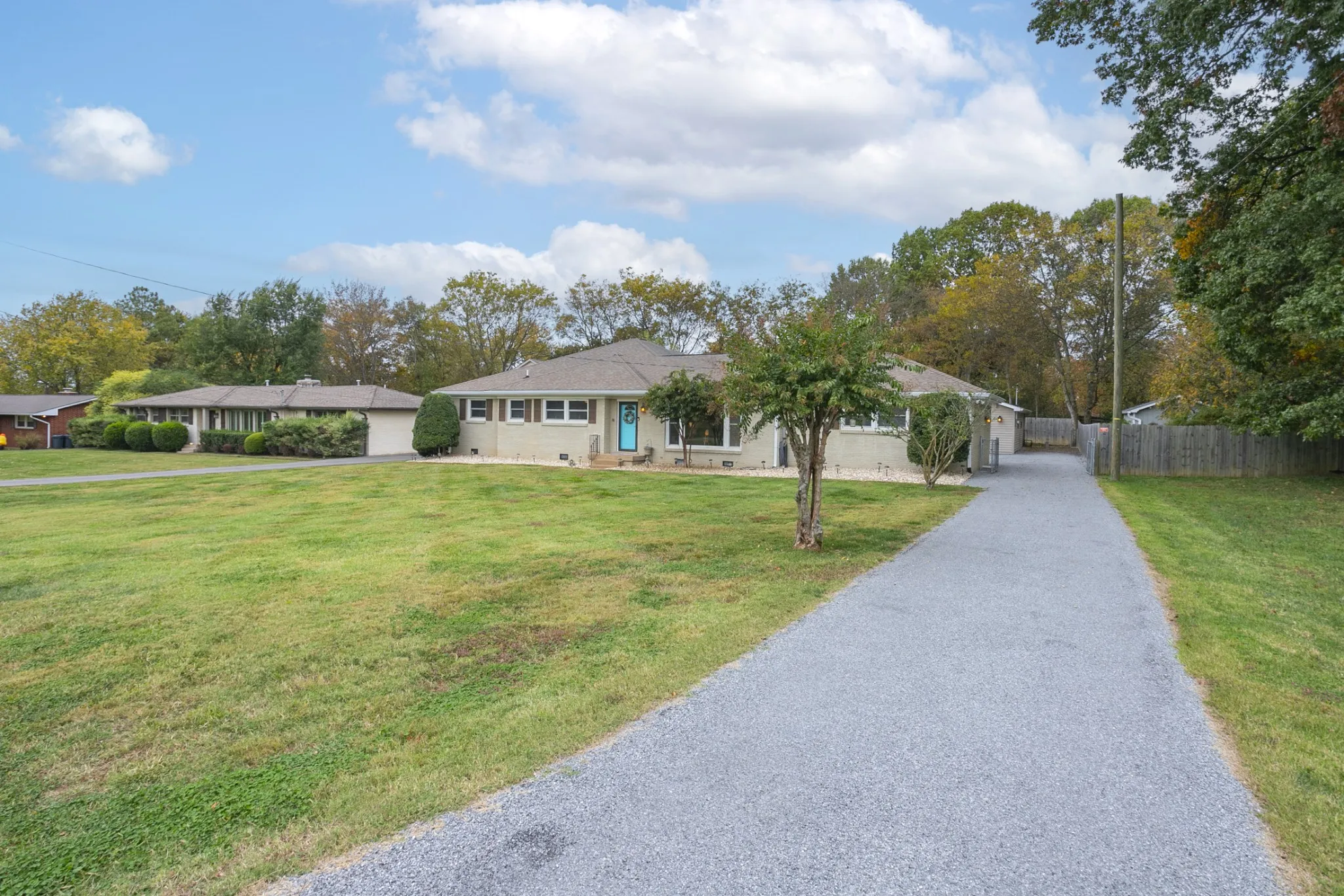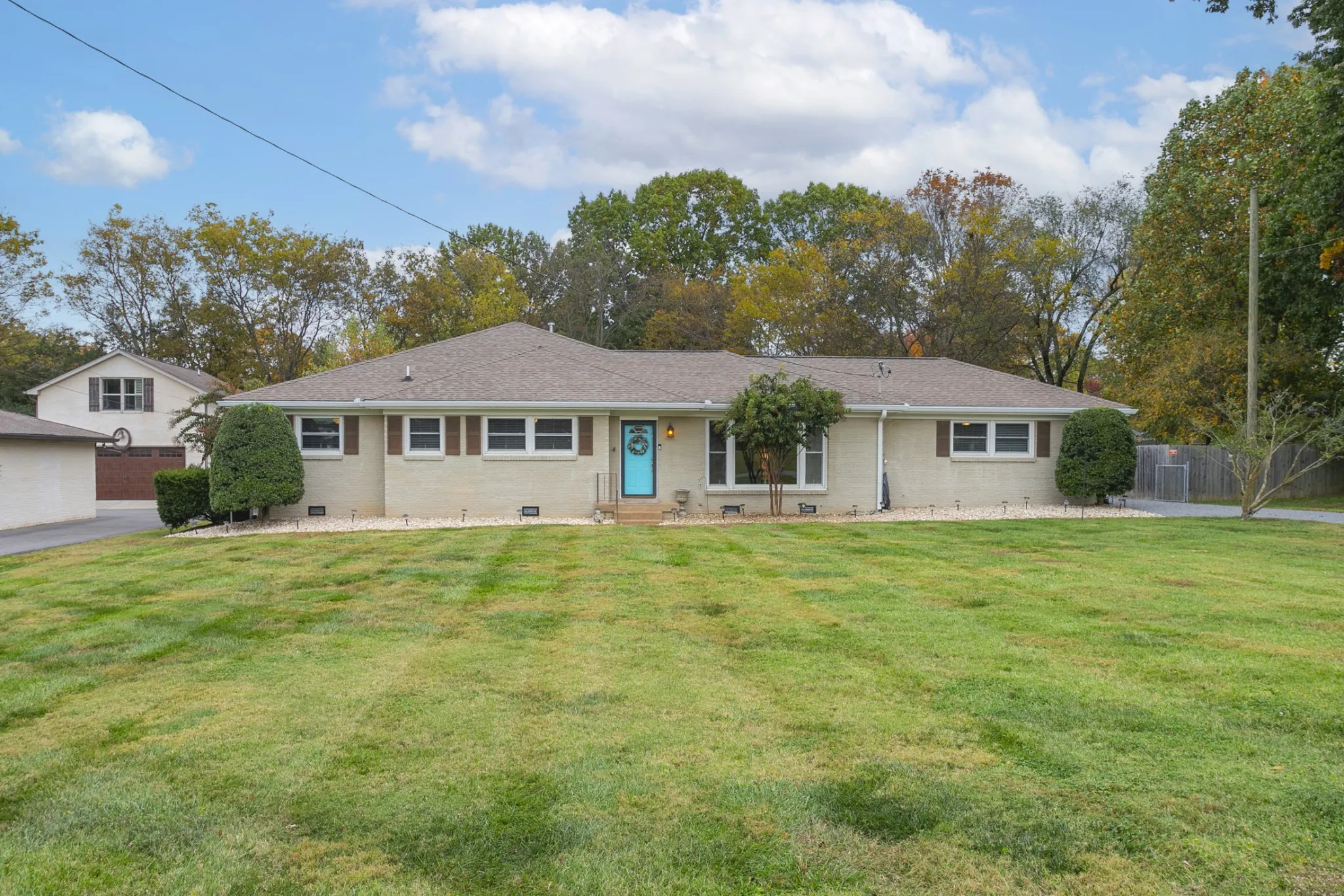 Open House this Sunday from 2-4pm! Step inside this tastefully updated and well-maintained one-level all brick ranch home conveniently located on the Indian Lake peninsula in Hendersonville! This 4 bedroom, 2 full bath/ 2 half bath home features a versatile and open living/ dining kitchen floorplan with updates around every corner. Its updated kitchen has butcher block countertops, subway tile backsplash and stainless appliances. Primary suite has vaulted ceilings, 2 walk in closets and large walk-in shower. Former attached garage converted into secondary living room/ bed/ bath perfect for in-law quarters! Freshly redone driveway and landscaping. Gas fireplace in the dining room. Detached oversized garage with separate meter. Covered back porch and oversized fenced-in backyard is perfect for kids and entertaining guests. Brand new vinyl flooring throughout. HVAC is only 2 years old. New electrical panel and updated wiring. Washer/ Dryer remain. Don’t miss this great price!
