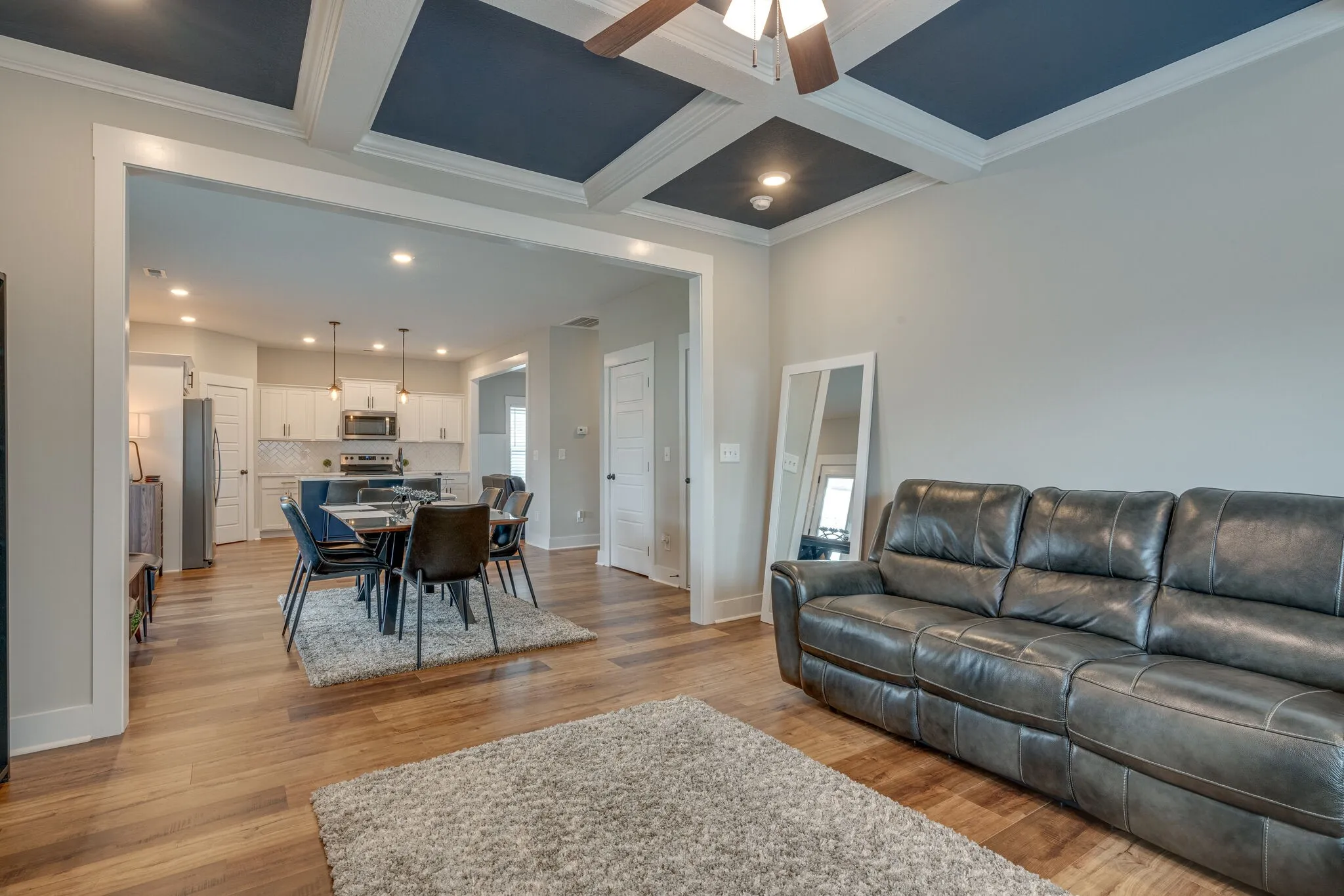 *COMPLETELY MOVE-IN READY*Custom Coffered Ceilings in Dining Room, Living Room, & Primary Bedroom*On Trend Shiplap Fireplace Surround*Dreamy Kitchen*Subway Tile Backsplash*Kitchen Island with Sink & Seating for Two*Huge Pantry*Stainless Steel Appliances*Doggie Den Under Stairs*Massive Two Car Garage*All Bedrooms Upstairs*Enormous Primary Suite*Walk-In Closet*Custom Tile Shower & Soaker Tub in Primary Bath*Faux Wood Blinds Throughout*Double Vanities in 2nd Full Bath*Laundry Room Upstairs*Covered Front Porch & Rear Patio with Fan*Vinyl Backyard Fence*Community Sidewalks*Trash Pickup*100% Financing Available*Closing Cost Assistance Available Thru Preferred Lender*