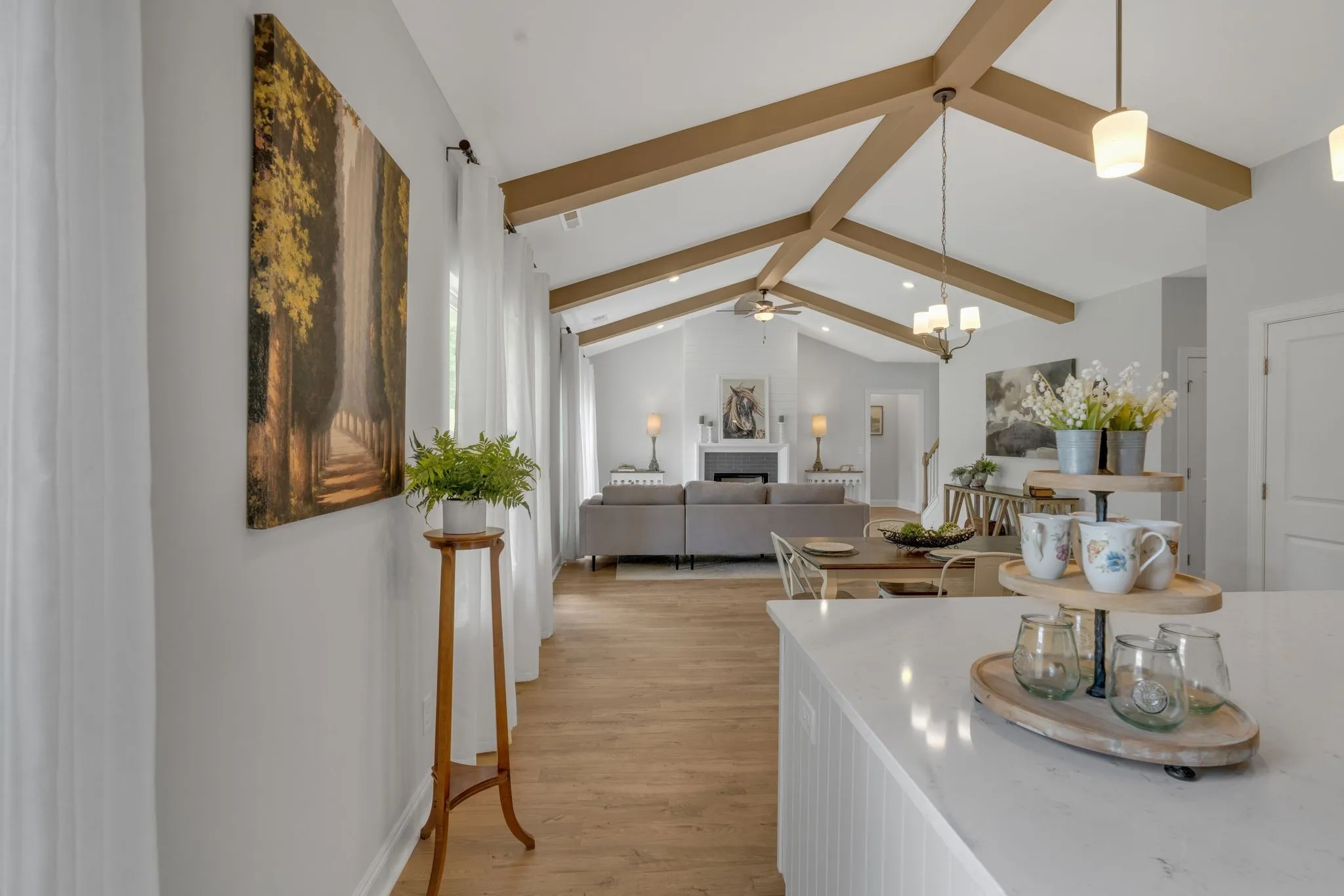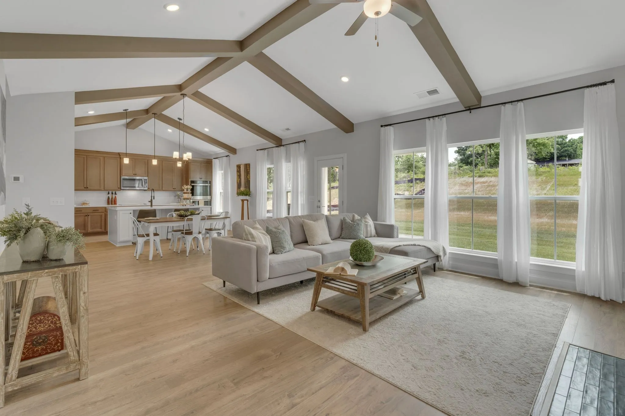 This stunning home is brand new and currently serving as our model home, but we are happy to make it YOUR new home! Completed in June 2024, this Beautiful Millbrook plan has 10 ft ceilings and 8 ft doors on the first level. It sits on a large .40 acre lot and has primary suite downstairs along with a guest bedroom and an expansive bonus boom and 2 bedrooms on the 2nd floor. There are so many executive finishes planned for this house! A Gorgeous Fireplace in the Great Room. Vaulted, Beamed Ceiling that runs through the Great Room and Kitchen. Large Gourmet Kitchen with Huge Island, Built in Ovens, Cooktop and loads of Cabinet Space. Fairview is becoming one of the fastest growing towns in Williamson County!! Richvale Estates is a private and secluded community only 3 miles to interstate 40, which means you are 35 minutes to downtown Nashville.